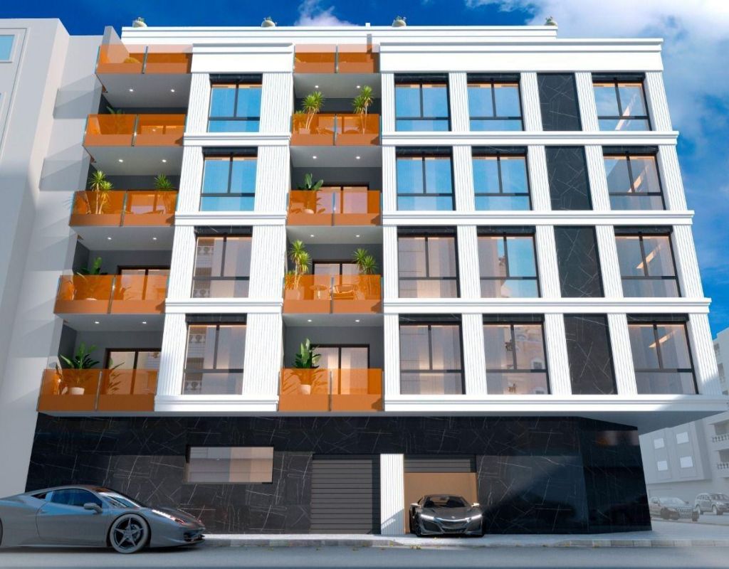 Modernos apartamentos de nueva construcción en el centro de Torrevieja, Costa Blanca Exclusiva promoción residencial con servicios de primera calidad Descubra un selecto proyecto de nueva construcción de 35 modernos apartamentos en el corazón de Torrevieja. Con distribuciones de 1, 2 o 3 dormitorios y 2 o 3 baños, esta residencia también cuenta con lujosos áticos con soláriums privados. Diseñada para ofrecer comodidad y estilo, esta comunidad combina una arquitectura contemporánea con acabados de alta calidad y excepcionales instalaciones comunes. Ubicación privilegiada en el centro de Torrevieja Situada a solo 600 metros de la playa de Acequion, esta promoción goza de una de las ubicaciones más privilegiadas de Torrevieja. Con supermercados, restaurantes, servicios médicos, tiendas y transporte público a poca distancia, es la opción perfecta para aquellos que buscan un cómodo estilo de vida mediterráneo cerca de todo. Torrevieja es famosa por su clima mediterráneo templado, sus hermosas playas de arena y sus animados paseos marítimos, lo que la convierte en uno de los principales destinos de la Costa Blanca. Instalaciones de estilo resort para el bienestar y la relajación El edificio incluye una excepcional gama de servicios comunes. En la planta baja encontrará una piscina climatizada, un espacio social y un gimnasio totalmente equipado. El solárium de la azotea ofrece un auténtico oasis de relajación con tumbonas, sauna finlandesa, zona de barbacoa y minipiscina con jacuzzi. Tanto las escaleras como el ascensor conducen a la azotea, lo que ofrece comodidad y accesibilidad a todos los residentes. Viviendas de alta calidad con diseño contemporáneo Estos apartamentos de nueva construcción cuentan con cocinas americanas integradas en el salón, amplias terrazas, armarios empotrados y cocinas totalmente equipadas con electrodomésticos. Los baños incluyen muebles, mamparas de ducha y calefacción por suelo radiante para un máximo confort. También hay preinstalación para aire acondicionado por conductos. Hay aparcamiento subterráneo y trasteros opcionales disponibles con un coste adicional. Rodeado de naturaleza y belleza costera Torrevieja es famosa por sus lagunas salinas naturales y sus parques naturales protegidos. El Parque Natural de La Mata y Torrevieja se encuentra a poca distancia de la ciudad y ofrece hermosos senderos y espectaculares lagos salinos de color rosa y verde. Este entorno único proporciona un estilo de vida saludable y paisajes impresionantes. Distancias a puntos de interés clave Playa de Acequion 0,6 km Puerto deportivo de Torrevieja 1,5 km Parque Natural de La Mata 4 km Villamartin Golf 8 km Aeropuerto de Alicante 45 km Aeropuerto de Murcia 60 km Viva el estilo de vida mediterráneo No pierda la oportunidad de adquirir una vivienda moderna en una de las ciudades costeras más deseadas de España. Póngase en contacto con nosotros hoy mismo para concertar una visita y asegurarse su plaza en esta excepcional nueva promoción.