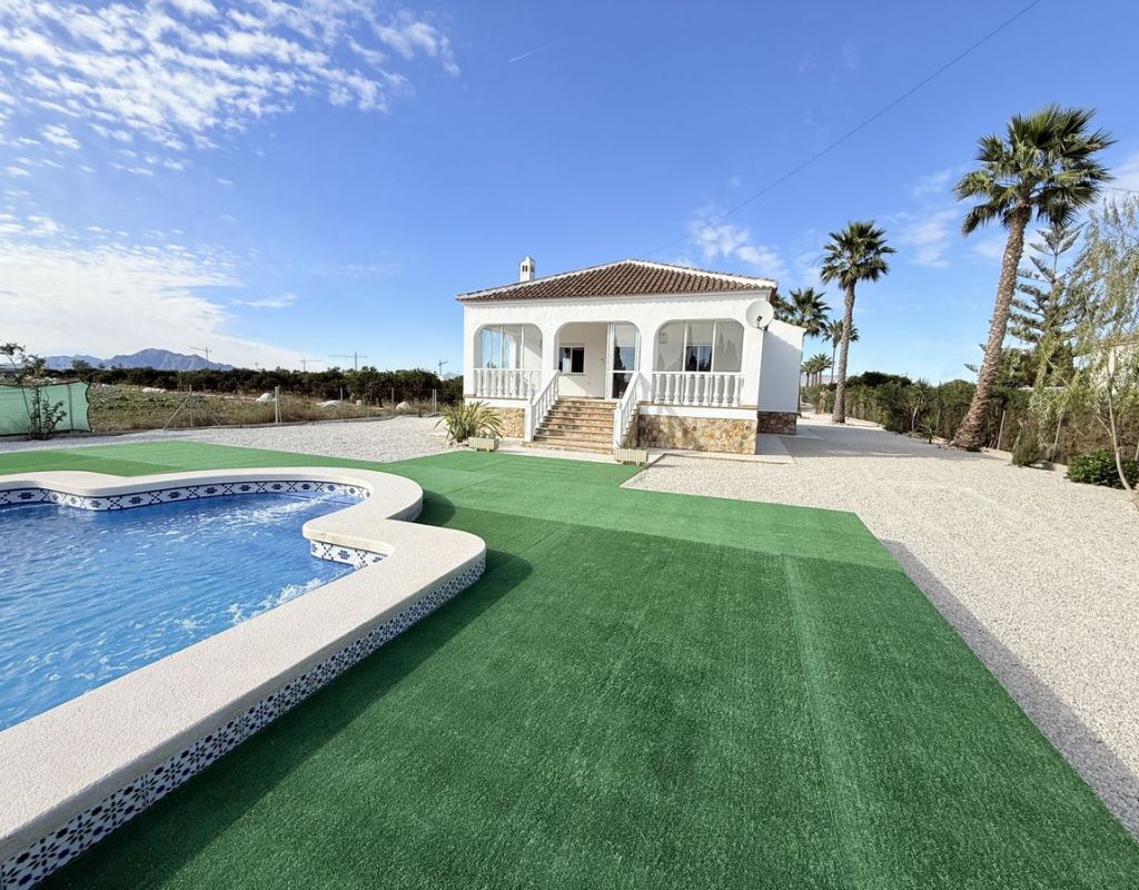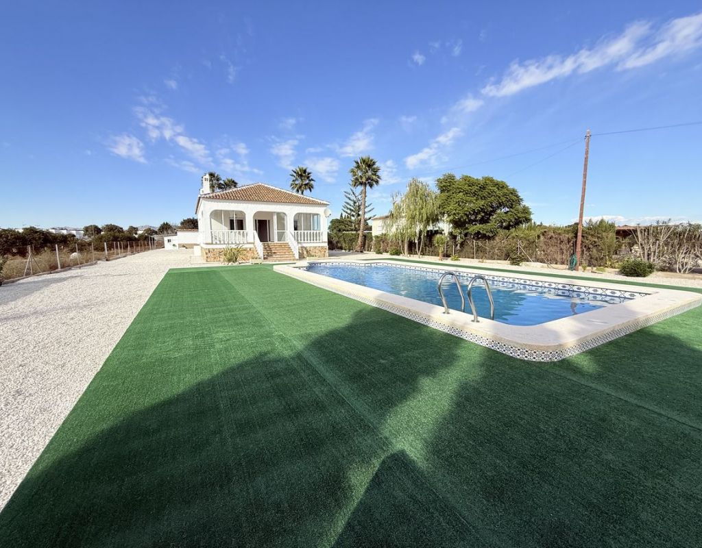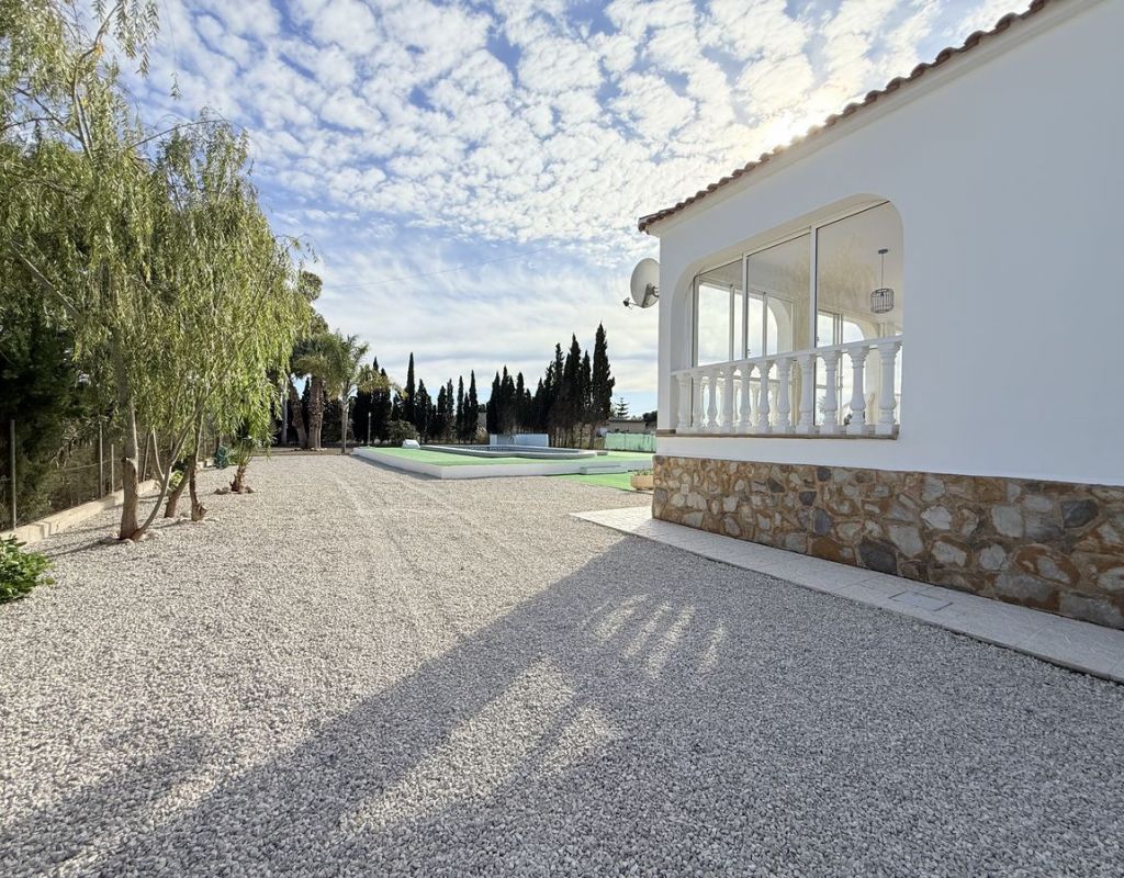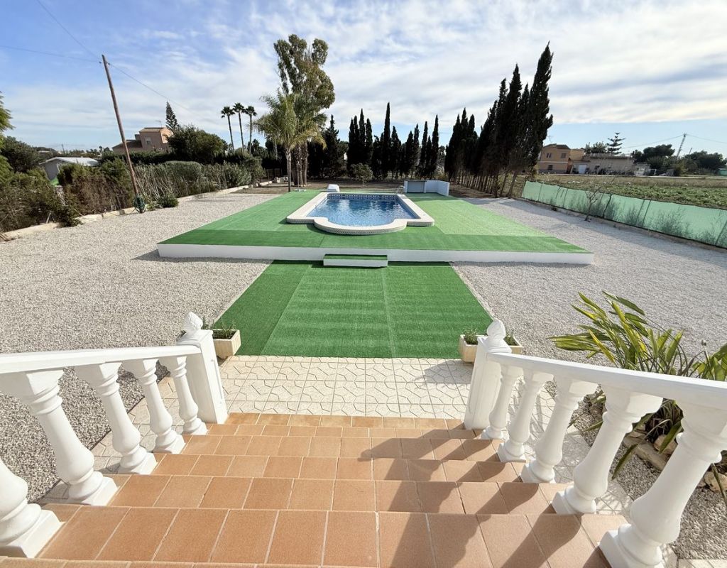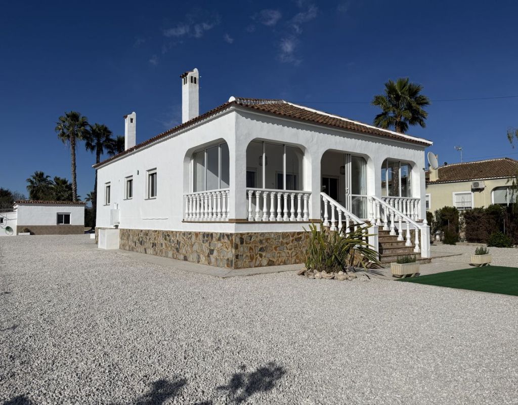 Esta encantadora finca independiente en Dolores, Costa Blanca Sur, ofrece la combinación perfecta de tranquilidad rural y comodidades modernas. Construida en 2004 y propiedad del mismo propietario desde su construcción, se encuentra en una amplia parcela de 3.050 m² con preciosas vistas a la montaña y a las tierras de cultivo, disfrutando de una tranquila orientación sur a solo cinco minutos en coche del pueblo de Dolores. La casa principal cuenta con tres dormitorios dobles, uno de ellos con baño en suite, así como un moderno baño familiar. Una cocina abierta con isla central y electrodomésticos nuevos sin estrenar se conecta con el salón, donde una acogedora chimenea de leña aporta calidez y carácter. En la parte delantera de la propiedad, un gran balcón acristalado proporciona una atractiva trampa de sol durante los meses de invierno, creando un espacio de estar adicional luminoso y relajante. En el exterior, la propiedad cuenta con piscina privada y amplio aparcamiento con portón eléctrico, además de un garaje ubicado en el anexo. El anexo independiente ofrece una excelente versatilidad e incluye un dormitorio, un baño, un garaje y una habitación adicional con armarios que podría convertirse en cocina, lo que la hace ideal para invitados, una familia numerosa o un posible alquiler. Con una superficie total construida de 150 m², la propiedad se presenta en excelentes condiciones. El extremo de la parcela ofrece espacio adicional en el jardín, ideal para plantar o crear una zona exterior personalizada. Se vende sin amueblar, salvo por los electrodomésticos de cocina. Esta finca ofrece espacio, privacidad y la posibilidad de adaptar el anexo o el terreno a las necesidades individuales: una magnífica oportunidad en la campiña sur de la Costa Blanca. Dolores es uno de los pueblos del interior de la Costa Blanca. Su centro cuenta con una impresionante Iglesia en colores azules, junto a la cual está el Ayuntamiento. El mercadillo semanal pasa los viernes por la mañana. El pueblo ofrece una buena selección de tiendas, bares, cafeterías y restaurantes. Las playas de Guardamar están a unos 15 minutos en coche, y el Aeropuerto de Alicante-Elche está a media hora.