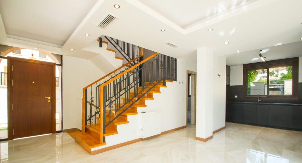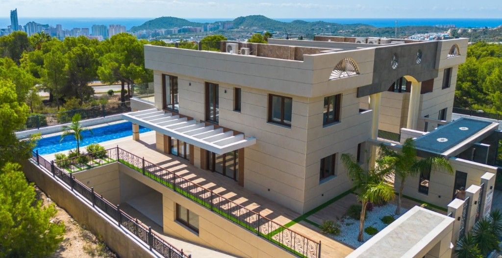 Se vende villa nueva en Finestrat Nueva construcción que cuenta con villa de 4 dormitorios, 4 baños, amplio salón y cocina, terraza, precioso jardín exterior con piscina privada.La obra de construcción se realiza utilizando únicamente materiales y acabados de primera calidad como: ventanas de aluminio climalit, platos de ducha en los baños, porcelánico de primera calidad utilizado en suelos e interiores, preinstalación de aire acondicionado y muchos más extras. Nueva villa, ubicada a pocos kilómetros de la popular ciudad de entretenimiento de la Costa Blanca: Benidorm. Cerca encontrará comercios, supermercados, bancos, restaurantes, colegios. Pero si desea entretenimiento, a solo unos minutos encontrará golf, casinos, centros comerciales, parques acuáticos, discotecas y mucho más entretenimiento. A sólo 45 km del aeropuerto de Alicante. Buena elección para vivir en España todo el año.