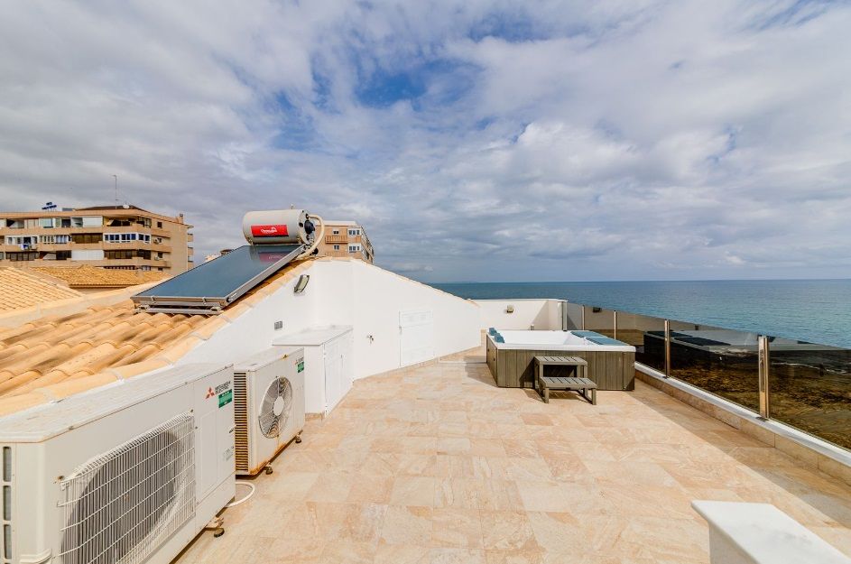 Villa en primera línea de mar en La MataUna amplia villa con una superficie de 210 m2 tiene una parcela de 342 m2, en la que se encuentra una piscina con zona de relax, aparcamiento y zona de barbacoa. La villa en sí está construida en varios niveles y tiene 4 dormitorios y 5 baños, 2 salones, solárium, jacuzzi y sótano.La Mata es una magnífica zona situada en el sur de Orihuela Costa. Los fascinantes paisajes marinos y el suave clima mediterráneo hacen de La Mata un lugar favorito para vivir y relajarse entre los europeos. La atmósfera de ligereza existente hizo de este lugar uno de los mejores de la costa.En las inmediaciones de la villa encontrará magníficas playas de arena, restaurantes y bares, así como absolutamente todo lo necesario para disfrutar del más alto nivel de vida y unas estupendas vacaciones. El aeropuerto internacional más cercano es el de Alicante, a 30 minutos en coche.