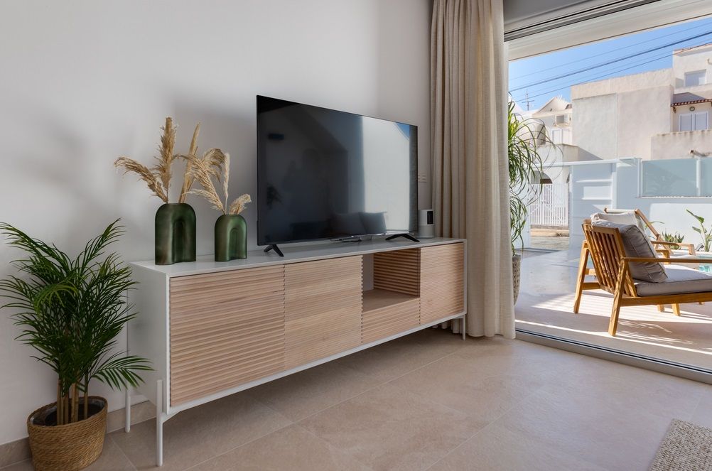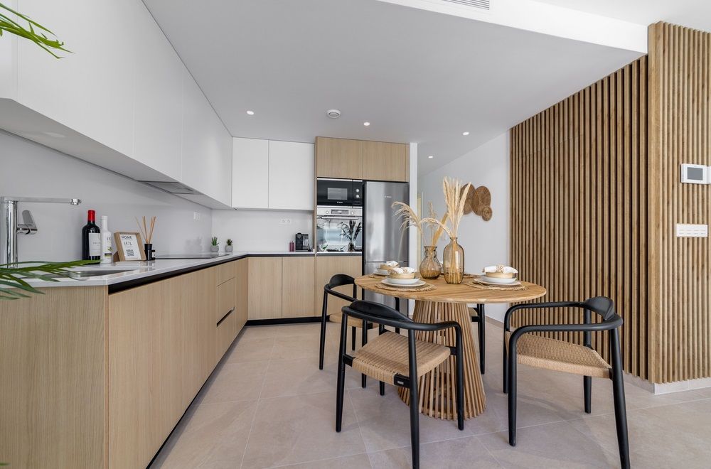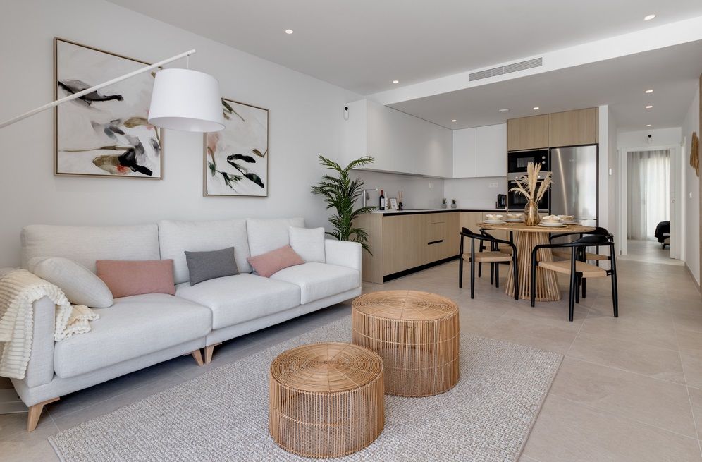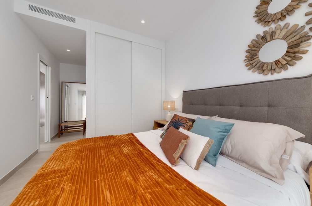 Apartamentos de obra nueva en venta en San Pedro del PinatarOfrecemos a la venta apartamentos de nueva construcción ubicados en complejo residencial con piscina. Las viviendas cuentan con 2 dormitorios, 2 baños, salón, cocina equipada con electrodomésticos y terraza. Apartamentos de planta baja tienen jardín y trastero, de planta alta – cocina de verano en el solárium.San Pedro del Pinatar es un pequeño pueblo español en el singular paraje natural del Mar Menor, que traducido del español significa "pequeño mar". El Mar Menor está separado del Mar Mediterráneo por la división de arena, de una longitud de 12 km, creando un microclima especial. Los centros de spa y tratamientos del Mar Menor son ampliamente conocidos en la región de la Costa Blanca y gozan de gran popularidad entre los turistas.En 15-20 minutos se puede llegar al aeropuerto de San Javier, así como a los principales centros culturales e históricos como Murcia y Cartagena.
