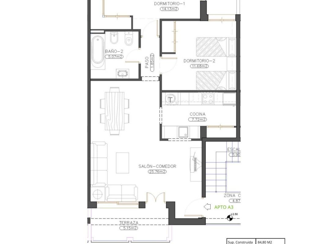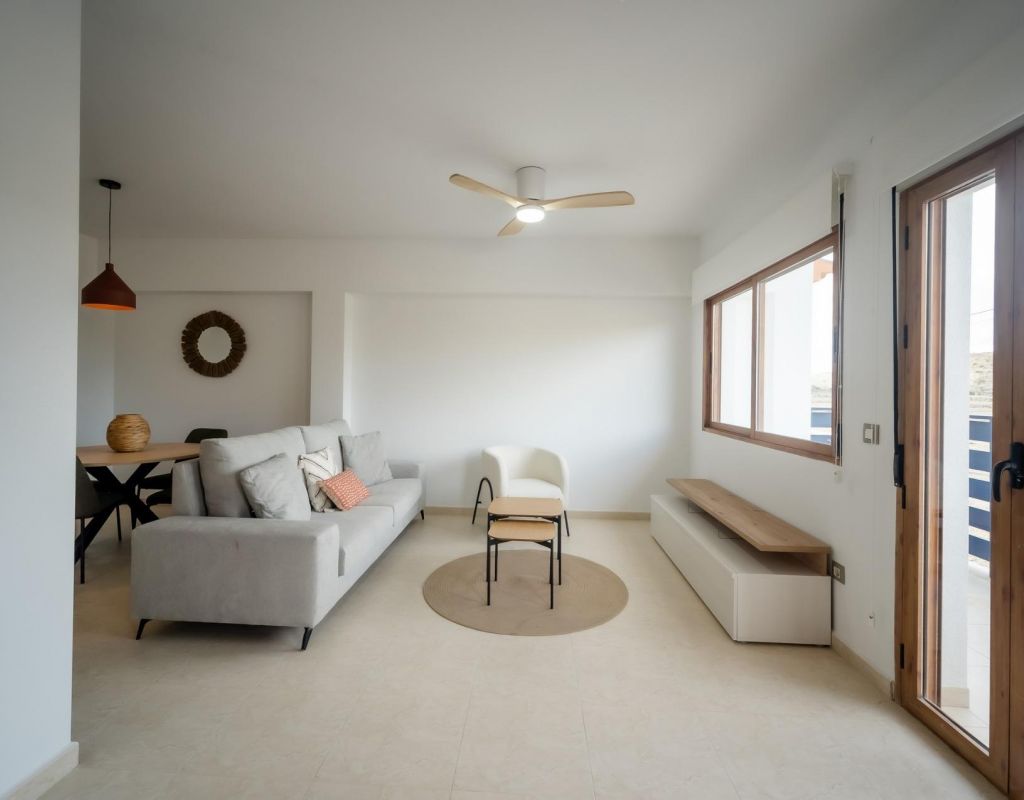 Casas tradicionales de dos dormitorios en Barrio Herrerías, Almería, con solárium y piscina comunitaria Vida contemporánea cerca de la costa de Almería Esta nueva promoción residencial se encuentra en el tranquilo barrio de Barrio Herrerías, a solo 4 km de las hermosas playas de Villaricos. La zona combina un ambiente residencial tranquilo con la comodidad de estar cerca de los servicios esenciales, las tiendas locales y las encantadoras localidades costeras de la provincia de Almería. Gracias a las excelentes conexiones por carretera, los residentes pueden disfrutar tanto de la tranquilidad de la vida en el interior como de los atractivos de la costa mediterránea. Una selección de 13 viviendas La promoción consta de 13 viviendas bien diseñadas con 2 dormitorios y 2 baños, uno de ellos en suite. Los compradores pueden elegir entre propiedades en la planta baja con patio privado o unidades en la planta superior con terraza. Tenga en cuenta que el edificio no dispone de ascensor, lo que ofrece un estilo de vida más tradicional en un edificio de baja altura. Todas las viviendas incluyen un solárium privado en la azotea, ideal para tomar el sol, relajarse o disfrutar de las vistas panorámicas de los alrededores. Interiores confortables y acabados de alta calidad Cada propiedad está equipada con una cocina totalmente amueblada que incluye electrodomésticos, preinstalación de aire acondicionado por conductos y muebles de baño modernos con espejos. La carpintería exterior con acabado efecto madera y doble acristalamiento proporciona un excelente aislamiento y una estética cálida y contemporánea. Las necesidades de almacenamiento se cubren con un trastero privado y una plaza de aparcamiento situada en el sótano. Piscina comunitaria y estilo de vida relajado Los residentes pueden disfrutar de una piscina comunitaria, perfecta para refrescarse durante los meses cálidos y socializar con los vecinos. La distribución y el diseño de la zona residencial crean un entorno confortable tanto para vivir de forma permanente como para pasar las vacaciones. Distancias estratégicas a puntos de interés clave Playa de Villaricos: 4 km Cuevas del Almanzora: 9 km Campos de golf: 10 a 15 km Puerto deportivo de Garrucha: 14 km Aeropuerto de Almería: 90 km Entrega inmediata disponible Estas viviendas están listas para entrar a vivir, lo que supone una fantástica oportunidad para los compradores que buscan una nueva construcción cerca de la costa de Almería. Póngase en contacto con nosotros hoy mismo para concertar una visita y asegurarse su nueva propiedad en Barrio Herrerías.
