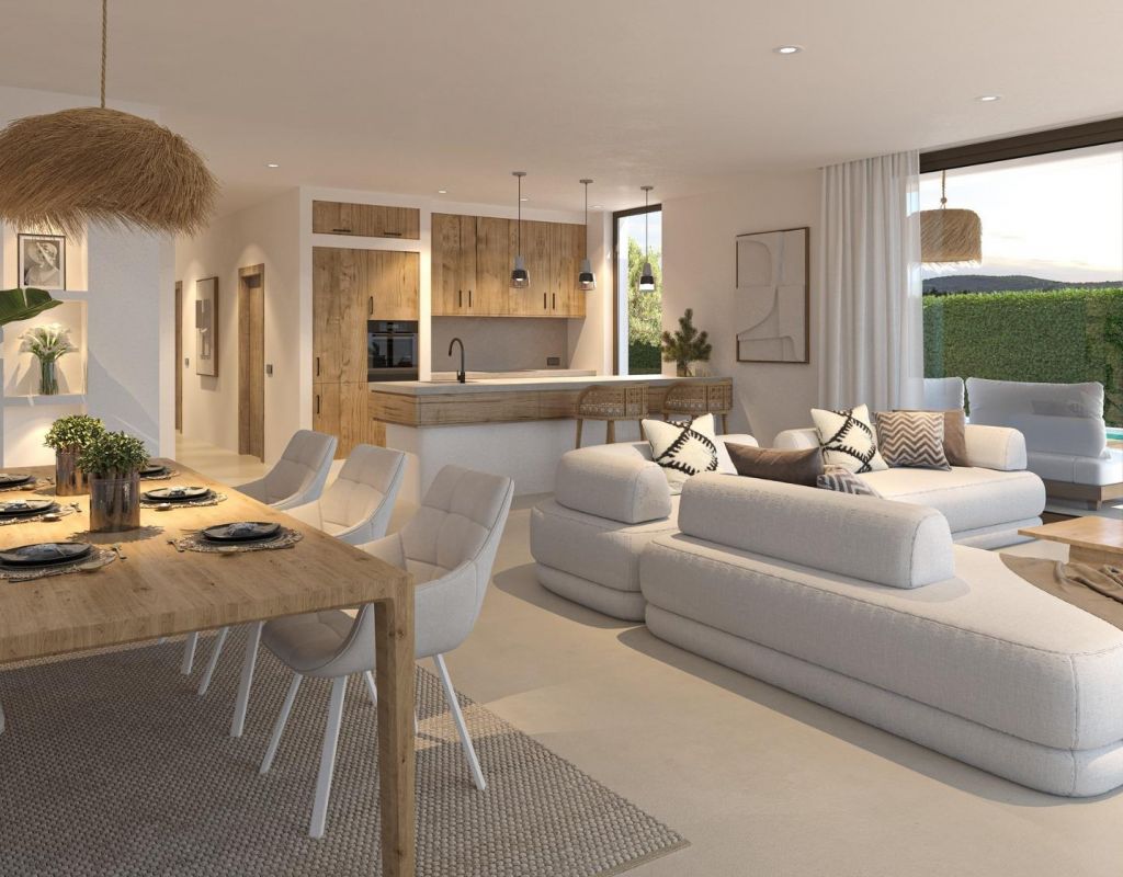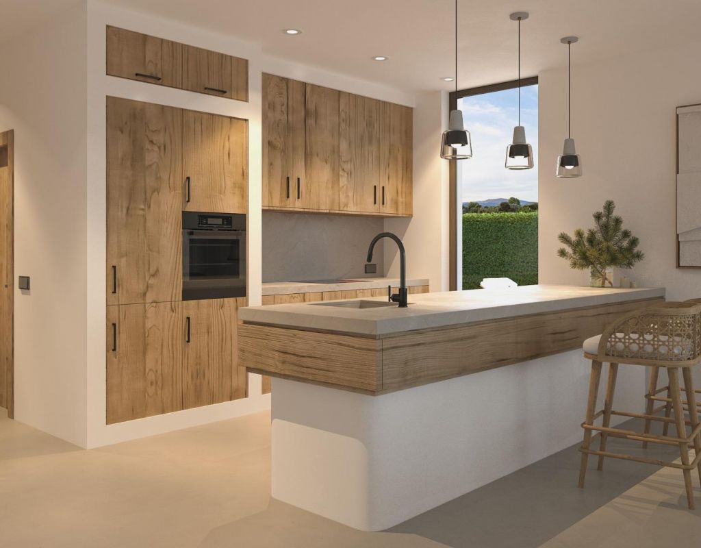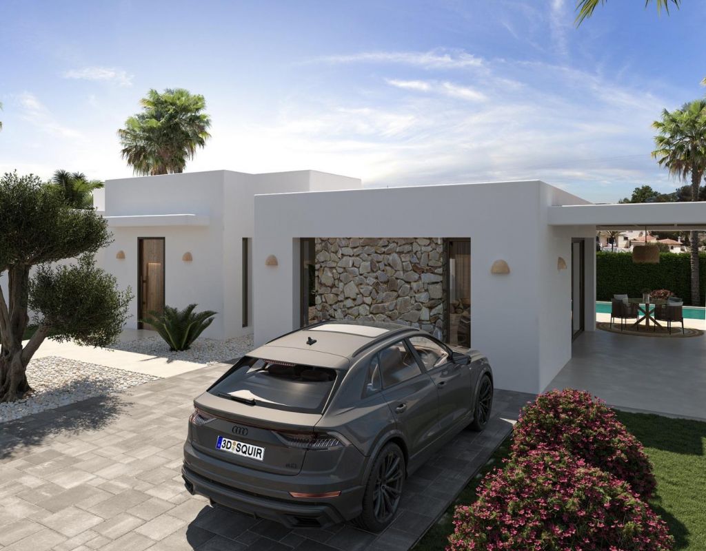 Villa de nueva construcción de estilo ibicenco en Javea Vida mediterránea contemporánea cerca de la playa de El Arenal Esta villa de nueva construcción de estilo ibicenco en Javea se encuentra actualmente en fase de construcción y se entregará en un breve plazo. Situada a solo 3 km de la playa de El Arenal, una de las zonas más populares y animadas de la Costa Blanca Norte, esta propiedad combina el encanto mediterráneo con la elegancia moderna. Javea es conocida por sus calas de aguas cristalinas, sus parques naturales, sus puertos deportivos, su gastronomía tradicional y su relajado estilo de vida costero, lo que la convierte en un lugar excepcional para vivir o invertir. Elegante arquitectura inspirada en Ibiza y el Mediterráneo La villa destaca por su fachada blanca, sus esquinas redondeadas y los detalles en piedra del Montgó tallados a mano, que le aportan calidez y autenticidad. Los acabados de alta calidad, como los suelos de microcemento, las ventanas de aluminio con doble acristalamiento en colores óxido y los grifos negros en los baños, contribuyen a crear un ambiente refinado y contemporáneo. Todas las habitaciones están equipadas con persianas eléctricas exteriores para garantizar el confort y la privacidad. Interiores espaciosos diseñados para el confort En el interior, la villa ofrece un salón-comedor amplio y luminoso con acceso directo a las terrazas exteriores y a la piscina orientada al sur, lo que permite disfrutar de la luz del sol durante todo el día. La moderna cocina abierta está totalmente equipada y se complementa con un lavadero contiguo y un aseo para invitados. La zona de dormitorios incluye tres dormitorios dobles, cada uno con su propio cuarto de baño en suite. La suite principal cuenta con un vestidor para mayor comodidad y estilo. Apartamento independiente adicional y vida al aire libre En la planta baja, la villa incluye un apartamento independiente de 37 m² con un dormitorio y un cuarto de baño, ideal para invitados o familiares. Las zonas exteriores están diseñadas para vivir todo el año, con amplias terrazas soleadas, vistas a la montaña y dos plazas de aparcamiento cubiertas bajo una elegante pérgola. La villa está equipada con calefacción por suelo radiante y aire acondicionado por conductos, lo que garantiza el máximo confort en todas las estaciones. Desde la propiedad se pueden admirar las verdes montañas circundantes y el emblemático monte Montgó, uno de los hitos más reconocibles de Jávea. Ubicación privilegiada en Jávea Distancias clave desde la villa: Playa del Arenal 3 km Puerto y marina de Jávea 7 km Club de golf de Jávea 3 km Aeropuerto de Alicante 100 km Aeropuerto de Valencia 125 km Su hogar mediterráneo le espera Esta villa es la elección perfecta para aquellos que buscan una residencia de lujo, una casa de vacaciones o una inversión segura en la Costa Blanca. Póngase en contacto con nosotros hoy mismo para concertar una visita y descubrir esta excepcional propiedad en Jávea.