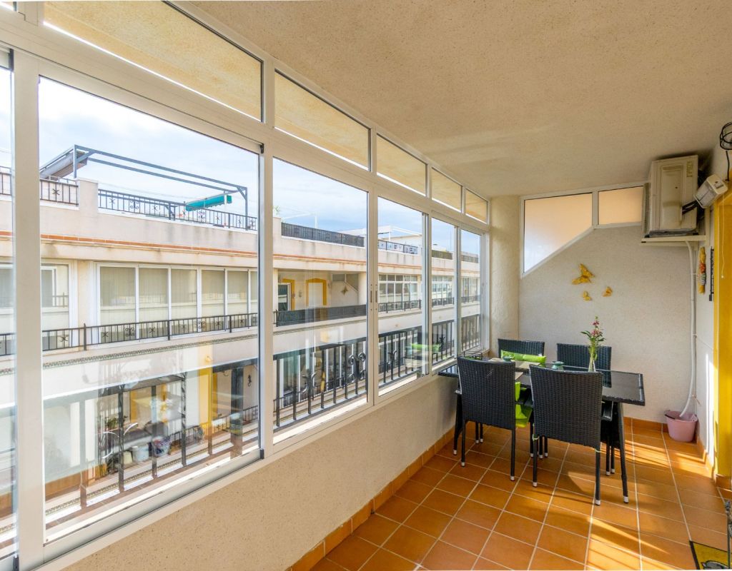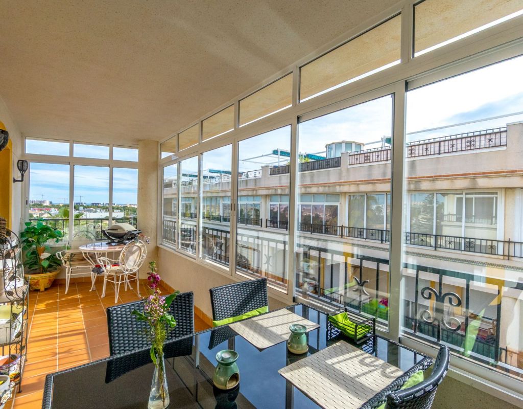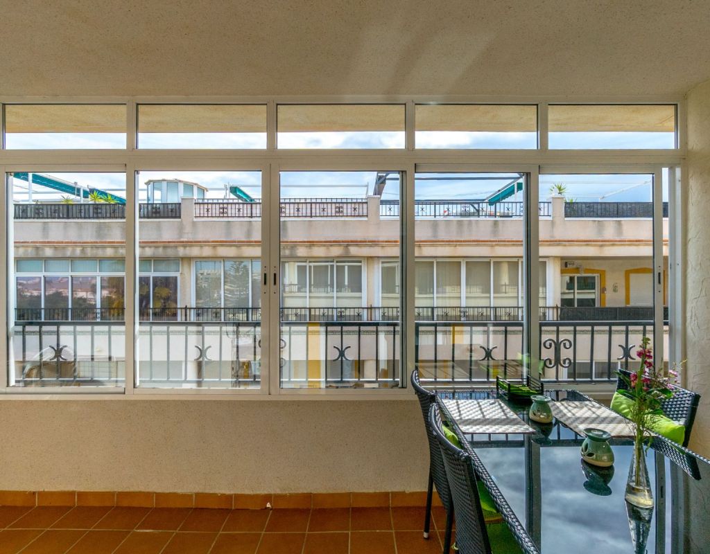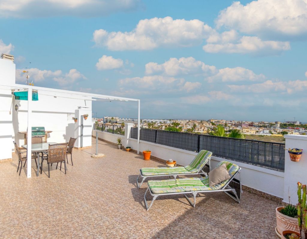 Este acogedor ático de 3 dormitorios y 1 baño, distribuido en una sola planta, ofrece una vivienda cómoda, luminosa y muy práctica en una de las zonas más demandadas de la Costa Blanca. Todas las habitaciones destacan por su gran luminosidad, creando un ambiente cálido y agradable durante todo el día. El apartamento dispone de un salón muy acogedor con acceso directo a una terraza acristalada orientada al sur, muy soleada y perfecta para disfrutar de la luz natural en cualquier época del año. La cocina independiente cuenta con una excelente distribución y acceso a una zona de lavadero muy soleada, que aporta funcionalidad adicional a la vivienda. El gran atractivo de esta propiedad es su impresionante solárium privado de 79 m², un espacio excepcional con fantásticas vistas al mar y a Playa Flamenca, ideal para relajarse, tomar el sol o crear una zona de ocio exterior. La urbanización dispone de piscina comunitaria y zonas tranquilas, lo que convierte este ático en un lugar perfecto para descansar y disfrutar del clima mediterráneo. Ubicado en Playa Flamenca (Orihuela Costa), se encuentra cerca de todo: playas, Zenia Boulevard, supermercados, restaurantes, colegios, áreas deportivas y todos los servicios. Una zona muy apreciada por su ambiente internacional, y su oferta de ocio durante todo el año.