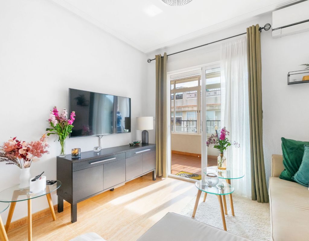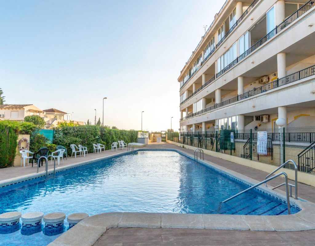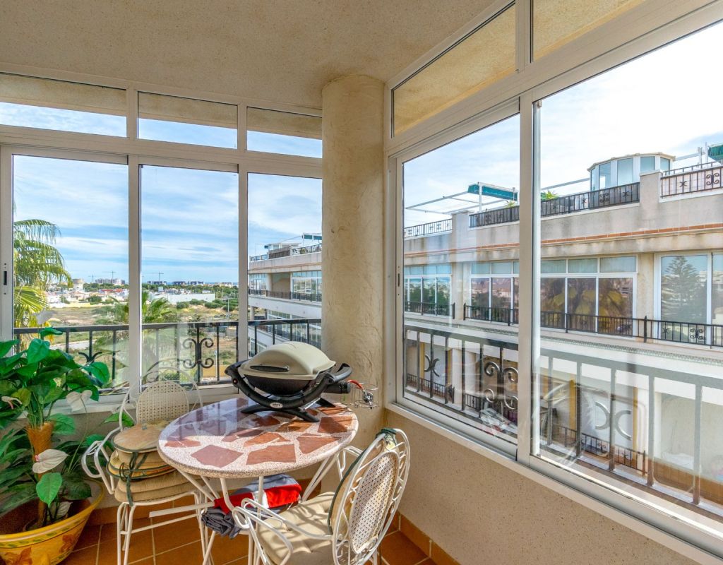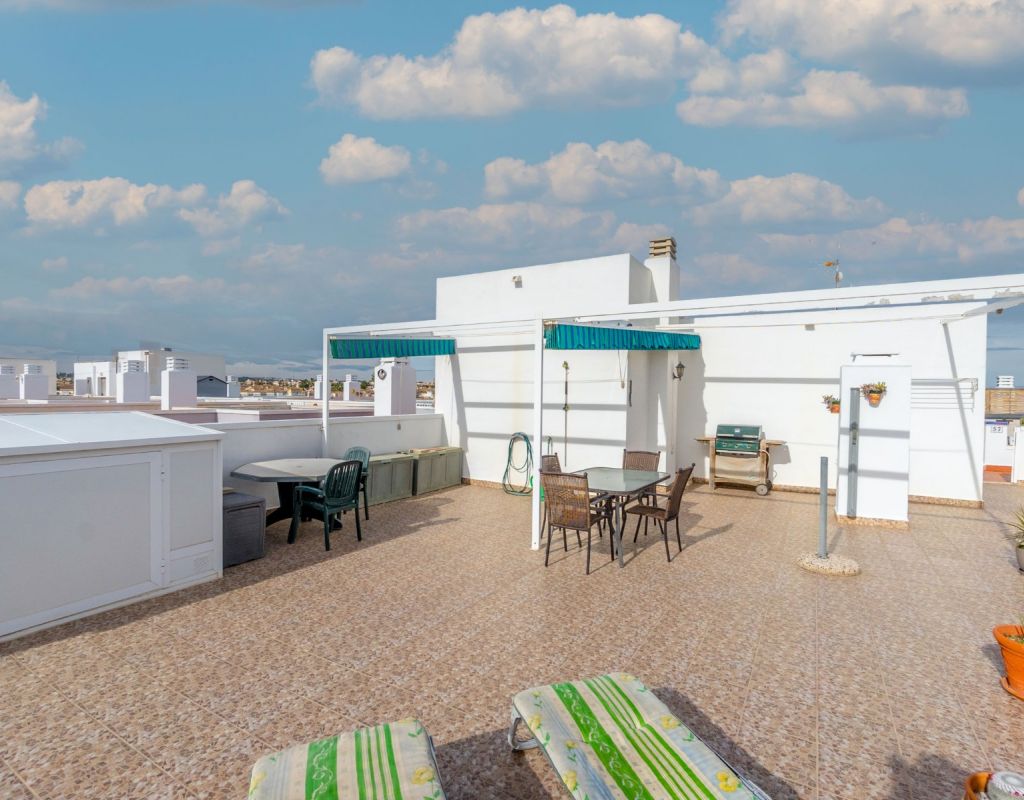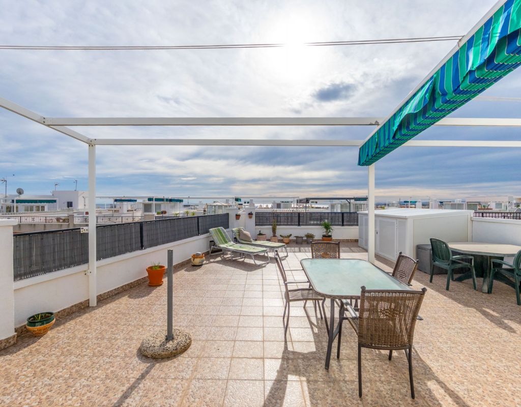 Este acogedor ático de 3 dormitorios y 1 baño, distribuido en una sola planta, ofrece una vivienda cómoda, luminosa y muy práctica en una de las zonas más demandadas de la Costa Blanca. Todas las habitaciones destacan por su gran luminosidad, creando un ambiente cálido y agradable durante todo el día. El apartamento dispone de un salón muy acogedor con acceso directo a una terraza acristalada orientada al sur, muy soleada y perfecta para disfrutar de la luz natural en cualquier época del año. La cocina independiente cuenta con una excelente distribución y acceso a una zona de lavadero muy soleada, que aporta funcionalidad adicional a la vivienda. El gran atractivo de esta propiedad es su impresionante solárium privado de 79 m², un espacio excepcional con fantásticas vistas al mar y a Playa Flamenca, ideal para relajarse, tomar el sol o crear una zona de ocio exterior. La urbanización dispone de piscina comunitaria y zonas tranquilas, lo que convierte este ático en un lugar perfecto para descansar y disfrutar del clima mediterráneo. Ubicado en Playa Flamenca (Orihuela Costa), se encuentra cerca de todo: playas, Zenia Boulevard, supermercados, restaurantes, colegios, áreas deportivas y todos los servicios. Una zona muy apreciada por su ambiente internacional, y su oferta de ocio durante todo el año.