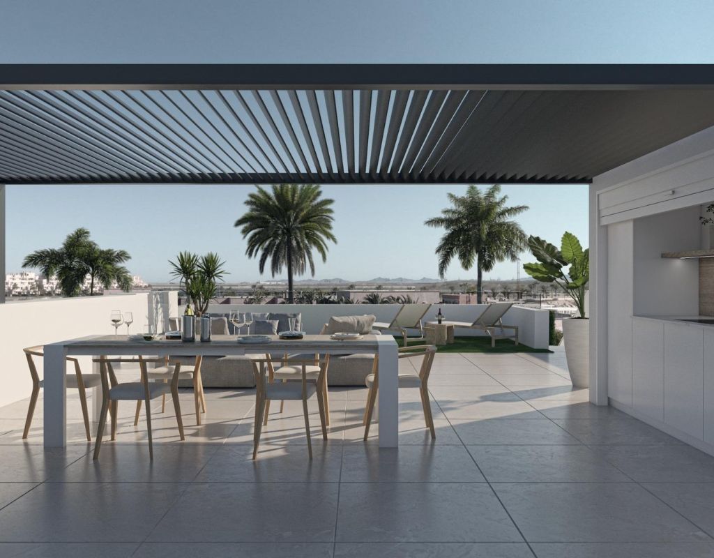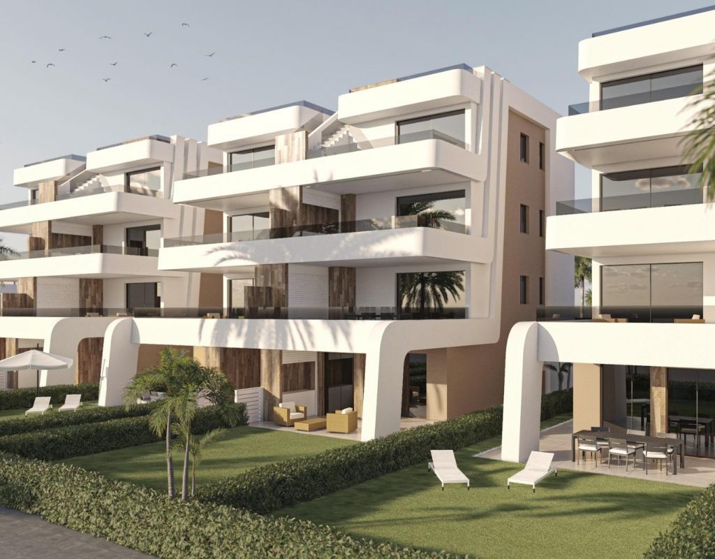 APARTAMENTOS DE OBRA NUEVA EN EL CAMPO DE GOLF DE CONDADO DE ALHAMA Complejo residencial de villas y apartamentos de nueva construcción en Condado de Alhama. Los 8 hermosos apartamentos se distribuyen entre planta baja, primera, segunda y tercera, con dos viviendas en cada planta y ascensor para pasar de un nivel a otro. Disponen de varias piscinas comunitarias, plaza de aparcamiento exterior para cada apartamento, trastero y terraza con cocina de verano. Las viviendas de la última planta tienen un solarium. Las dos viviendas de la planta baja tienen 3 dormitorios y 2 baños completos y el resto de las viviendas tienen 2 dormitorios y 2 baños completos también. Las viviendas han sido diseñadas con un estilo contemporáneo y un concepto abierto, compuesto por una cocina equipada y un salón-comedor. La promoción se encuentra en el Condado de Alhama, Murcia, dentro de un complejo turístico de lujo, con zonas deportivas y rodeado de naturaleza, todos los servicios, y varios Campos de Golf. La vivienda cumplirá con los más altos estándares y estará dotada de: Piscinas comunitarias con amplias zonas verdes. Cocina completamente amueblada y equipada con horno y microondas elevados y en columna, nevera y lavavajillas integrados, placa de inducción y campana extractora. Iluminación: en el interior de la vivienda (comedor, cocina, pasillos y baños), así como en las zonas exteriores. Armarios forrados con cajones y estantes. Cuartos de baño totalmente equipados con mueble de lavabo, inodoro suspendido, espejo, ducha mural y mamparas de ducha. Preinstalación de aire acondicionado por conductos. Cocina de verano en las terrazas. Solarium en las plantas superiores. Plaza de aparcamiento exterior con trastero. Ascensor (desde la planta baja hasta la 3ª planta). Condado de Alhama Golf Resort es un fantástico complejo de golf con muchas instalaciones y servicios. Un centro comercial, un centro deportivo, una variedad de bares y restaurantes, supermercados y más de 25 piscinas y jardines comunitarios. Condado de Alhama Golf Resort tiene su propio campo de golf diseñado por Jack Nicklaus y está a sólo 15 minutos de las hermosas playas de Bolnuevo y Mazarrón. Mazarrón tiene más de 35 km de costa, gran parte de la cual es costa virgen. Numerosas playas de la Bahía de Mazarrón han sido galardonadas con la Bandera Azul por su calidad. Condado de Alhama Golf Resort está a sólo 20 minutos del nuevo aeropuerto internacional de Corvera.