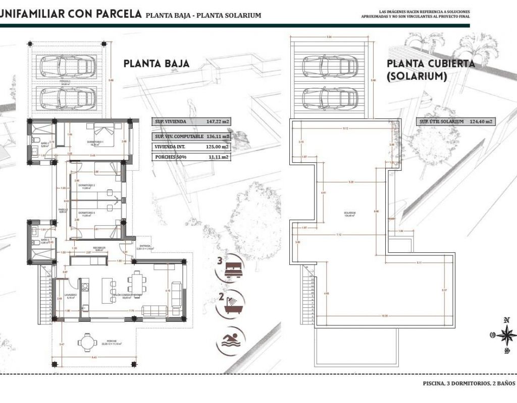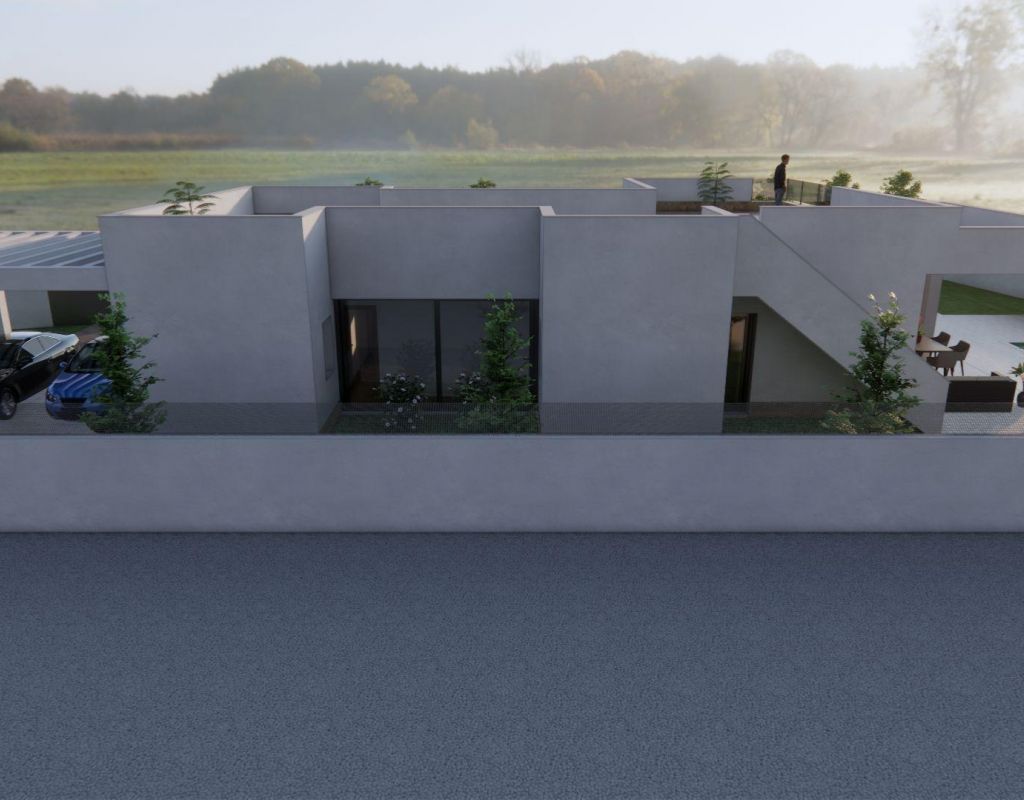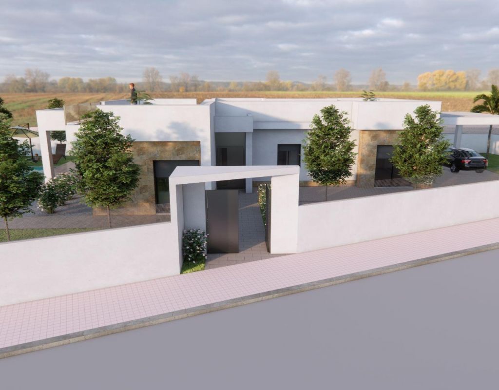 Villa de nueva construcción con piscina privada en Vistabella, Jacarilla Exclusiva villa de nueva construcción en un entorno natural y de golf Esta villa de nueva construcción, bajo régimen de autopromoción, se encuentra en la tranquila zona de Vistabella, dentro del municipio de Jacarilla. Situada en un entorno natural entre el campo de golf de Vistabella y el embalse de La Pedrera, esta propiedad ofrece privacidad, vistas abiertas y un relajado estilo de vida mediterráneo. La zona es ideal para quienes buscan tranquilidad sin alejarse de la costa, los campos de golf y los servicios cotidianos. Vistabella es una conocida zona residencial muy popular entre los compradores internacionales gracias a su campo de golf, sus restaurantes locales y su proximidad a Orihuela Costa y Torrevieja. Jacarilla conserva su encanto tradicional español y ofrece tiendas locales, servicios y un ambiente acogedor durante todo el año. Moderna distribución en una sola planta con amplias zonas exteriores La villa se distribuye en una sola planta y ha sido diseñada para combinar comodidad, funcionalidad y luz natural. Ofrece 3 dormitorios y 2 baños, incluido un dormitorio principal con baño en suite. La sala de estar y el comedor de planta abierta conectan a la perfección con la moderna cocina, creando un espacio luminoso y acogedor. Una terraza cubierta de 22 m² proporciona acceso directo al jardín privado, donde una piscina privada y zonas ajardinadas invitan a disfrutar del estilo de vida al aire libre. La generosa parcela de 750 m² también incluye una plaza de aparcamiento para dos vehículos. Solárium privado con vistas abiertas Uno de los aspectos más destacados de esta villa es el impresionante solárium privado de 120 m², al que se accede a través de una escalera exterior. Desde aquí se puede disfrutar de vistas panorámicas abiertas del campo circundante, perfectas para tomar el sol, entretenerse o relajarse durante todo el año. Especificaciones de calidad y características de eficiencia energética La villa está construida con materiales de calidad y especificaciones modernas para garantizar el confort y la eficiencia. Entre sus características se incluyen una puerta de entrada de seguridad reforzada, un sistema aerotérmico para el agua caliente sanitaria, persianas eléctricas en el salón y los dormitorios, y preinstalación de aire acondicionado por conductos. Estos elementos proporcionan una base ideal para una vivienda cómoda y energéticamente eficiente. Excelente ubicación cerca del golf, la naturaleza y la costa Vistabella Golf se encuentra a unos 2 km, mientras que el embalse de La Pedrera está a solo 1,5 km de la propiedad, ideal para los amantes de la naturaleza y las actividades al aire libre. Las playas de Orihuela Costa están a unos 15 km. El aeropuerto internacional de Alicante está a unos 55 km, lo que ofrece fáciles conexiones con los principales destinos europeos. En un radio de 10 a 15 km se pueden encontrar varios campos de golf y zonas comerciales adicionales. Una oportunidad única en la Costa Blanca Esta villa de nueva construcción en Vistabella es perfecta como residencia permanente, casa de vacaciones o oportunidad de inversión en una ubicación muy solicitada. Póngase en contacto con nosotros hoy mismo para recibir más información y asegurarse su nueva vivienda en el corazón de la Costa Blanca.