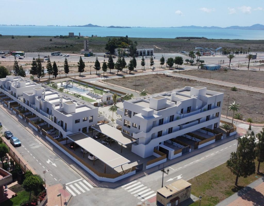 Complejo residencial de nueva construcción cerca de Serena Golf y el Mar Menor en Los Alcázares Vida moderna en la costa de la Costa Cálida Descubra este atractivo complejo residencial de nueva construcción situado en Los Alcázares, una de las localidades costeras más populares de la Costa Cálida. Situado a solo 500 m de las playas del Mar Menor y a poca distancia del centro de la ciudad, este complejo ofrece una excelente combinación de vida costera, entorno de golf y comodidades cotidianas. Los Alcázares es conocido por su ambiente relajado, sus largos paseos marítimos, sus cálidas aguas poco profundas y una amplia gama de restaurantes, tiendas y servicios abiertos todo el año. Apartamentos contemporáneos diseñados para el confort La promoción consta de 29 viviendas modernas de 2 o 3 dormitorios, diseñadas con líneas arquitectónicas limpias y acabados de alta calidad. Los compradores pueden elegir entre apartamentos en planta baja con jardín y terraza privados, viviendas en plantas intermedias con amplias terrazas o áticos con terraza privada y solárium en la azotea con vistas panorámicas. Muchas de las propiedades disfrutan de vistas al campo de golf Serena y al Mar Menor, lo que crea un entorno tranquilo y agradable. Todas las viviendas están diseñadas para maximizar la luz natural y la funcionalidad, lo que las hace ideales como residencia permanente, vivienda vacacional o propiedad de inversión. Características de alta calidad y zonas comunes Cada propiedad incluye una plaza de aparcamiento privada y un trastero. Las especificaciones están diseñadas para proporcionar comodidad y eficiencia energética, incluyendo ventanas de doble acristalamiento con rotura de puente térmico, preinstalación de aire acondicionado por conductos, sistema aerotérmico para agua caliente sanitaria, persianas eléctricas en los dormitorios y un completo paquete de iluminación interior y exterior. Los baños se entregan totalmente equipados con muebles, espejo y mampara de ducha. Los residentes pueden disfrutar de atractivas zonas comunes con jardines y una piscina comunitaria, perfectas para relajarse y disfrutar del clima mediterráneo. Algunos bloques están equipados con ascensores para mayor comodidad. Ubicación privilegiada entre el golf y el mar Este complejo residencial goza de una ubicación privilegiada junto al Serena Golf, uno de los campos de golf más famosos de la zona, y a pocos pasos de las tranquilas aguas del Mar Menor. La zona es ideal para practicar natación, vela, paddle surf y otros deportes acuáticos durante todo el año. Las distancias clave incluyen las playas del Mar Menor a 0,5 km, Serena Golf justo al lado de la urbanización, el centro de Los Alcázares a 2 km, Cartagena a 22 km y la ciudad de Murcia a 40 km. El aeropuerto de Murcia Corvera está a unos 30 km y el de Alicante a unos 90 km. Una vivienda ideal o una oportunidad de inversión Con su excelente ubicación, su diseño moderno y su proximidad tanto al golf como al mar, este nuevo complejo residencial en Los Alcázares ofrece una oportunidad excepcional para disfrutar de un estilo de vida excepcional en la Costa Cálida. Póngase en contacto con nosotros hoy mismo para recibir más información o concertar una visita privada y asegurarse su nueva vivienda junto al Mar Menor.