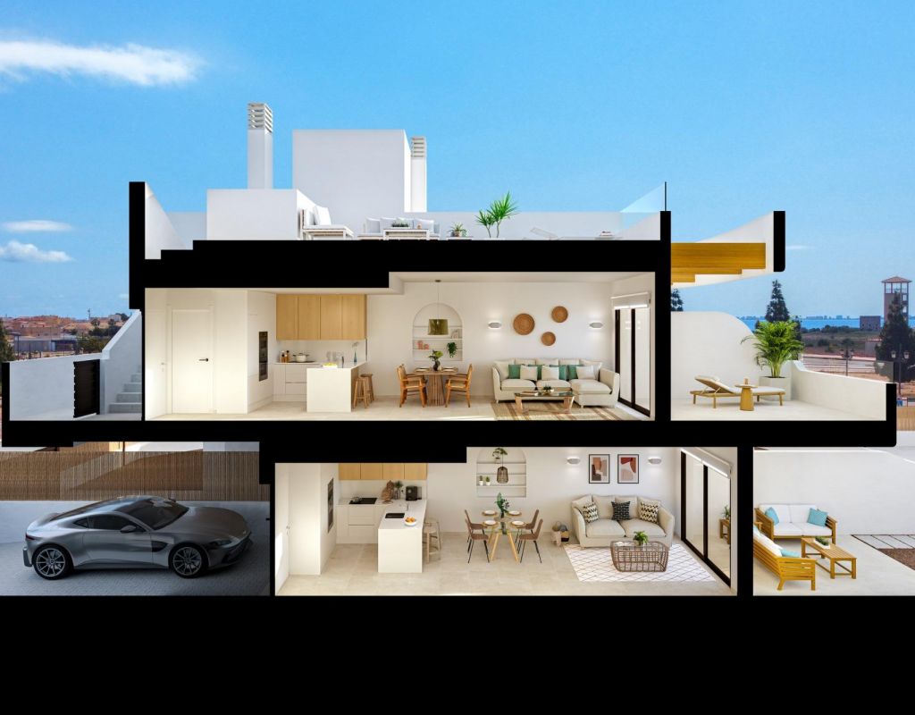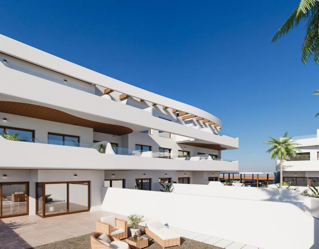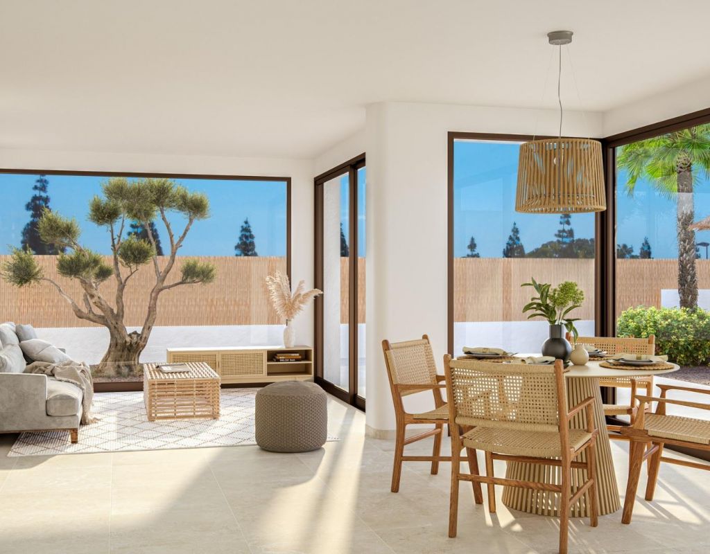 Complejo residencial de nueva construcción cerca de Serena Golf y el Mar Menor en Los Alcázares Vida moderna en la costa de la Costa Cálida Descubra este atractivo complejo residencial de nueva construcción situado en Los Alcázares, una de las localidades costeras más populares de la Costa Cálida. Situado a solo 500 m de las playas del Mar Menor y a poca distancia del centro de la ciudad, este complejo ofrece una excelente combinación de vida costera, entorno de golf y comodidades cotidianas. Los Alcázares es conocido por su ambiente relajado, sus largos paseos marítimos, sus cálidas aguas poco profundas y una amplia gama de restaurantes, tiendas y servicios abiertos todo el año. Apartamentos contemporáneos diseñados para el confort La promoción consta de 29 viviendas modernas de 2 o 3 dormitorios, diseñadas con líneas arquitectónicas limpias y acabados de alta calidad. Los compradores pueden elegir entre apartamentos en planta baja con jardín y terraza privados, viviendas en plantas intermedias con amplias terrazas o áticos con terraza privada y solárium en la azotea con vistas panorámicas. Muchas de las propiedades disfrutan de vistas al campo de golf Serena y al Mar Menor, lo que crea un entorno tranquilo y agradable. Todas las viviendas están diseñadas para maximizar la luz natural y la funcionalidad, lo que las hace ideales como residencia permanente, vivienda vacacional o propiedad de inversión. Características de alta calidad y zonas comunes Cada propiedad incluye una plaza de aparcamiento privada y un trastero. Las especificaciones están diseñadas para proporcionar comodidad y eficiencia energética, incluyendo ventanas de doble acristalamiento con rotura de puente térmico, preinstalación de aire acondicionado por conductos, sistema aerotérmico para agua caliente sanitaria, persianas eléctricas en los dormitorios y un completo paquete de iluminación interior y exterior. Los baños se entregan totalmente equipados con muebles, espejo y mampara de ducha. Los residentes pueden disfrutar de atractivas zonas comunes con jardines y una piscina comunitaria, perfectas para relajarse y disfrutar del clima mediterráneo. Algunos bloques están equipados con ascensores para mayor comodidad. Ubicación privilegiada entre el golf y el mar Este complejo residencial goza de una ubicación privilegiada junto al Serena Golf, uno de los campos de golf más famosos de la zona, y a pocos pasos de las tranquilas aguas del Mar Menor. La zona es ideal para practicar natación, vela, paddle surf y otros deportes acuáticos durante todo el año. Las distancias clave incluyen las playas del Mar Menor a 0,5 km, Serena Golf justo al lado de la urbanización, el centro de Los Alcázares a 2 km, Cartagena a 22 km y la ciudad de Murcia a 40 km. El aeropuerto de Murcia Corvera está a unos 30 km y el de Alicante a unos 90 km. Una vivienda ideal o una oportunidad de inversión Con su excelente ubicación, su diseño moderno y su proximidad tanto al golf como al mar, este nuevo complejo residencial en Los Alcázares ofrece una oportunidad excepcional para disfrutar de un estilo de vida excepcional en la Costa Cálida. Póngase en contacto con nosotros hoy mismo para recibir más información o concertar una visita privada y asegurarse su nueva vivienda junto al Mar Menor.