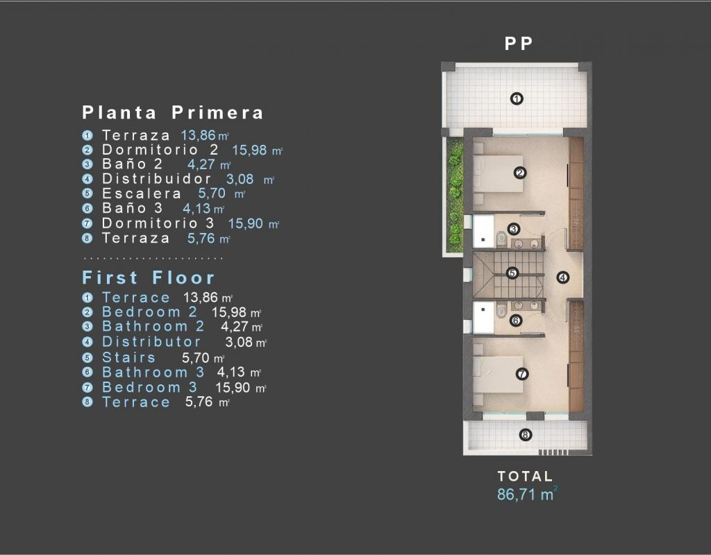Villas de lujo de nueva construcción en Las Filipinas, Orihuela Costa Villas exclusivas cerca de las playas de Orihuela Costa Descubra una exclusiva promoción de solo 7 villas independientes de lujo situadas en Las Filipinas, una zona residencial bien establecida en Orihuela Costa. Este tranquilo barrio ofrece un ambiente mediterráneo relajado con todos los servicios esenciales cerca, incluyendo supermercados, restaurantes, bares y centros comerciales. Situadas a menos de 5 km de las hermosas playas de arena de la Costa Blanca, estas villas combinan arquitectura moderna, comodidad y funcionalidad en un entorno costero privilegiado. Dos modelos de villas contemporáneas para elegir La promoción ofrece dos elegantes diseños de villas, ambos con piscina privada y plaza de aparcamiento dentro de la parcela: El modelo de una sola planta incluye 3 dormitorios y 2 baños, uno de ellos en suite. Ofrece 113 m2 construidos en generosas parcelas de casi 300 m2, ideales para vivir cómodamente en una sola planta. El modelo de dos plantas más sótano ofrece 260 m2 construidos en parcelas de más de 220 m2. Esta distribución incluye 3 dormitorios, 3 baños, dos terrazas en la primera planta y un amplio sótano. El sótano se puede personalizar como oficina, sala de juegos, gimnasio o cine privado, lo que proporciona un espacio flexible para los estilos de vida modernos. Ambos modelos ofrecen la opción de añadir un solárium privado con un coste adicional. La villa de una sola planta también tiene la opción de añadir un sótano como extra. Diseño moderno y características de alta calidad Cada villa está diseñada con espacios diáfanos que conectan la cocina y el salón, creando un ambiente luminoso y acogedor. Los grandes ventanales proporcionan abundante luz natural y acceso directo a la terraza y a la piscina privada. Los acabados de alta calidad incluyen una puerta de entrada reforzada, preinstalación de aire acondicionado por conductos, sistema de agua caliente aerotérmica, calefacción eléctrica por suelo radiante en los baños y baños completamente equipados con muebles de baño y mamparas de ducha. El aparcamiento privado dentro de la parcela garantiza la comodidad y la seguridad. Ubicación privilegiada en Las Filipinas Orihuela Costa Las Filipinas es una popular zona residencial conocida por su tranquilidad y sus excelentes conexiones. Las villas se encuentran a unos 5 km de las playas de Campoamor y La Zenia, a 3 km de Villamartin Golf y a 4 km de Las Ramblas Golf. El animado centro comercial La Zenia Boulevard está a unos 4 km y ofrece una amplia gama de tiendas, restaurantes y entretenimiento. El aeropuerto internacional de Alicante se encuentra a unos 55 km, mientras que el puerto de Torrevieja está a unos 12 km, ideal para la navegación y las actividades de ocio en la costa. Estilo de vida mediterráneo y potencial de inversión Estas lujosas villas en Orihuela Costa son perfectas como residencia permanente, casa de vacaciones o propiedad de inversión. Con un diseño moderno, piscinas privadas, distribuciones flexibles y una ubicación privilegiada cerca de las playas y los campos de golf, ofrecen una oportunidad excepcional para disfrutar del estilo de vida de la Costa Blanca. Póngase en contacto con nosotros hoy mismo para recibir más información o concertar una visita a estas exclusivas villas de nueva construcción en Las Filipinas, Orihuela Costa.