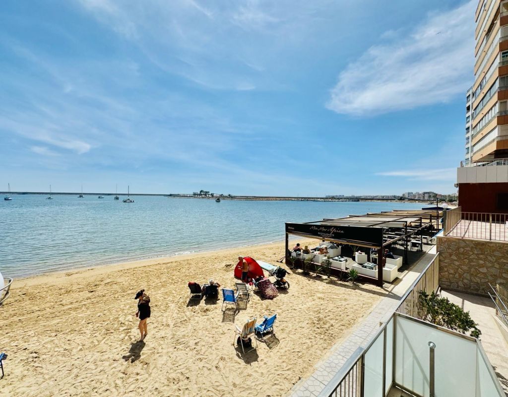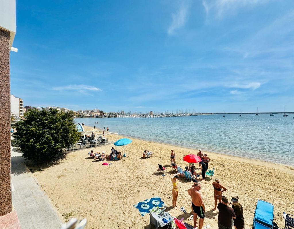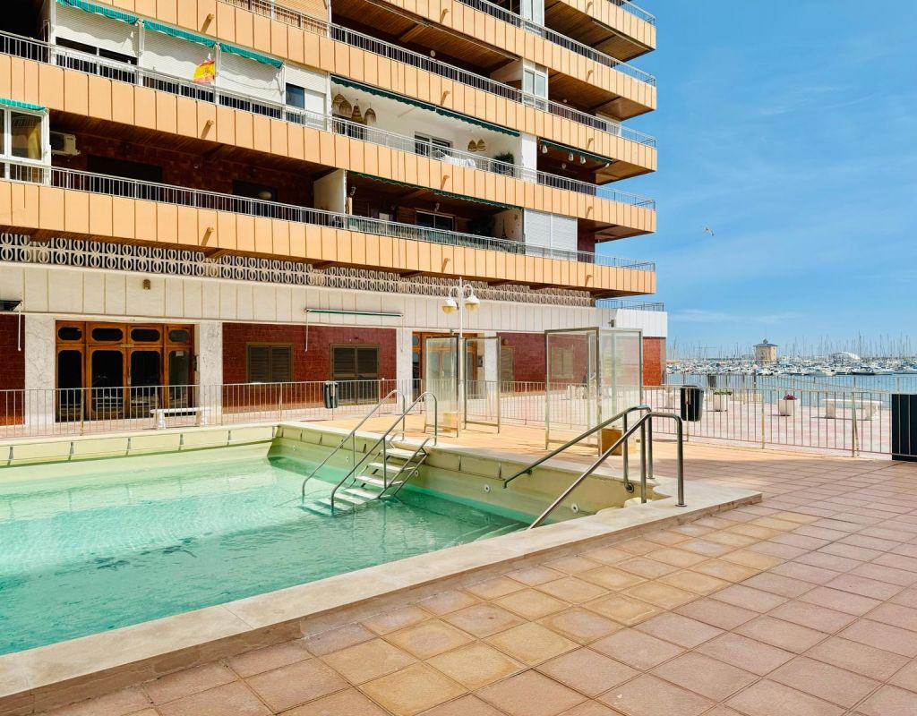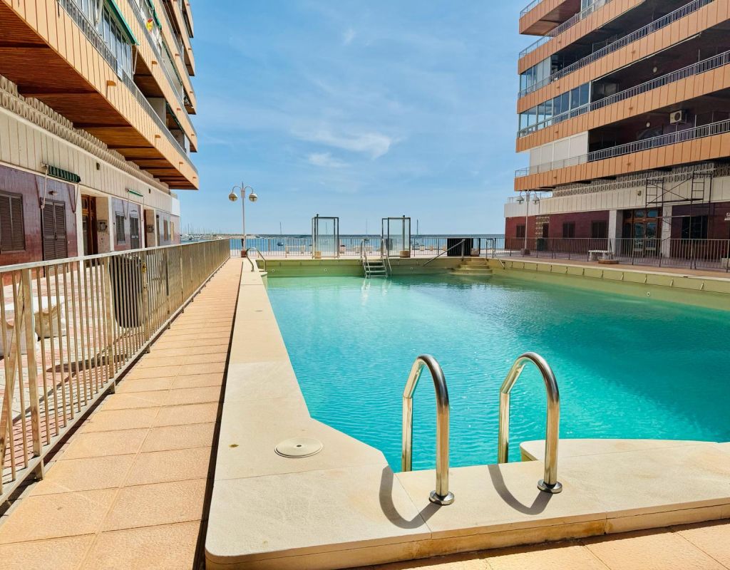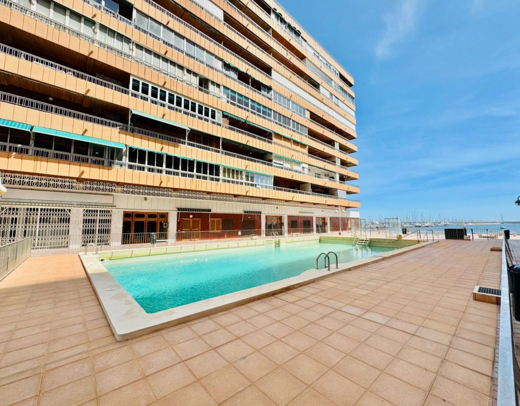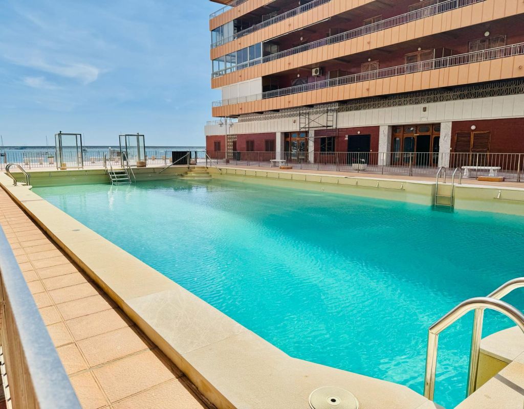 Vive el Mediterráneo en primera línea amplitud, luz y terraza frente al mar en El AcequiónEste apartamento de 94 m² en primera línea de la playa del Acequión, en Torrevieja, es una invitación directa a disfrutar del mar como parte de tu día a día. Construido en 1980 y en buen estado, ofrece una distribución cómoda y funcional, ideal tanto como residencia habitual como para escapadas junto al mar.Su orientación sur garantiza una magnífica entrada de luz natural durante todo el día, aportando calidez y bienestar a cada estancia. Dispone de 3 habitaciones y 2 baños, una cocina independiente y un salón amplio que conecta con una terraza de 15 m², perfecta para desayunos al sol o tardes de descanso con vistas al mar. La vivienda se entrega amueblada y con electrodomésticos, lista para entrar a vivir. Además, forma parte de una comunidad con piscina comunitaria, un valor añadido para disfrutar en familia o con amigos. Características principales94 m² construidos3 habitaciones 2 bañosOrientación surTerraza de 20 m²Piscina comunitariaVistas al mar y primera línea de playaSu ubicación es estratégica rodeada de bares, restaurantes, farmacias, supermercados y centros comerciales, y a aproximadamente 45 km del Aeropuerto de Alicante, lo que facilita conexiones nacionales e internacionales. IBI..............................330.-€COMUNIDAD............136.-€ TRIMESTRALES.Una propiedad que combina ubicación, luz y calidad de vida. Contáctanos hoy y agenda tu visita.