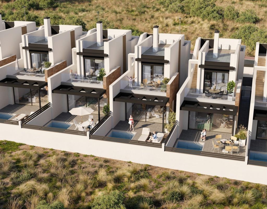 Nuevas viviendas de estilo escandinavo en Aguas Nuevas, Torrevieja Exclusiva promoción residencial nueva Bienvenido a este emocionante nuevo proyecto residencial situado en Aguas Nuevas, una de las zonas más cotizadas de Torrevieja. Esta moderna promoción ofrece un total de 31 viviendas, entre las que se incluyen 16 elegantes apartamentos y 15 amplias villas, todas ellas diseñadas con materiales de alta calidad y distribuciones adaptadas al estilo de vida mediterráneo contemporáneo. El proyecto combina comodidad, diseño y una excelente ubicación cerca del mar y de todos los servicios diarios. Diseño de inspiración escandinava y luz natural Las viviendas están inspiradas en la arquitectura escandinava, con interiores diáfanos, líneas limpias y grandes ventanales que inundan cada espacio de luz natural. Este diseño crea viviendas luminosas, aireadas y acogedoras, con una gran sensación de espacio y comodidad, ideales tanto para vivir de forma permanente como para pasar las vacaciones en la Costa Blanca. Apartamentos modernos con zonas exteriores privadas Los apartamentos disponen de 2 dormitorios y 2 baños, incluido un dormitorio principal con baño en suite. Las unidades de la planta baja disfrutan de jardines privados, mientras que los apartamentos de las plantas intermedias y los áticos cuentan con amplias terrazas perfectas para comer al aire libre y relajarse. Todos los bloques de apartamentos están equipados con ascensores, lo que garantiza la comodidad y la accesibilidad para todos los residentes. Amplias villas con piscina privada Las villas ofrecen 3 dormitorios y 3 baños distribuidos en dos plantas, además de un solárium privado. Cada villa incluye una piscina privada y calefacción por suelo radiante alimentada por energía aerotérmica, lo que proporciona comodidad y eficiencia energética durante todo el año. Estas viviendas son ideales para aquellos que buscan privacidad, espacio y un estilo de vida premium cerca de la playa. Características de calidad y zonas comunes Todas las viviendas incluyen persianas eléctricas, puertas de entrada blindadas, baños completamente equipados con muebles, espejo y toallero eléctrico, sistema aerotérmico para agua caliente, aire acondicionado por conductos totalmente instalado, aparcamiento privado y un paquete de iluminación interior. Las zonas comunes incluyen una preciosa piscina, un gimnasio totalmente equipado y cómodas plazas de aparcamiento para coches y bicicletas, lo que fomenta un estilo de vida activo y relajado. Ubicación privilegiada en Torrevieja Aguas Nuevas es una zona residencial bien establecida, conocida por sus excelentes infraestructuras, supermercados, restaurantes y proximidad a la costa. La playa está a solo 0,8 km, mientras que el animado centro de Torrevieja, con su paseo marítimo, su puerto deportivo y sus opciones de ocio, se encuentra a solo unos minutos en coche o autobús. La zona disfruta de un saludable clima mediterráneo y está rodeada de espacios naturales y salinas. Distancias a puntos de interés Playa 0,8 km Puerto deportivo de Torrevieja 3 km Playa de La Mata 2,5 km Parque Natural de Las Salinas 2 km Villamartin Golf 10 km Aeropuerto de Alicante 42 km Su nuevo hogar en la Costa Blanca Esta nueva promoción en Aguas Nuevas ofrece una excelente oportunidad para adquirir una vivienda de alta calidad a un precio competitivo en una de las zonas más cotizadas de Torrevieja. Póngase en contacto con nosotros hoy mismo para recibir más información o concertar una visita y asegurarse su nuevo hogar junto al Mediterráneo.