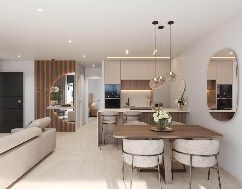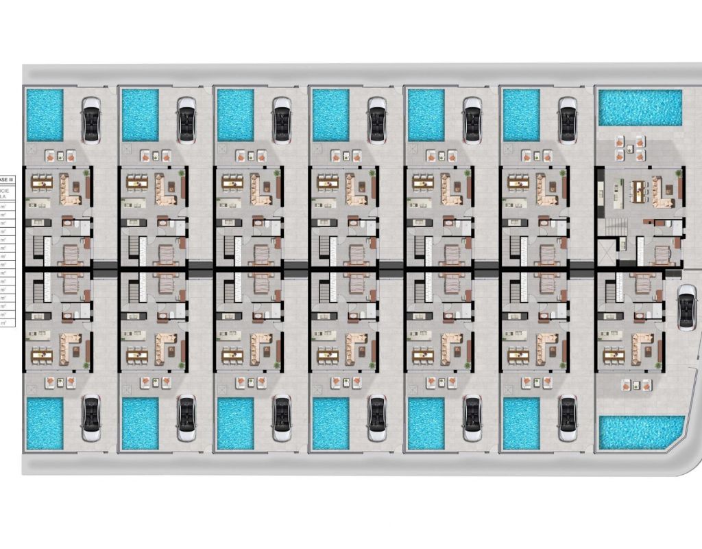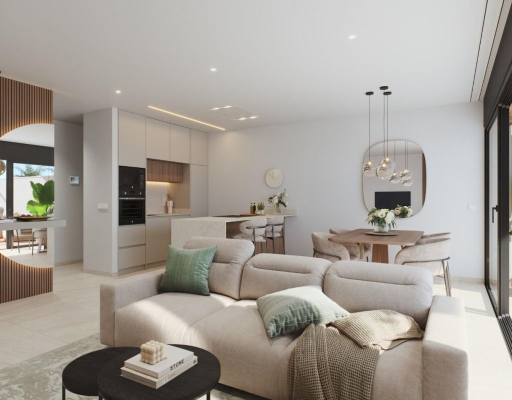 Modernas villas de nueva construcción con piscina privada en San Pedro del Pinatar Diseño contemporáneo y calidad de vida superior Descubra la tercera fase de este exclusivo proyecto residencial en San Pedro del Pinatar, donde la arquitectura moderna se une al confort y la funcionalidad. Estas 14 villas adosadas están diseñadas con un estilo minimalista y acabados de alta calidad, ofreciendo una experiencia de vida elegante y sofisticada en la Costa Cálida. Cada villa cuenta con 3-4 amplios dormitorios, 3 baños, piscina privada, terrazas y jardín privado, creando el entorno perfecto para la privacidad, la relajación y la vida al aire libre mediterránea. San Pedro del Pinatar es una de las localidades más cotizadas de la zona del Mar Menor, conocida por sus salinas naturales, sus tranquilas playas y su agradable clima durante todo el año, lo que la hace ideal tanto para vivir como para pasar las vacaciones. Distribución diáfana diseñada para la vida moderna Las villas están cuidadosamente distribuidas con una cocina abierta conectada a una luminosa sala de estar y comedor. Las grandes ventanas de la sala de estar, con persianas motorizadas, proporcionan acceso directo a la zona de la piscina y permiten que la luz natural inunde los espacios interiores. Las características principales de cada propiedad incluyen: 3 dormitorios con armarios empotrados 3 baños completamente equipados con tocadores, espejos y mamparas de ducha Cocina amueblada con electrodomésticos Balay incluidos Piscina privada y zona de jardín Iluminación LED interior y exterior Terrazas en la primera planta y solárium opcional en la azotea Plaza de aparcamiento en la parcela Sistema aerotérmico para agua caliente Paneles solares fotovoltaicos para una mayor eficiencia energética Preinstalación de aire acondicionado por conductos Estas viviendas están diseñadas para combinar sostenibilidad, comodidad y estilo moderno en cada detalle. Ubicación privilegiada cerca de playas y servicios Situada entre el Mar Menor y el mar Mediterráneo, San Pedro del Pinatar es un paraíso para los amantes de la playa y los deportes acuáticos. La localidad ofrece un animado puerto deportivo, baños de barro naturales, tiendas, restaurantes, instalaciones deportivas y excelentes servicios durante todo el año. Playas del Mar Menor a 3 km Playas del Mediterráneo a 5 km Centro comercial Dos Mares a 5 km Lo Romero Golf a 10 km Roda Golf a 15 km Aeropuerto de Murcia Corvera a 30 km Aeropuerto de Alicante a 80 km Puerto deportivo de San Pedro a 4 km Una vivienda ideal para vivir y como inversión Gracias a su ubicación, diseño y características de eficiencia energética, estas villas representan una excelente oportunidad como residencia permanente, vivienda vacacional o inversión para alquilar en una de las zonas más atractivas de la Costa Cálida. Póngase en contacto con nosotros hoy mismo para obtener más información o concertar una visita y asegurarse su nueva villa en San Pedro del Pinatar.