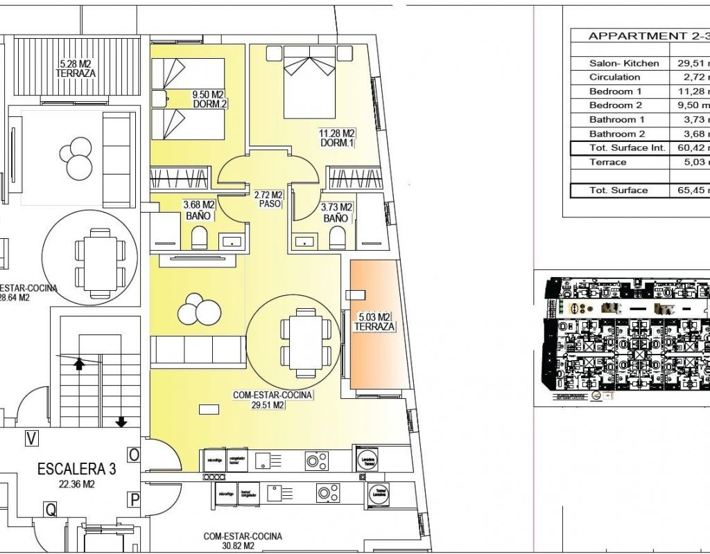 Modernos apartamentos de nueva construcción en el centro de San Miguel de Salinas Vida contemporánea en un entorno mediterráneo saludable Situada en la encantadora localidad de San Miguel de Salinas, a solo 10 km del mar Mediterráneo, esta nueva promoción residencial ofrece el equilibrio perfecto entre el confort moderno y el entorno natural. La zona es conocida por sus salinas cercanas y su excepcional microclima, considerado uno de los más saludables de Europa. Esta tranquila pero animada localidad permite a sus residentes disfrutar del auténtico estilo de vida mediterráneo, a la vez que se encuentra a poca distancia de tiendas, restaurantes, supermercados y todos los servicios esenciales. San Miguel de Salinas se encuentra ligeramente hacia el interior de la Costa Blanca Sur, lo que ofrece vistas despejadas, aire fresco y fácil acceso a playas, campos de golf y zonas comerciales. Apartamentos elegantes diseñados para ofrecer comodidad y eficiencia El proyecto consta de dos modernos edificios separados por una zona ajardinada comunitaria. Hay un total de 56 apartamentos contemporáneos disponibles con 1, 2 o 3 dormitorios, cada uno con terraza privada. Todas las viviendas han sido diseñadas pensando en la comodidad, la estética y la eficiencia energética, utilizando materiales de alta calidad y modernos sistemas de aislamiento. Cada apartamento incluye: Puerta de entrada blindada Cuartos de baño con tocadores Preinstalación de aire acondicionado por conductos Certificado energético de clase A La distribución y orientación de las viviendas garantizan la luz natural durante todo el día, creando interiores luminosos y acogedores, ideales tanto para vivir de forma permanente como para pasar las vacaciones. Excepcionales zonas comunes para el relax y la vida social La zona común de la planta baja está diseñada como el corazón social de la urbanización, rodeada de jardines, zonas de descanso, aparcamiento para bicicletas y un parque infantil. Es un punto de encuentro ideal para residentes de todas las edades. En la azotea, le espera una impresionante zona de ocio de 350 m2. Este espacio incluye una piscina de 70 m2 con una zona separada para niños, pérgolas, tumbonas y zonas de sombra, lo que permite a los residentes relajarse mientras disfrutan de unas vistas panorámicas. Se puede acceder fácilmente a la azotea mediante uno de los tres ascensores y cuenta con instalaciones sanitarias para mayor comodidad. Excelente ubicación cerca de los principales puntos de interés Playas mediterráneas a 10 km Centro comercial Zenia Boulevard a 9 km Villamartin Golf a 6 km Las Colinas Golf a 8 km Puerto deportivo de Torrevieja a 12 km Aeropuerto de Alicante a 60 km Aeropuerto de Murcia Corvera a 55 km Una inversión inteligente en la Costa Blanca Sur Este complejo residencial combina una arquitectura moderna, acabados de calidad y una ubicación céntrica privilegiada, lo que lo convierte en una excelente opción para vivir, disfrutar de las vacaciones o invertir en alquiler. Póngase en contacto con nosotros hoy mismo para obtener más información o concertar una visita a estos modernos apartamentos en San Miguel de Salinas.