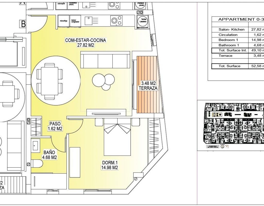 Modernos apartamentos de nueva construcción en el centro de San Miguel de Salinas Vida contemporánea en un entorno mediterráneo saludable Situada en la encantadora localidad de San Miguel de Salinas, a solo 10 km del mar Mediterráneo, esta nueva promoción residencial ofrece el equilibrio perfecto entre el confort moderno y el entorno natural. La zona es conocida por sus salinas cercanas y su excepcional microclima, considerado uno de los más saludables de Europa. Esta tranquila pero animada localidad permite a sus residentes disfrutar del auténtico estilo de vida mediterráneo, a la vez que se encuentra a poca distancia de tiendas, restaurantes, supermercados y todos los servicios esenciales. San Miguel de Salinas se encuentra ligeramente hacia el interior de la Costa Blanca Sur, lo que ofrece vistas despejadas, aire fresco y fácil acceso a playas, campos de golf y zonas comerciales. Apartamentos elegantes diseñados para ofrecer comodidad y eficiencia El proyecto consta de dos modernos edificios separados por una zona ajardinada comunitaria. Hay un total de 56 apartamentos contemporáneos disponibles con 1, 2 o 3 dormitorios, cada uno con terraza privada. Todas las viviendas han sido diseñadas pensando en la comodidad, la estética y la eficiencia energética, utilizando materiales de alta calidad y modernos sistemas de aislamiento. Cada apartamento incluye: Puerta de entrada blindada Cuartos de baño con tocadores Preinstalación de aire acondicionado por conductos Certificado energético de clase A La distribución y orientación de las viviendas garantizan la luz natural durante todo el día, creando interiores luminosos y acogedores, ideales tanto para vivir de forma permanente como para pasar las vacaciones. Excepcionales zonas comunes para el relax y la vida social La zona común de la planta baja está diseñada como el corazón social de la urbanización, rodeada de jardines, zonas de descanso, aparcamiento para bicicletas y un parque infantil. Es un punto de encuentro ideal para residentes de todas las edades. En la azotea, le espera una impresionante zona de ocio de 350 m2. Este espacio incluye una piscina de 70 m2 con una zona separada para niños, pérgolas, tumbonas y zonas de sombra, lo que permite a los residentes relajarse mientras disfrutan de unas vistas panorámicas. Se puede acceder fácilmente a la azotea mediante uno de los tres ascensores y cuenta con instalaciones sanitarias para mayor comodidad. Excelente ubicación cerca de los principales puntos de interés Playas mediterráneas a 10 km Centro comercial Zenia Boulevard a 9 km Villamartin Golf a 6 km Las Colinas Golf a 8 km Puerto deportivo de Torrevieja a 12 km Aeropuerto de Alicante a 60 km Aeropuerto de Murcia Corvera a 55 km Una inversión inteligente en la Costa Blanca Sur Este complejo residencial combina una arquitectura moderna, acabados de calidad y una ubicación céntrica privilegiada, lo que lo convierte en una excelente opción para vivir, disfrutar de las vacaciones o invertir en alquiler. Póngase en contacto con nosotros hoy mismo para obtener más información o concertar una visita a estos modernos apartamentos en San Miguel de Salinas.