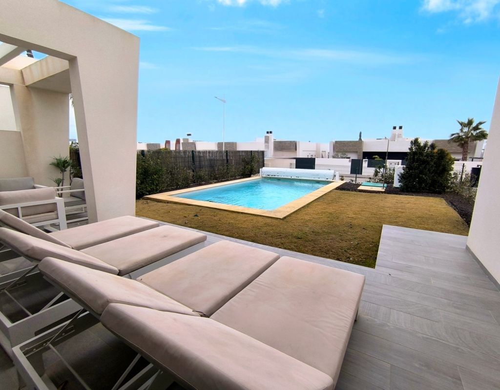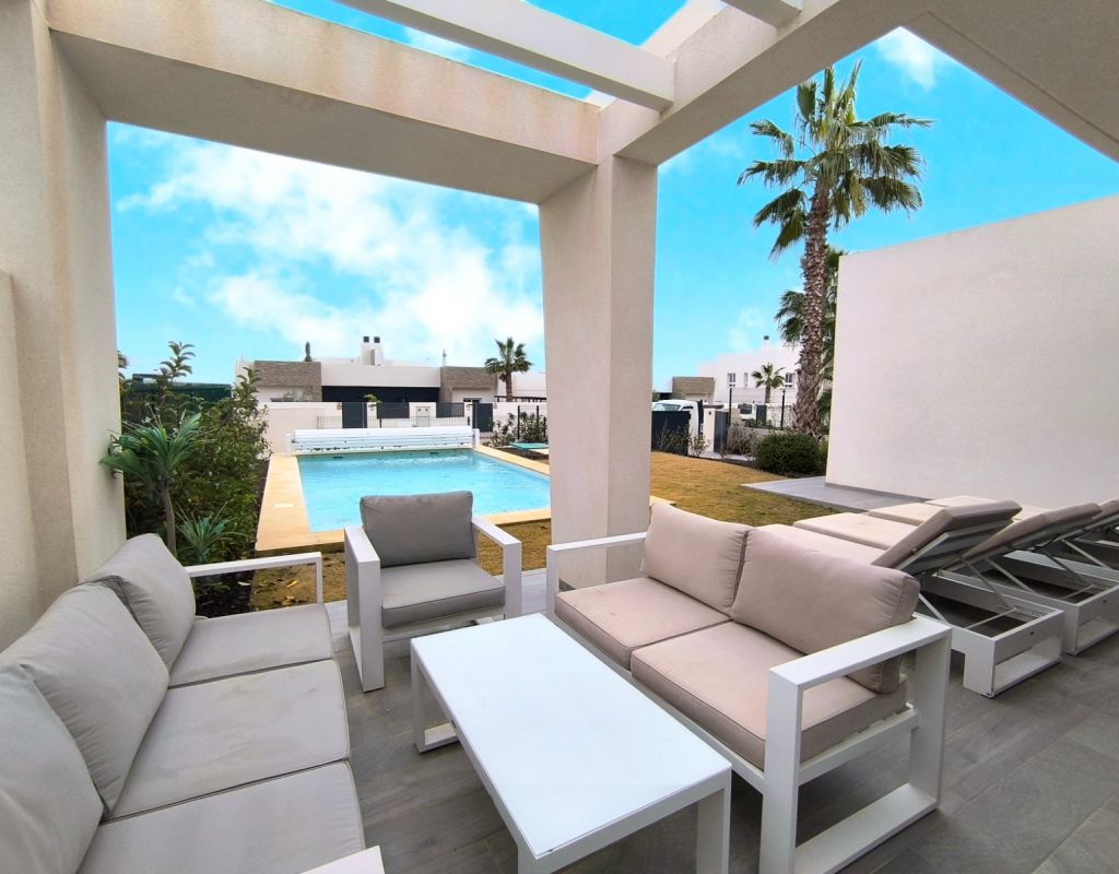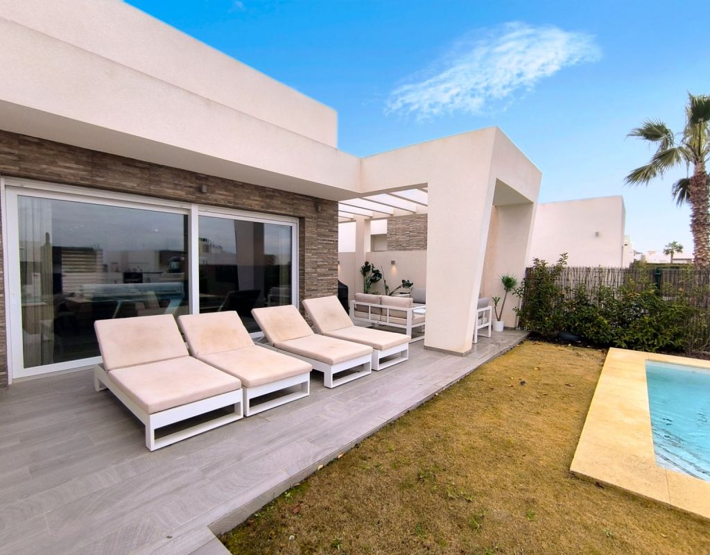 **Lujosa Villa Independiente en Algorfa, España** Descubra la máxima expresión de la vida de lujo en esta impresionante villa independiente ubicada en el prestigioso La Finca Golf Resort de 5 estrellas en Algorfa. Esta exquisita propiedad presume de acabados de alta calidad y un diseño abierto que crea una fluidez perfecta en todo el espacio. Con tres espaciosas habitaciones dobles y dos baños elegantemente diseñados, esta casa es perfecta para familias o quienes buscan un refugio tranquilo. Salga y descubra hermosos jardines y una fabulosa zona de estar al aire libre, con piscina privada climatizada para disfrutar durante todo el año. La moderna cocina es el sueño de cualquier chef, mientras que el espacioso salón-comedor ofrece el entorno ideal para recibir invitados o relajarse en familia. La suite principal cuenta con vestidor y baño privado, ofreciendo un oasis privado para relajarse después de un largo día. Esta villa no es solo lujo; es estilo de vida. Disfrute del galardonado campo de golf cercano, así como de una gran variedad de bares y restaurantes impresionantes a pocos minutos. Con playas con bandera azul a solo 15-20 minutos en coche y el aeropuerto de Alicante a aproximadamente 35 minutos, la ubicación es inmejorable. No pierda esta increíble oportunidad de adquirir un trocito de paraíso en una de las zonas más codiciadas de España. Con una generosa parcela de 500 m² y características de eficiencia energética, esta propiedad no es solo un hogar; es una opción de estilo de vida. ¡Disfrute hoy mismo de lo mejor de la vida española!