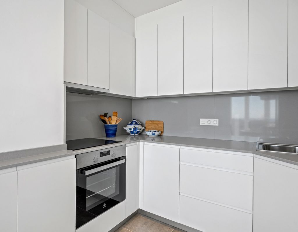Bienvenido a este precioso apartamento completamente renovado, situado en la 6ª y última planta del edificio, que ofrece fantásticas vistas abiertas y un ambiente luminoso y aireado. El apartamento fue totalmente reformado en 2018, donde se demolió hasta la estructura y se reconstruyó por completo. Tanto las instalaciones técnicas como todas las superficies interiores fueron actualizadas: Suelos, techos y paredes nuevos Sustitución completa de las tuberías de fontanería Sistema eléctrico completamente nuevo Suelo radiante en baño, sala de TV y salón Ventanas Climalit con sistema Sun Guardian Nueva barandilla en el balcón Puertas interiores nuevas Cocina y baño completamente nuevos Alicatados y materiales modernos en toda la vivienda El resultado es una vivienda con altos estándares técnicos y un acabado limpio y contemporáneo. La distribución es abierta y espaciosa, creando una conexión natural entre las zonas de estar. Los grandes ventanales permiten la entrada de abundante luz natural y realzan las excepcionales vistas desde la última planta. El balcón combina apertura y privacidad, ofreciendo una combinación ideal entre exposición solar y confort protegido. Esta propiedad es ideal para quienes buscan: ✔ Última planta ✔ Interior totalmente reformado ✔ Confort moderno ✔ Distribución abierta y social ✔ Vistas y atractivo espacio exterior Un apartamento listo para entrar a vivir, donde tanto los acabados visibles como las instalaciones técnicas han sido completamente renovados.