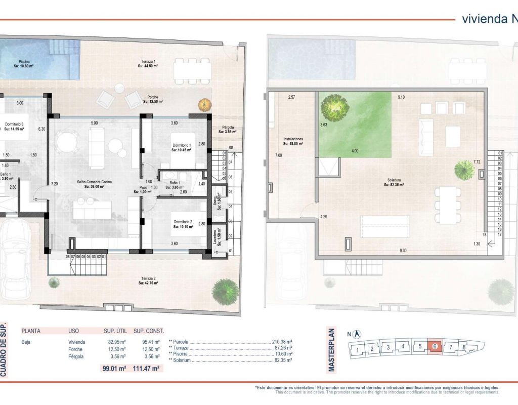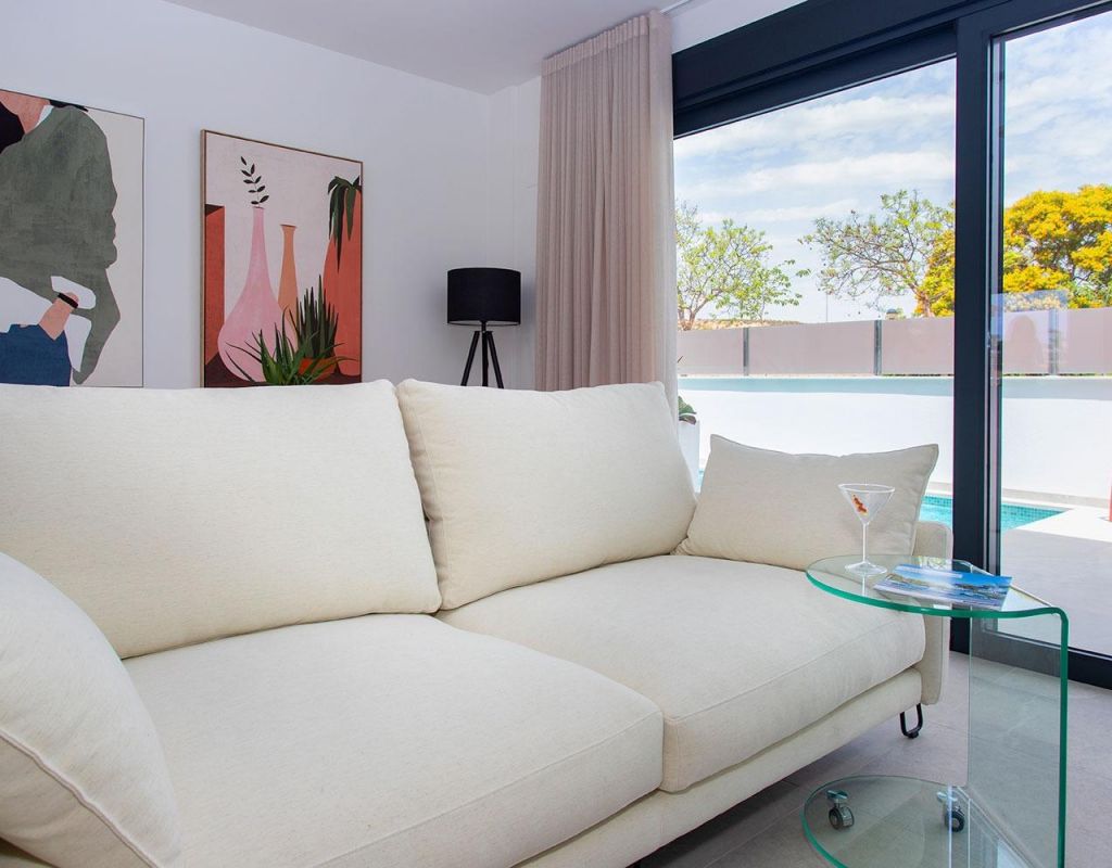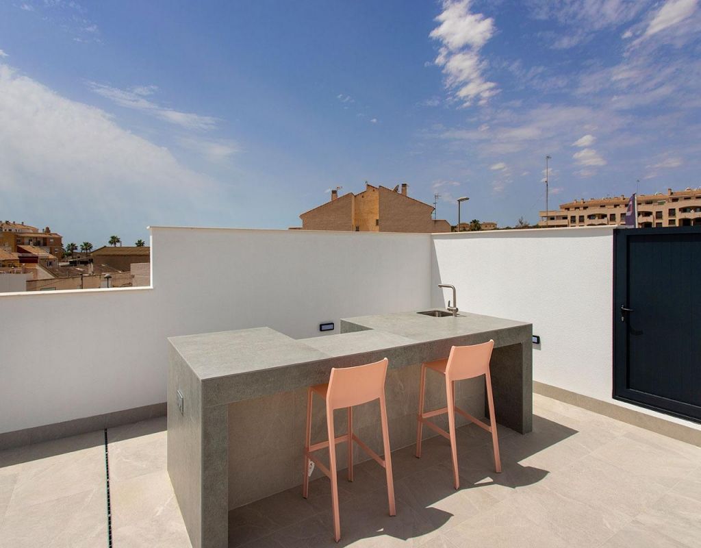 Villas adosadas de nueva construcción en Sucina: última unidad totalmente equipada y lista para entrar a vivir Oportunidad excepcional en Sucina Esta es su oportunidad de asegurarse la última unidad disponible en esta moderna promoción de nueva construcción, anteriormente utilizada como vivienda piloto. Está lista para entrar a vivir y se entrega totalmente equipada con muebles, electrodomésticos, iluminación interior y exterior, aire acondicionado, cargador de coche eléctrico y una cocina de verano exterior con nevera. Una oportunidad única llave en mano en uno de los pueblos con más encanto de la Costa Cálida. Diseño contemporáneo centrado en la luz y el confort Estas villas adosadas destacan por su diseño contemporáneo elegante y puro, con distribuciones creadas para maximizar la luz natural mediterránea. Las zonas de estar principales presentan un concepto de planta abierta en el que la cocina y el salón se fusionan a la perfección, conectados por una elegante isla central. Este espacio fluye directamente hacia el porche y la terraza de la piscina, creando un armonioso estilo de vida interior y exterior ideal para los días soleados. Vivienda de una sola planta con piscina privada y solárium La villa incluye 3 dormitorios y 2 baños en una sola planta, además de un práctico aseo exterior para la zona de la piscina. El dormitorio principal es excepcionalmente luminoso y ofrece un cuarto de baño en suite, vestidor y acceso directo a la terraza principal. La propiedad también cuenta con un impresionante solárium de 82 m2, perfecto para tomar el sol o crear un salón al aire libre. Construida en una parcela de 211 m2, la villa incluye aparcamiento fuera de la vía pública dentro de la parcela. Ubicación privilegiada cerca de todos los servicios Situada a pocos pasos del centro de Sucina, la villa ofrece acceso inmediato a servicios cotidianos como tiendas, restaurantes y supermercados. Sucina es una localidad tradicional española que ha ganado popularidad en los últimos años debido a su estilo de vida relajado, su ambiente auténtico y su proximidad a la costa. Las hermosas playas de la Costa Cálida y el Mar Menor están a solo unos minutos. Distancias a puntos de interés clave Aeropuerto de Murcia 25 km Aeropuerto de Alicante 75 km Playas del Mar Menor 15 km Campo de golf más cercano 4 km Puerto de San Pedro del Pinatar 20 km Viva un estilo de vida mediterráneo de alta calidad Construidas con materiales de excelente calidad y diseñadas para ofrecer comodidad, estas villas ofrecen una oportunidad excepcional para disfrutar de espacios abiertos, luz natural y aire puro durante todo el año. Póngase en contacto con nosotros hoy mismo para concertar una visita y asegurarse esta exclusiva vivienda lista para entrar a vivir en Sucina.