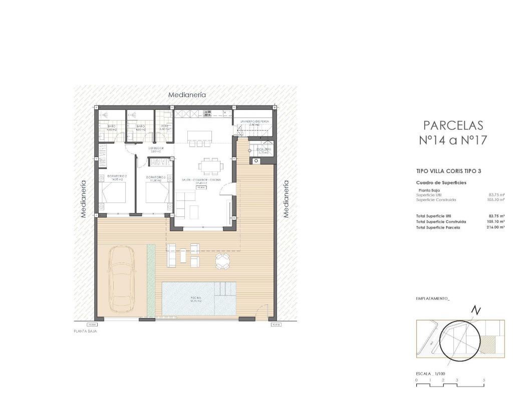VILLAS DE OBRA NUEVA EN SAN JUAN DE LOS TERREROS La arquitectura contemporánea e innovadora de las villas modernas llega para crear un complejo residencial situado en la localidad de San Juan de los Terreros en Pulpí, Almería, en el sur de España. Estas cuidadas viviendas y complejo residencial combinan un excepcional nivel de diseño y calidad con los más altos estándares de sostenibilidad y bienestar. Viviendas meticulosamente diseñadas por el equipo técnico de arquitectos, para que la luz, la amplitud y la orientación doten a cada vivienda y parcela de un carácter especial. Espacios únicos que abren la puerta a un nuevo estilo de vida para disfrutar. La cimentación y estructura de las viviendas están resueltas con hormigón armado y bajo garantía decenal. Fachadas diseñadas para reducir la demanda energética de la vivienda, combinadas con diversos materiales para conseguir una estética coherente en cuanto a composición y color como se refleja en la infografía. Amplias terrazas dotadas de sólidos antepechos para proporcionar seguridad en las barandillas de las terrazas, otorgando amplitud y luminosidad. Los cerramientos exteriores de la parcela se tratarán con los mismos materiales utilizados en la vivienda, garantizando la integración en el conjunto residencial. Cubiertas planas ventiladas y aisladas sobre forjados, con diferentes acabados según su ubicación y uso. La puerta de entrada a la vivienda será blindada. Las puertas del dormitorio principal, baños secundarios y aseos incluirán cerraduras. La carpintería exterior constará de ventanas y balconeras de Aluminio lacado con persianas enrollables de lamas de aluminio, motorizadas en salones. Sistema de video portero, que garantiza el control de acceso individual para cada una de las viviendas. Los cuartos de baño estarán equipados con lavabo, inodoro y ducha, y los aseos dispondrán de inodoro y lavabo. Los baños cuentan con sanitarios de diseño moderno, de porcelana vitrificada acabada en blanco, de la marca Roca y modelo Gap, con grifería monomando cromada o negro mate a elegir. Las mamparas de ducha irán fijadas con cristal templado de 8mm con una longitud de 80cm. Cada preinstalación está diseñada para un sistema de hasta 10 paneles, que pueden instalarse con un inversor solar conectado a la red eléctrica de la vivienda para minimizar el consumo eléctrico. Estos paneles se integrarán en el tejado, en la zona de instalación, ocultos desde el exterior de la vivienda. La entrada de aire a las viviendas se asegurará mediante la incorporación de un sistema de microventilación en las ventanas de salones y dormitorios. Salida de humos independiente para campana extractora de cocina. Preinstalación de domótica en la vivienda con preparación para una futura instalación de domótica para control de climatización y calefacción de habitaciones, persianas y posibles sistemas de alarma de intrusión. Preinstalación de videovigilancia en la zona de aparcamiento y zonas interiores de la parcela. Cada vivienda dispondrá de una cocina totalmente instalada y acabada en color blanco mate, según diseño, con sistema GOLA. Los armarios interiores serán blancos, con puertas abatibles y cajones con freno bajo placa vitrocerámica, listos para instalar electrodomésticos vistos. Los electrodomésticos no están incluidos. Los dormitorios con armarios empotrados se entregarán con puertas correderas en color blanco mate. Estas viviendas se caracterizarán por su eficiencia y ahorro energéticos, así como por su baja contaminación. Están diseñadas con un enfoque de mayor eficiencia para un menor consumo energético, promoviendo un uso racional de la energía a la vez que se cuida el medio ambiente, la calidad y el confort climático dentro de la vivienda. Los vidrios de baja emisividad evitan la pérdida de calor hacia el exterior, lo que se traduce en un ahorro económico al retener el calor en la vivienda durante el invierno y evitar la entrada de calor durante el verano. Los sistemas de climatización y agua caliente sanitaria están diseñados con sistemas individuales para maximizar el consumo y la eficiencia de cada vivienda. San Juan de los Terreros es una pedanía costera perteneciente al municipio de Pulpí. Es conocida por sus magníficas playas, las últimas de Andalucía. Frente a la costa de San Juan de los Terreros se encuentran dos pequeños islotes de naturaleza volcánica que forman el Monumento Natural de Isla de Terreros-Isla Negra. El monumento más característico de la localidad es el Castillo de San Juan de los Terreros, construido en 1764 sobre un promontorio desde el que, en días despejados, se divisa gran parte de las costas de Almería y Murcia. Integrado en la tranquilidad y belleza de su propia naturaleza, bañado por playas y calas de aguas cristalinas, clasificadas entre las mejores de España. Rodeado de paisajes naturales protegidos que nos llenan de calma y a la vez, nos recargan de energía, gracias a una vibrante oferta gastronómica, social y deportiva. Restaurantes exclusivos, clubes deportivos y, por supuesto, excelentes campos de golf con vistas al mar como Aguilón Golf. Un destino perfecto para disfrutar en familia durante todo el año.