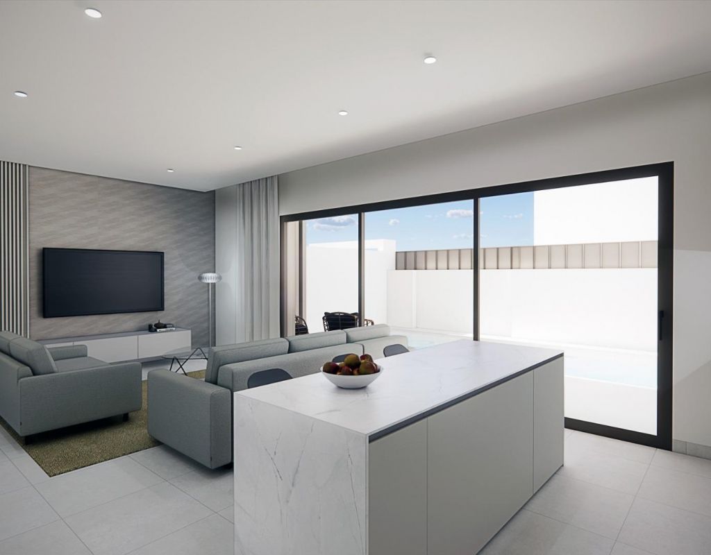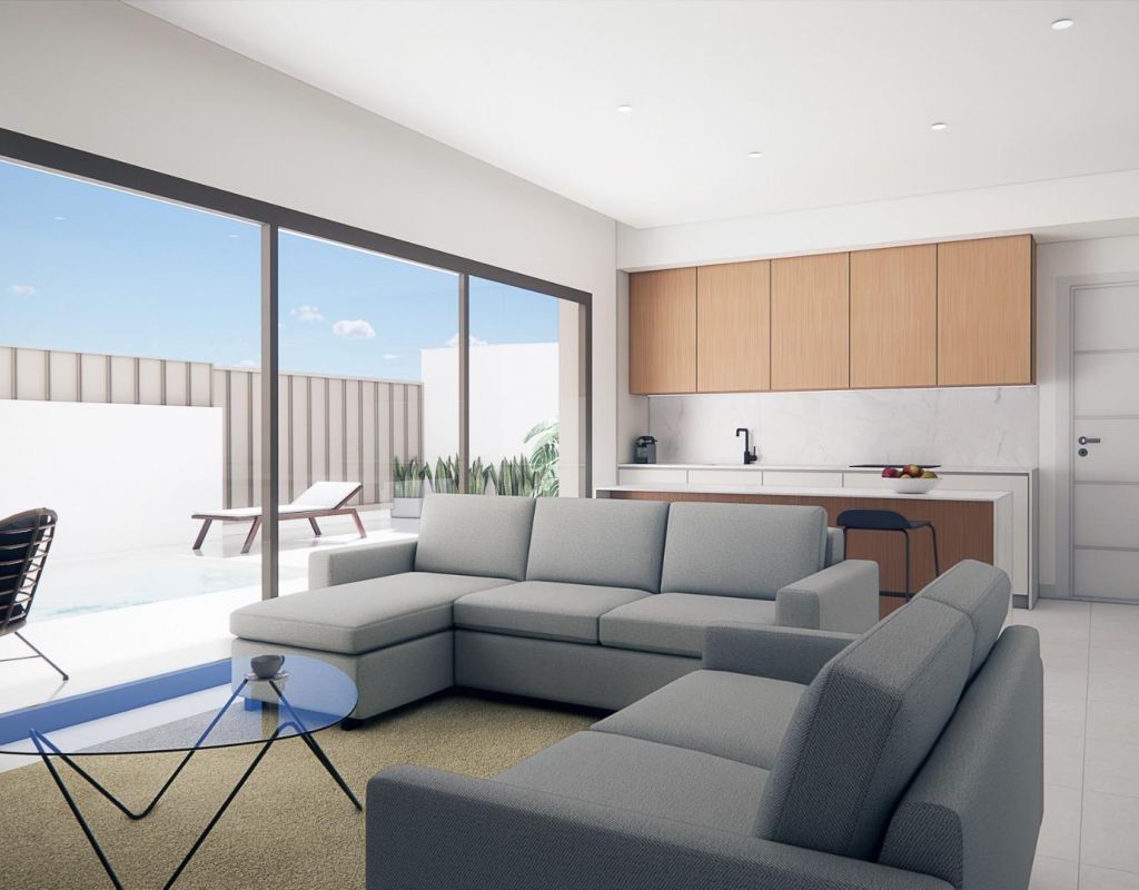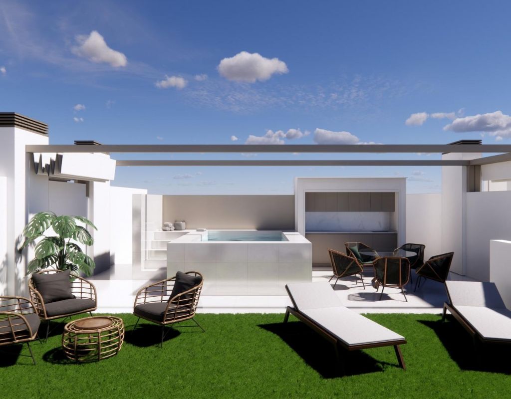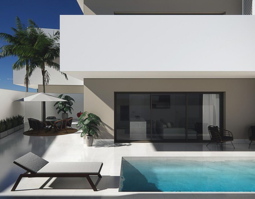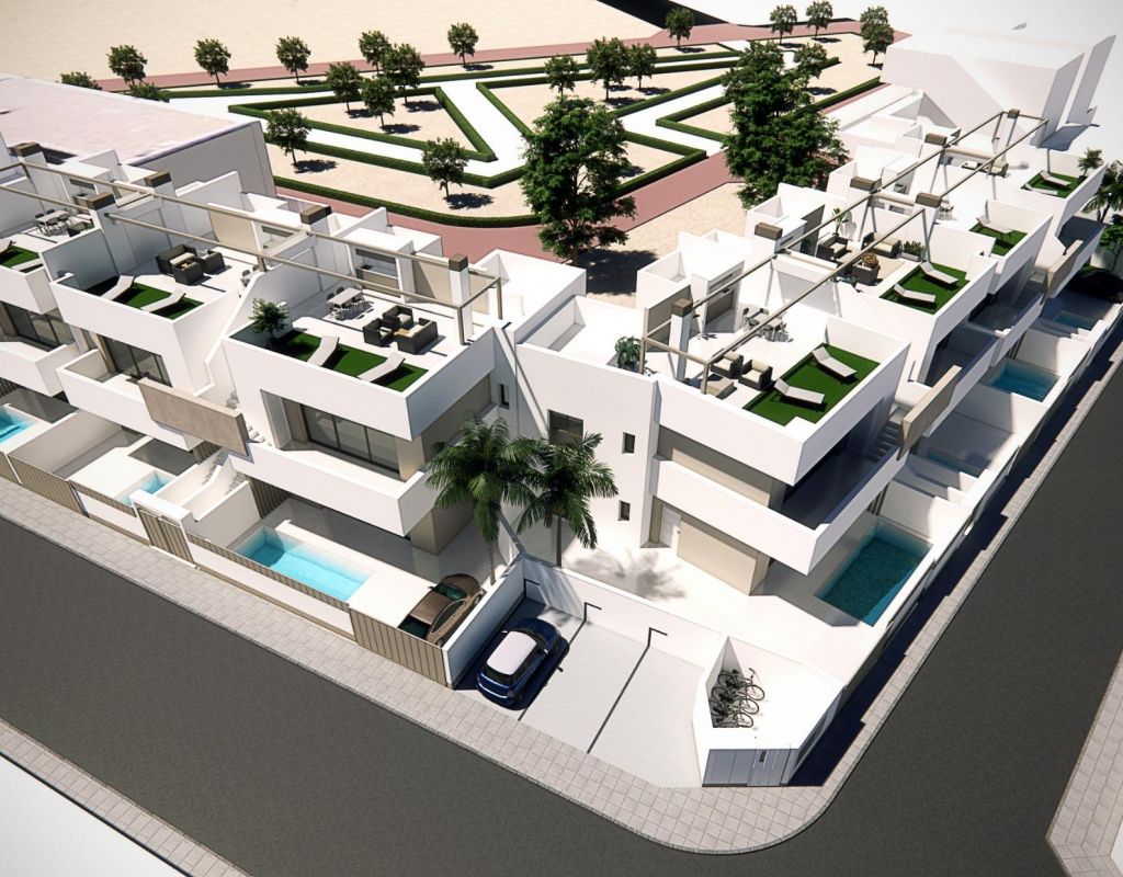 Bungalows de nueva construcción en venta en Pilar de la Horadada, a 3 km de la playa Complejo residencial boutique en Pilar de la Horadada Descubra este exclusivo complejo residencial de nueva construcción con modernos bungalows situado en Pilar de la Horadada, la localidad más meridional de la Costa Blanca. Este proyecto boutique consta de solo 14 viviendas cuidadosamente diseñadas con 2 o 3 dormitorios y 2 baños, que ofrecen una combinación ideal de comodidad, estilo y estilo de vida mediterráneo. La urbanización está situada en una tranquila zona residencial a poca distancia del centro de la ciudad, lo que permite a los residentes disfrutar de un fácil acceso a tiendas, restaurantes, supermercados y servicios esenciales. Pilar de la Horadada es conocida por su ambiente acogedor, su encanto tradicional español y su animada calle principal llena de cafeterías, boutiques y encantadoras plazas. Bungalows modernos con espacios exteriores privados Las viviendas han sido diseñadas para ofrecer interiores luminosos y distribuciones funcionales, perfectas tanto para vivir de forma permanente como para pasar las vacaciones. Los bungalows de la planta baja cuentan con jardín privado y piscina privada, creando el entorno perfecto para disfrutar de la vida al aire libre, tomar el sol o recibir a familiares y amigos. Los bungalows de la planta superior incluyen una amplia terraza y un solárium privado en la azotea. El solárium cuenta con una cocina de verano y ofrece la opción de añadir una piscina privada o un jacuzzi con un coste adicional, lo que lo convierte en un espacio ideal para relajarse mientras se disfruta del cálido clima mediterráneo y de las vistas panorámicas. Cada propiedad incluye una plaza de aparcamiento privada dentro del complejo residencial para mayor comodidad. Construcción de calidad y características modernas Estas viviendas de nueva construcción están construidas con materiales de calidad e instalaciones modernas diseñadas para garantizar el confort y la eficiencia energética durante todo el año. Carpintería exterior de aluminio con rotura de puente térmico Cocinas totalmente equipadas con electrodomésticos incluidos Baños equipados con espejos y mamparas de ducha Iluminación LED interior y exterior Sistema de agua caliente con tecnología aerotérmica de alta eficiencia energética Preinstalación para aire acondicionado por conductos La combinación de diseño moderno y características prácticas hace que estas viviendas sean una excelente opción para los compradores que buscan una propiedad contemporánea en la Costa Blanca. Excelente ubicación cerca de playas y campos de golf Pilar de la Horadada goza de una ubicación estratégica cerca de algunas de las mejores playas y campos de golf de la región. Playa de Torre de la Horadada a 3 km Playa de Mil Palmeras a 3 km Campo de golf Lo Romero a 6 km Aeropuerto Internacional de la Región de Murcia a 45 km Aeropuerto de Alicante-Elche a 75 km La zona también ofrece excelentes conexiones por carretera con las localidades costeras cercanas, los puertos deportivos y las instalaciones de ocio, lo que la convierte en una base perfecta para explorar la Costa Blanca y la Costa Cálida. Encuentre su nuevo hogar en la Costa Blanca Si busca un bungalow moderno de nueva construcción cerca de la playa, con excelentes servicios y una ubicación fantástica, esta promoción residencial en Pilar de la Horadada es una oportunidad excepcional. Póngase en contacto con nosotros hoy mismo para obtener más información o concertar una visita.