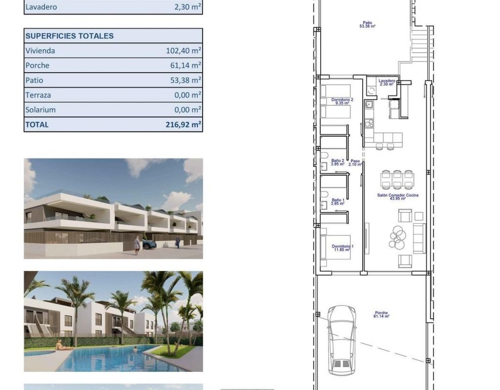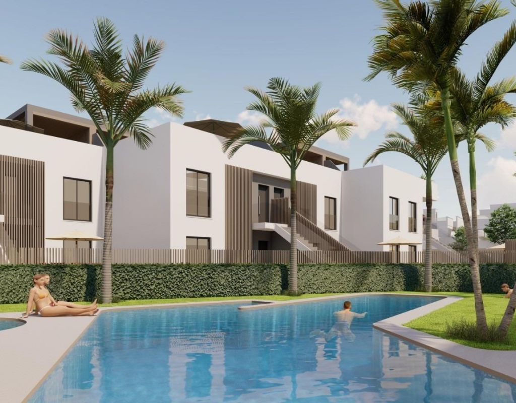 Apartamentos y bungalós de nueva construcción en venta en Pilar de la Horadada, cerca de la playa Exclusiva urbanización residencial en el sur de la Costa Blanca Descubra este moderno complejo residencial de nueva construcción situado en Pilar de la Horadada, la localidad más meridional de la Costa Blanca. Esta urbanización boutique ofrece una selección de apartamentos y bungalós contemporáneos diseñados para combinar comodidad, funcionalidad y estilo de vida mediterráneo. El proyecto consta de solo 26 viviendas cuidadosamente diseñadas con 2 o 3 dormitorios y 2 baños, lo que lo convierte en una opción ideal tanto para residencia permanente como para vacaciones. El complejo está situado en una tranquila zona residencial a poca distancia del centro de la ciudad, donde los residentes pueden disfrutar de restaurantes, cafeterías, supermercados, tiendas locales y todos los servicios esenciales. Pilar de la Horadada es una encantadora ciudad española conocida por su ambiente acogedor, su animada calle principal y sus hermosas plazas. Con excelentes conexiones con las zonas costeras y los complejos de golf cercanos, es un destino muy popular entre los compradores internacionales que buscan sol y calidad de vida. Apartamentos y bungalós con espacios exteriores privados La promoción ofrece dos tipos de propiedades diferentes para adaptarse a diversos estilos de vida. El complejo incluye 16 apartamentos modernos. Los compradores pueden elegir entre unidades en la planta baja con jardines privados, apartamentos en las plantas intermedias con amplias terrazas o áticos con terrazas privadas y soláriums en la azotea. Cada apartamento incluye una plaza de aparcamiento y un trastero en el garaje subterráneo. También hay 10 bungalows disponibles. Los bungalows de la planta baja cuentan con jardines privados y aparcamiento dentro de la parcela, mientras que los bungalows de la planta superior ofrecen terrazas y soláriums privados. Estas viviendas de los pisos superiores incluyen aparcamiento y trastero en el sótano. Todas las viviendas han sido diseñadas con interiores luminosos, distribuciones abiertas y cómodas zonas de estar que se extienden de forma natural a los espacios exteriores. Construcción de calidad y características modernas Las viviendas están construidas con materiales de alta calidad y sistemas modernos para garantizar el confort y la eficiencia energética durante todo el año. Cocinas amuebladas Baños totalmente equipados con mamparas de ducha y calefacción por suelo radiante Sistema de agua caliente aerotérmico de alta eficiencia energética Preinstalación para aire acondicionado por conductos Los residentes también se benefician de una piscina comunitaria rodeada de jardines y zonas para tomar el sol, lo que crea un ambiente relajante para disfrutar del clima mediterráneo. Excelente ubicación cerca de playas y campos de golf La urbanización goza de una ubicación estratégica cerca de algunas de las mejores playas y campos de golf de la región. Playa de Torre de la Horadada 3 km Playa de Mil Palmeras 3 km Lo Romero Golf 6 km Aeropuerto Internacional de la Región de Murcia 45 km Aeropuerto de Alicante Elche 75 km La zona también ofrece excelentes conexiones por carretera con las localidades costeras cercanas, los puertos deportivos y las instalaciones de ocio a lo largo de la Costa Blanca y la Costa Cálida. Encuentre su nuevo hogar en Pilar de la Horadada Este atractivo complejo residencial de nueva construcción ofrece viviendas modernas, acabados de calidad y una fantástica ubicación cerca de la playa. Póngase en contacto con nosotros hoy mismo para obtener más información o concertar una visita y asegurarse su nueva propiedad en la Costa Blanca.