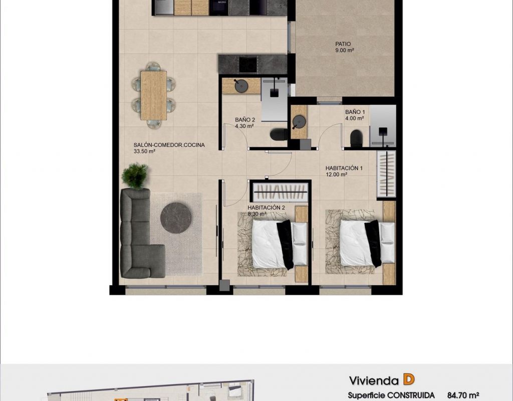 Apartamentos de nueva construcción en venta en Catral, Alicante, con piscina en la azotea Vida moderna en el centro de Catral Descubra este edificio residencial de nueva construcción situado en el corazón de Catral, una encantadora localidad de la comarca de la Vega Baja, en la Costa Blanca. La promoción consta de 9 modernos apartamentos de 1, 2 o 3 dormitorios distribuidos en planta baja y dos plantas superiores, lo que supone una excelente oportunidad tanto para vivir de forma permanente como para invertir. El edificio está perfectamente situado en el centro de la localidad, lo que permite a los residentes disfrutar de la vida cotidiana con supermercados, cafeterías, restaurantes, colegios y servicios esenciales a poca distancia a pie. Catral es conocida por su relajado ambiente mediterráneo, su carácter tradicional español y sus cómodas conexiones con los destinos costeros cercanos. Apartamentos con diseño contemporáneo y distribuciones funcionales Cada apartamento ha sido diseñado para ofrecer espacios confortables con acabados modernos y distribuciones prácticas. Las viviendas son luminosas y están bien distribuidas, lo que las hace ideales para familias, parejas o compradores que buscan una segunda residencia en la Costa Blanca. Los residentes disfrutarán de acceso a una zona comunitaria en la azotea con piscina y solárium. Este espacio elevado ofrece un entorno relajante para tomar el sol y disfrutar de vistas abiertas mientras se aprovecha el excelente clima mediterráneo. El edificio también cuenta con ascensor, lo que garantiza un fácil acceso a todas las plantas y proporciona comodidad a los residentes de todas las edades. Acabados de calidad y características modernas Estos apartamentos de nueva construcción están construidos con materiales de alta calidad e instalaciones energéticamente eficientes para garantizar el confort y la durabilidad. Puerta de entrada blindada Cocina totalmente amueblada y equipada con electrodomésticos BOSCH Baños con tocadores, espejos, mamparas de ducha y calefacción por suelo radiante Paquete de iluminación LED con focos empotrados Persianas eléctricas Preinstalación para aire acondicionado por conductos Clasificación de eficiencia energética A La mayoría de las unidades incluyen una plaza de aparcamiento asignada y algunos apartamentos también disponen de un trastero privado. Excelente ubicación en la región de Vega Baja Catral goza de una posición estratégica en la parte sur de la provincia de Alicante, lo que ofrece un fácil acceso a las playas, los campos de golf y las principales conexiones de transporte. Playas de Guardamar del Segura a 15 km La Finca Golf a 14 km Vistabella Golf a 14 km Elche, a 20 km Aeropuerto de Alicante-Elche, a 25 km Esta cómoda ubicación permite a los residentes disfrutar de la tranquilidad de la vida en un pueblo, sin alejarse de la costa y de los principales centros urbanos. Reserve su nuevo apartamento en Catral Estos modernos apartamentos de nueva construcción ofrecen una construcción de calidad, eficiencia energética y una ubicación céntrica a un precio muy competitivo. Póngase en contacto con nosotros hoy mismo para concertar una visita y asegurarse su nueva vivienda en Catral antes de que se vendan las unidades restantes.