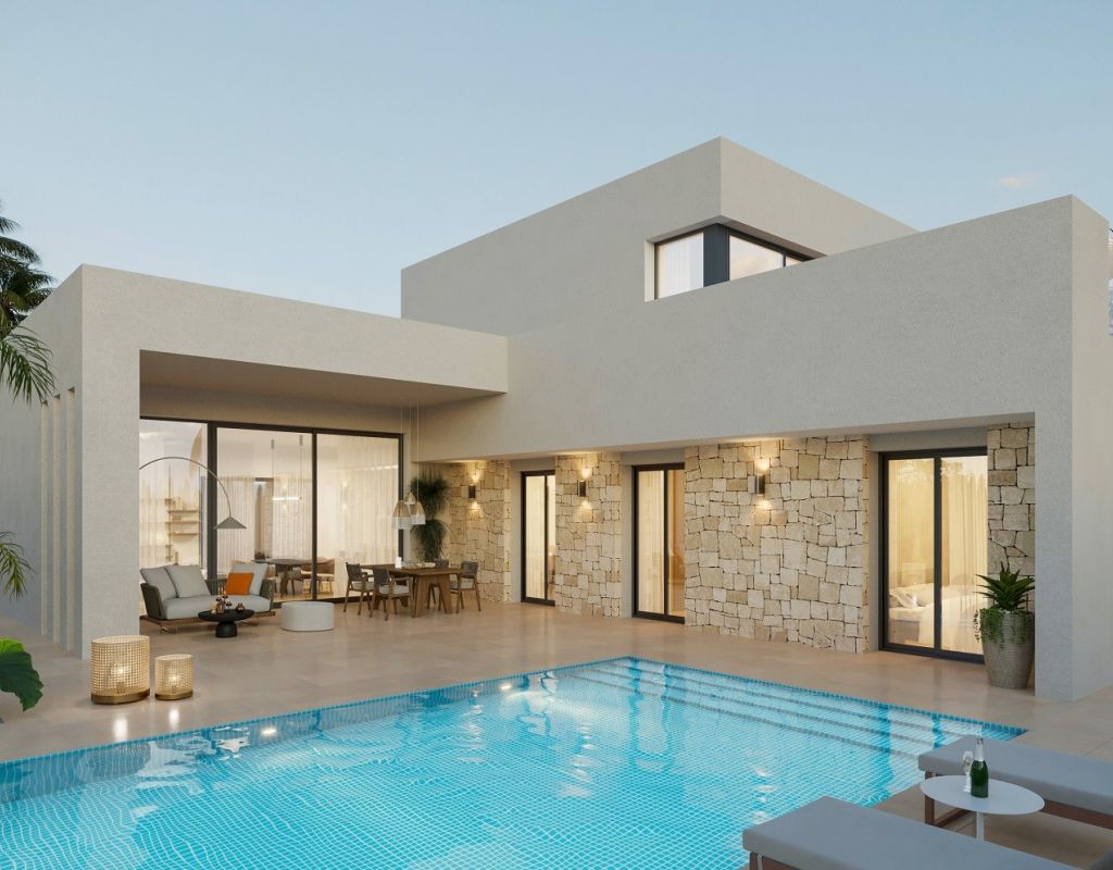 Villa Stone Plus es una casa de campo de obra nueva sobre plano de 4 dormitorios y 3 baños, diseñada con meticulosa atención al detalle, que ofrece la combinación perfecta de confort, estilo moderno y funcionalidad. Elija su parcela ideal en Aspe, Pinoso, La Romana, Hondón de las Nieves o Elche. Las parcelas no están incluidas en el precio; consulte disponibilidad y precios por separado. La villa cuenta con una piscina privada de 8 × 4 m con borde blanco e iluminación LED, rodeada de hormigón impreso. La zona exterior también incluye un trastero de 2 × 3 m, ducha exterior y la opción de añadir césped artificial para un jardín con un acabado impecable. Los materiales de alta calidad definen tanto el interior como el exterior, incluyendo carpintería de aluminio negro con persianas motorizadas, doble acristalamiento Climalit, estanterías Caliza Capri, suelos de porcelana personalizables y terrazas exteriores antideslizantes. Los armarios empotrados garantizan espacios de estar elegantes y prácticos. Los baños cuentan con acabados modernos, con platos de ducha a ras de suelo y mamparas, grifería monomando cromada, elegantes muebles con lavabos integrados, espejos LED y sanitarios de porcelana vitrificada. La cocina de diseño incluye muebles altos y bajos, encimeras de Silestone, isla central, salpicadero cerámico y preinstalación de electrodomésticos. El confort y la eficiencia están garantizados con la preinstalación de aire acondicionado por conductos, un sistema de aerotermia para agua caliente, una salida de chimenea y la preinstalación de paneles fotovoltaicos. La parcela, completamente vallada y con puerta automática para vehículos, garantiza privacidad y seguridad. Villa Stone Plus es más que un hogar: es un refugio moderno donde se fusionan calidad, sostenibilidad y estilo de vida contemporáneo.