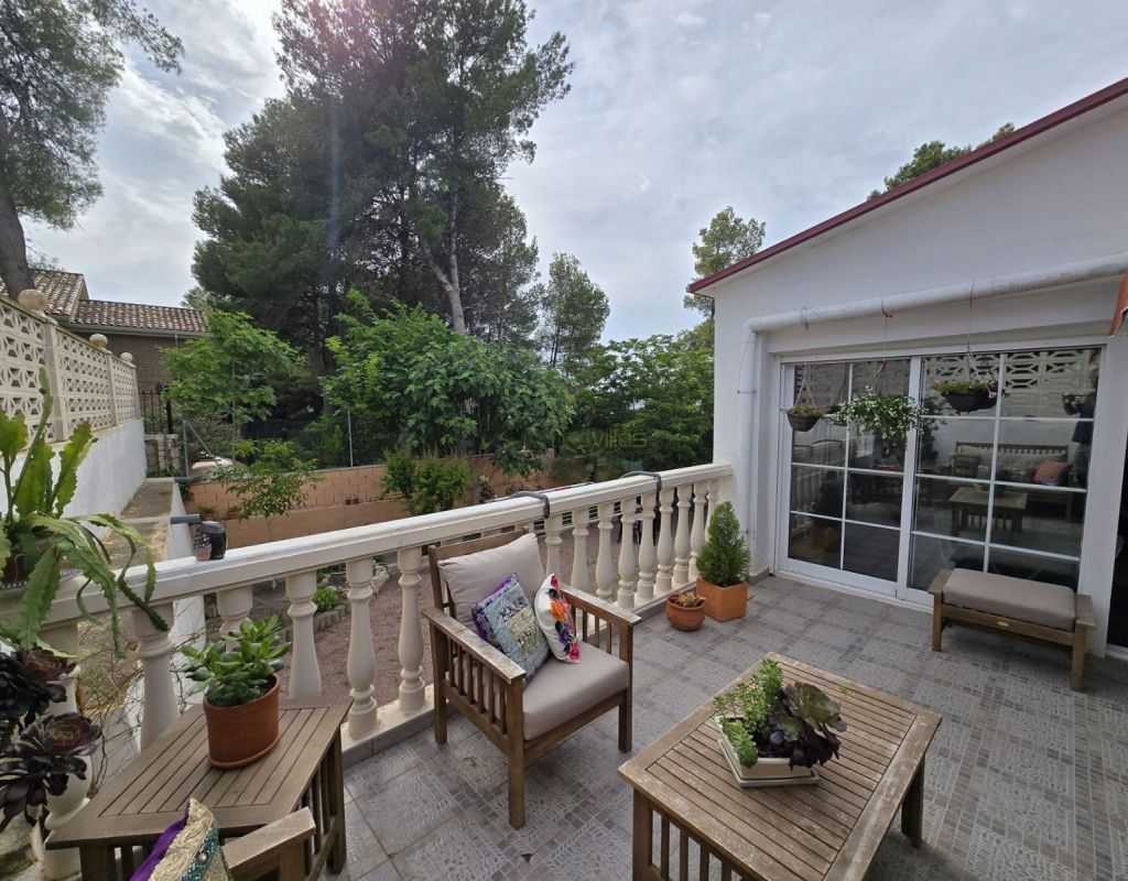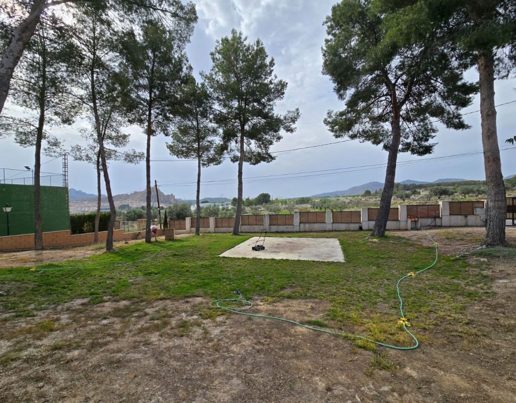 Nos complace presentar esta encantadora casa de campo de 3 dormitorios y 2 baños, ubicada a las afueras de Sax, con impresionantes vistas del pueblo y del emblemático Castillo de Sax. Situada en una parcela de 1600 m² completamente amurallada y vallada, la propiedad combina privacidad, espacio exterior y una fantástica posición elevada con vistas inmejorables. Se accede a la propiedad a través de una puerta eléctrica desde la carretera asfaltada. El camino de entrada conduce a la zona de sótano, que actualmente cuenta con dos amplios garajes, un taller y un aseo. El jardín incluye una caseta para barbacoa, un trastero y espacio para una piscina, actualmente utilizada para una piscina desmontable. Se accede a la casa principal mediante una escalera, lo que le confiere una posición elevada en la parcela. En el interior, encontrará un amplio salón-comedor diáfano con la cocina a la derecha, que incluye despensa y lavadero, y los dormitorios y un baño a la izquierda. Detrás de la sala de estar, un maravilloso patio ofrece el lugar perfecto para relajarse y disfrutar de una bebida mientras se contemplan las hermosas vistas del pueblo y el castillo, lo que convierte a esta propiedad en un hallazgo excepcional y encantador cerca de Sax.