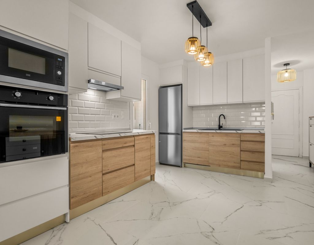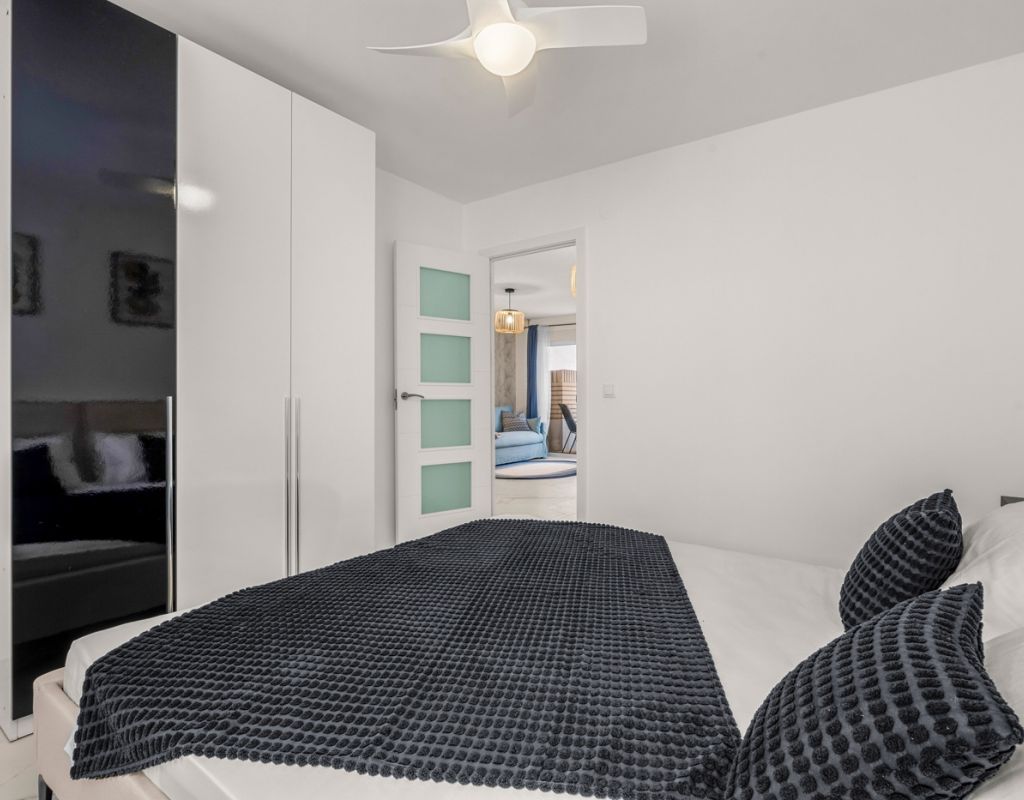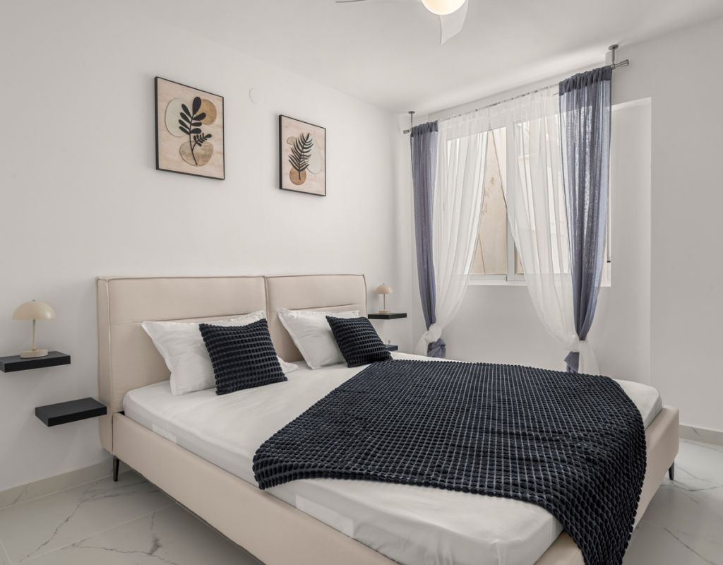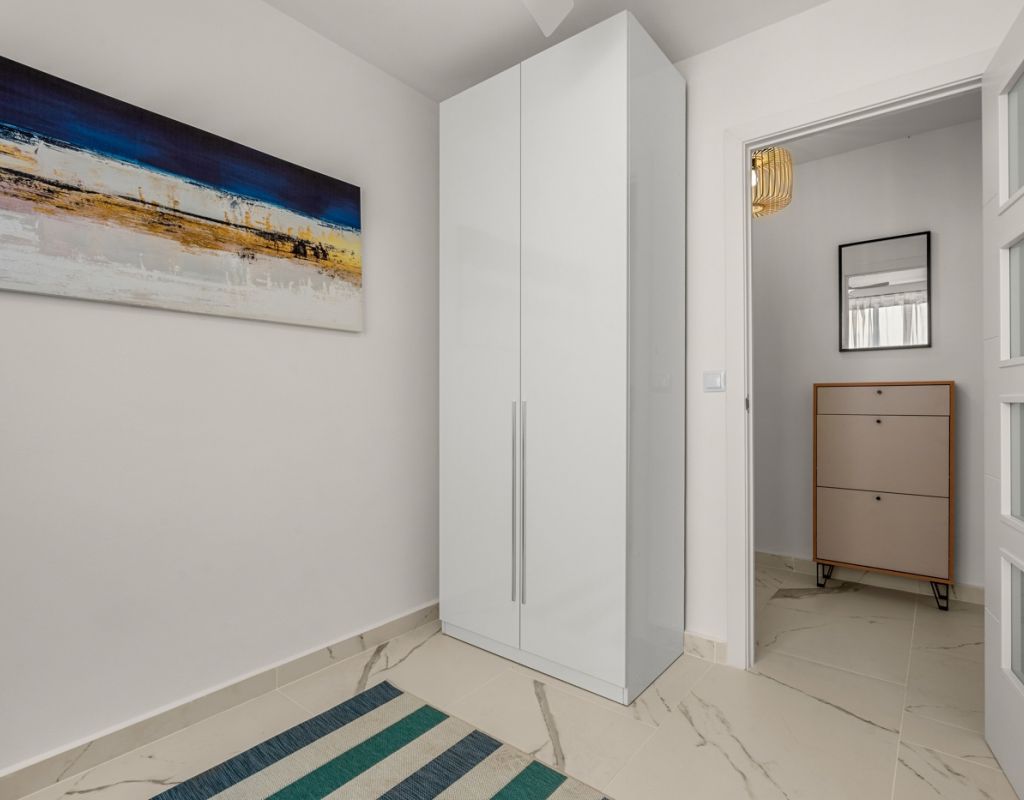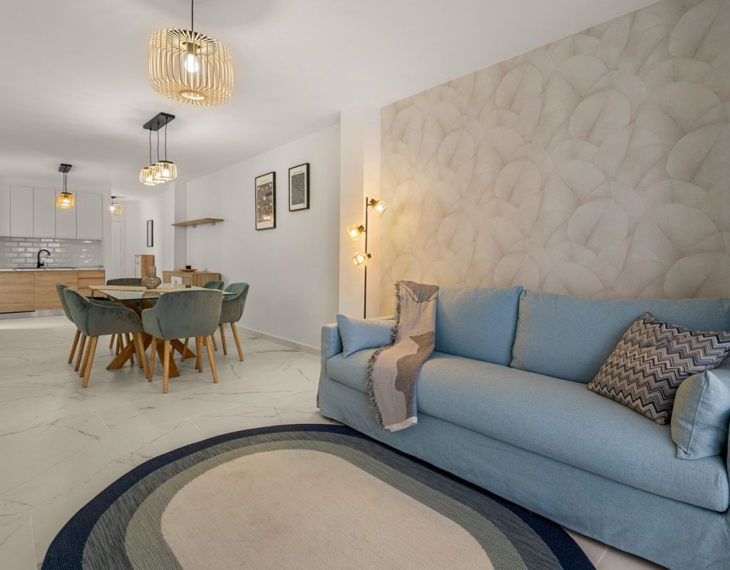 Magnífico piso de 75 m² completamente reformado, listo para entrar a vivir. La vivienda cuenta con 3 amplias habitaciones, una de ellas en suite, y un baño adicional, ambos equipados con ducha. Dispone de una moderna cocina totalmente equipada, con acceso a un práctico patio interior donde se ubica la zona de lavandería. El salón-comedor se integra con la cocina en un espacio abierto, luminoso y diáfano, ideal para disfrutar en familia o con amigos. Todas las habitaciones están equipadas con ventiladores de techo y aire acondicionado, garantizando confort durante todo el año. El apartamento ofrece vistas laterales al mar y se encuentra en una ubicación privilegiada, en la Playa del Cura (Torrevieja), a pocos pasos del mar y del paseo marítimo, rodeado de zonas de ocio, restaurantes y todos los servicios. Se vende completamente amueblado e incluye plaza de garaje.