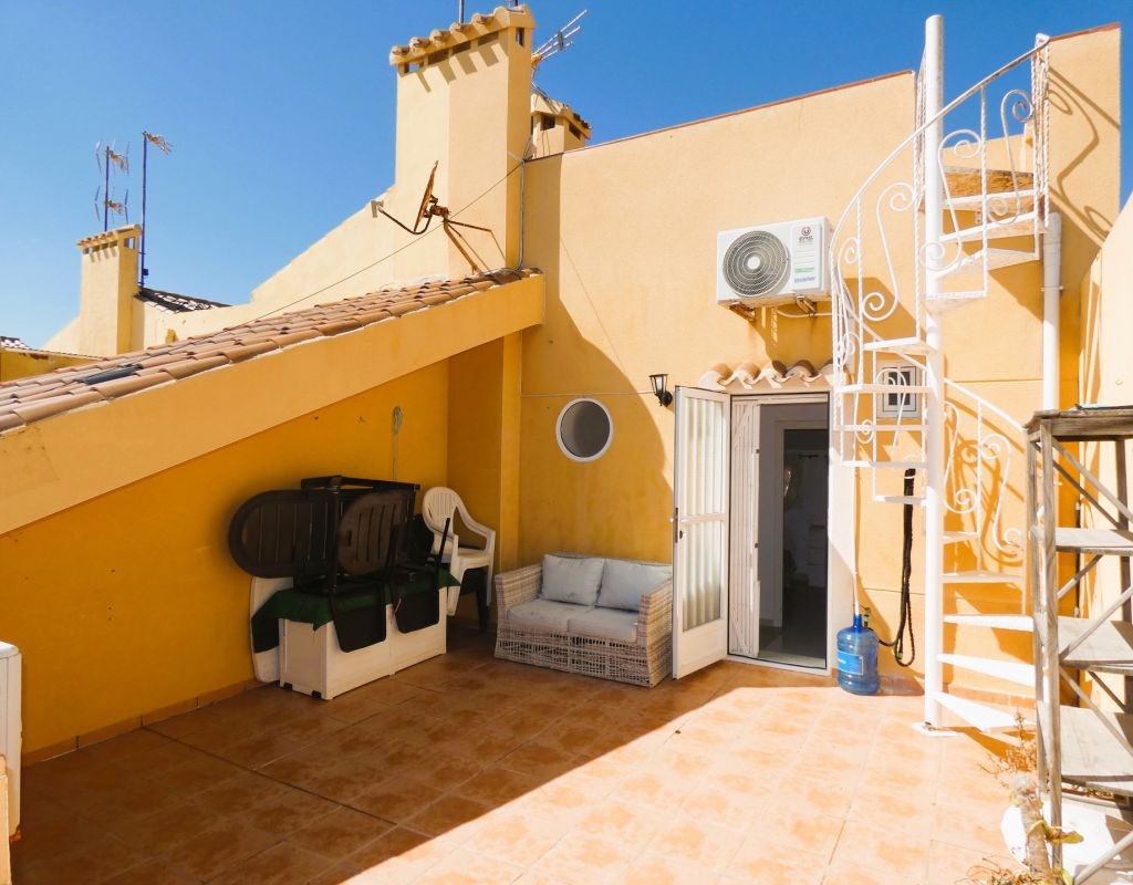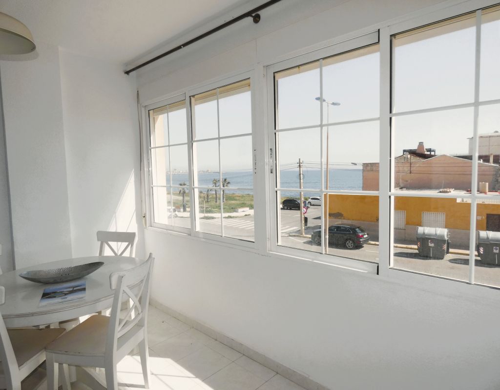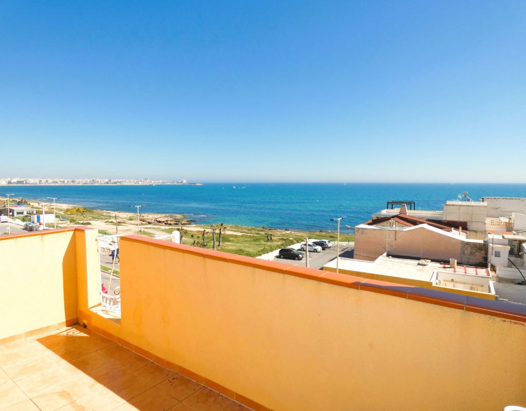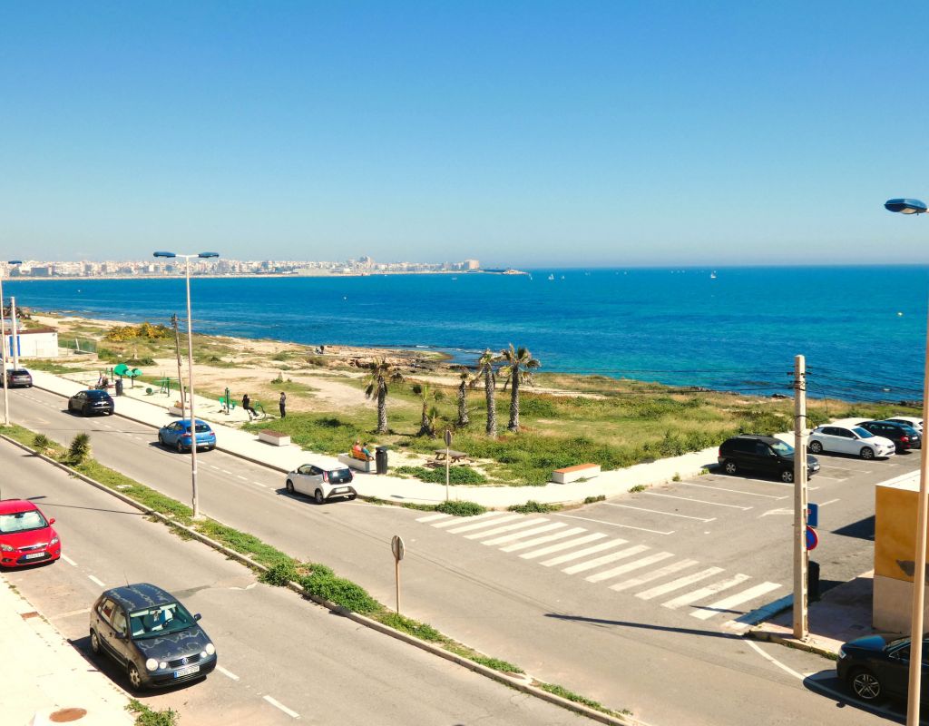 Descubra el privilegio de vivir frente al Mediterráneo en este espectacular dúplex situado en primera línea de la playa de La Veleta, la zona residencial más exclusiva de Torrevieja. La vivienda destaca por su diseño funcional y su inmejorable orientación, ofreciendo un estilo de vida mediterráneo sin igual. En la planta principal, el hogar recibe a sus habitantes con un salón-comedor luminoso que conecta de forma fluida con una cocina semi-abierta, creando un ambiente moderno y social. Esta planta se completa con dos dormitorios dobles, ambos equipados con armarios empotrados, y un baño completo con plato de ducha. Al subir a la planta superior, se encuentra un tercer dormitorio privado que destaca por su salida directa a una terraza exterior, acompañado de un segundo baño completo con bañera. El verdadero tesoro de esta propiedad es su impresionante solárium de 23 m², un mirador privado con vistas panorámicas al mar, ideal para disfrutar del sol y del clima excepcional de la Costa Blanca. Para garantizar el máximo confort en cualquier época del año, la vivienda cuenta con aire acondicionado instalado en ambas plantas. La ubicación en La Veleta añade un valor incalculable a la propiedad, ya que es una de las zonas residenciales más selectas y tranquilas de Torrevieja. Este enclave se distingue por su ambiente relajado, alejado del bullicio turístico pero con la ventaja de estar a un paso de todos los servicios esenciales. Los residentes de La Veleta disfrutan de la proximidad inmediata al mar y de hermosos paseos costeros, además de tener a pocos minutos el Hospital Universitario de Torrevieja, centros comerciales, supermercados de grandes superficies y una excelente conexión con la carretera N-332. Es, en definitiva, el entorno perfecto para quienes buscan la serenidad de una zona residencial de lujo sin renunciar a la comodidad de tener la ciudad y las mejores playas de la zona a su alcance. Bienvenido a reservar una visita.