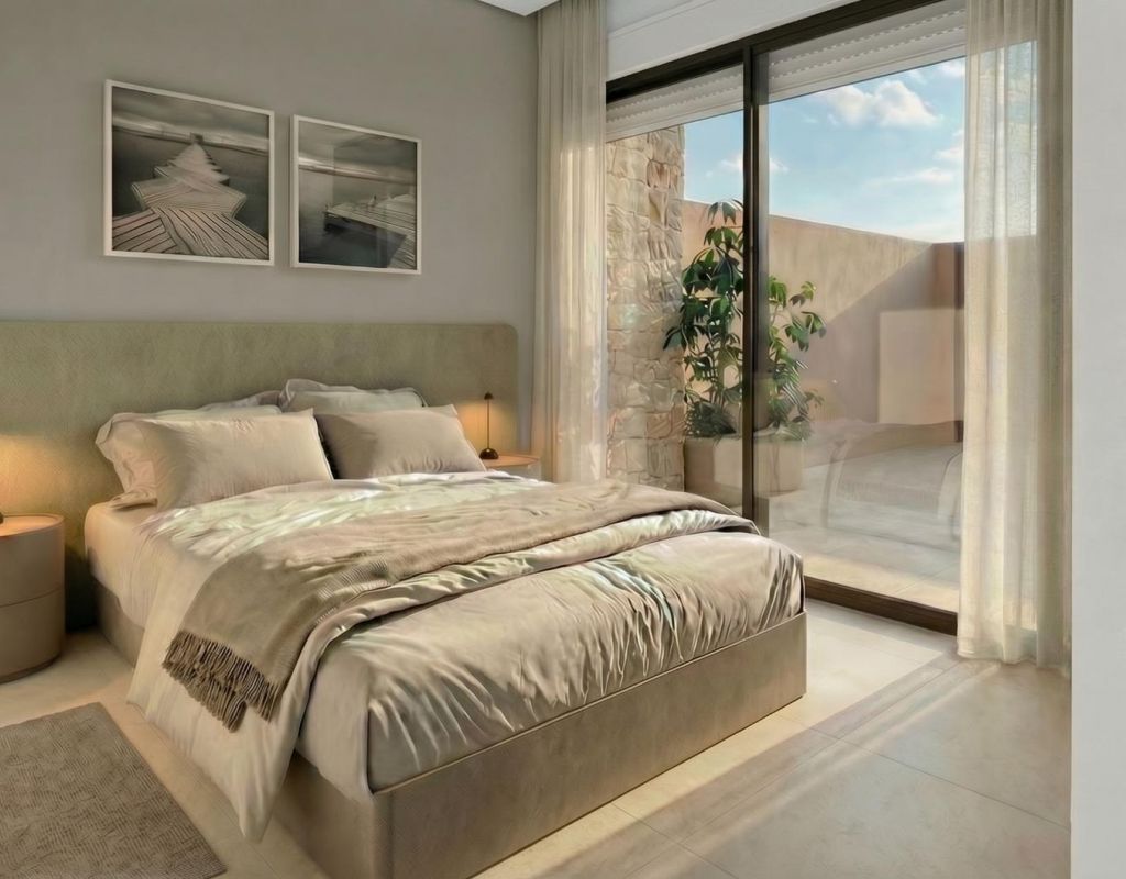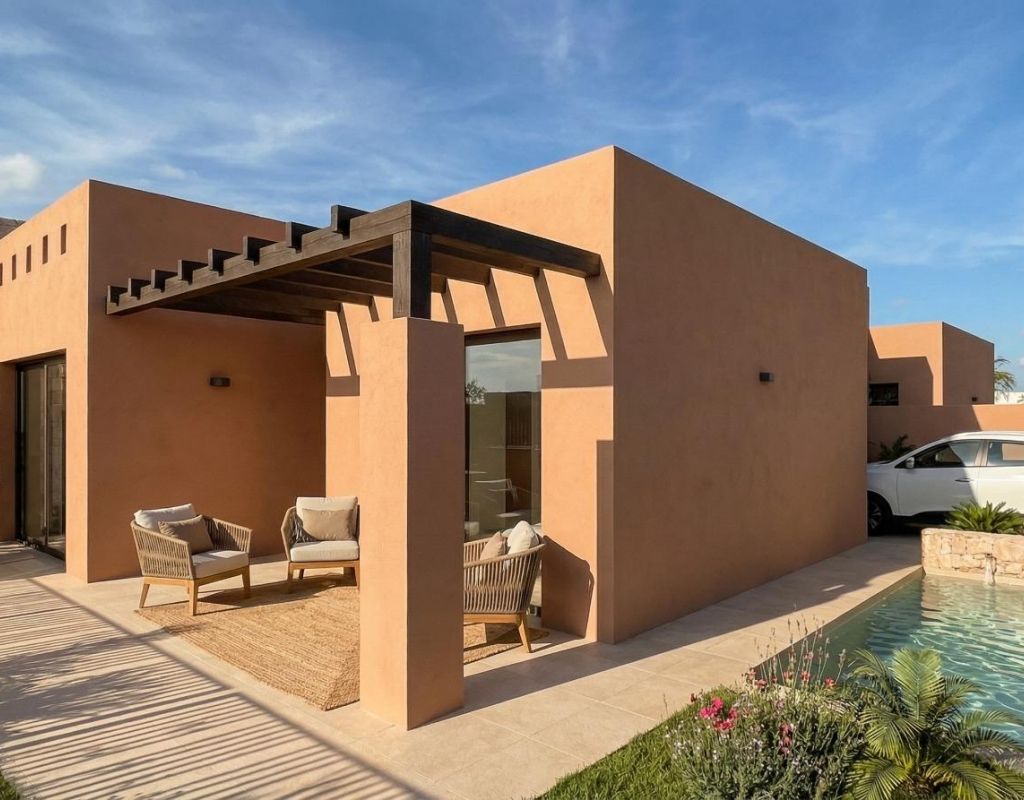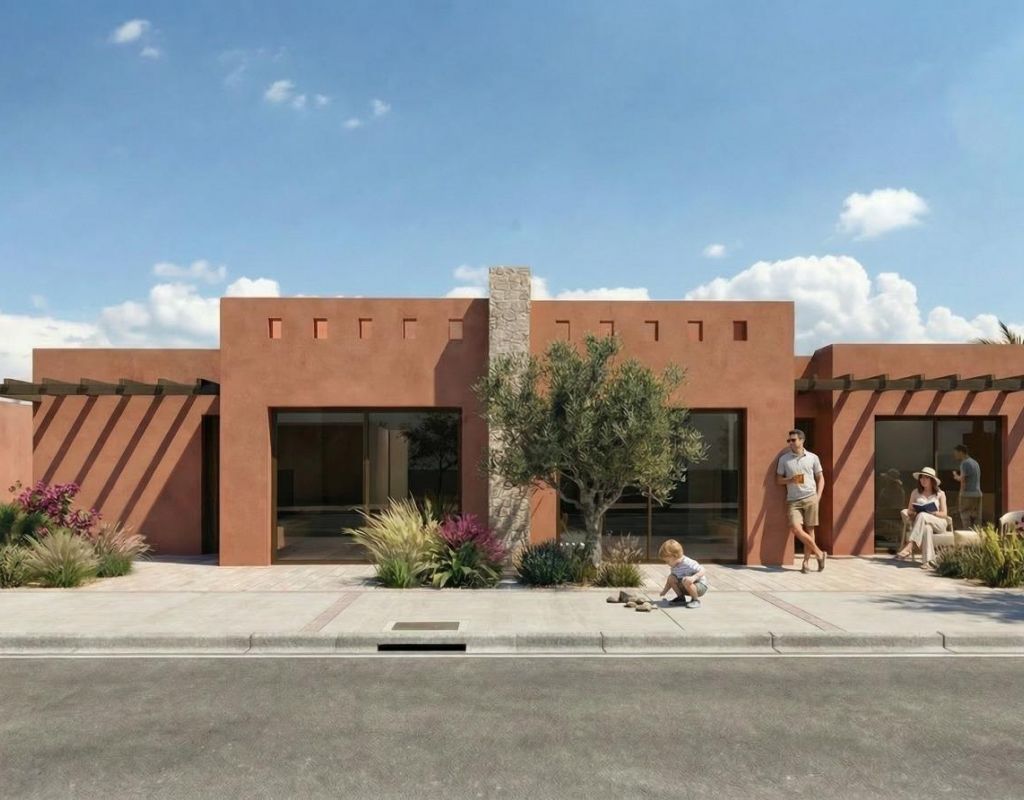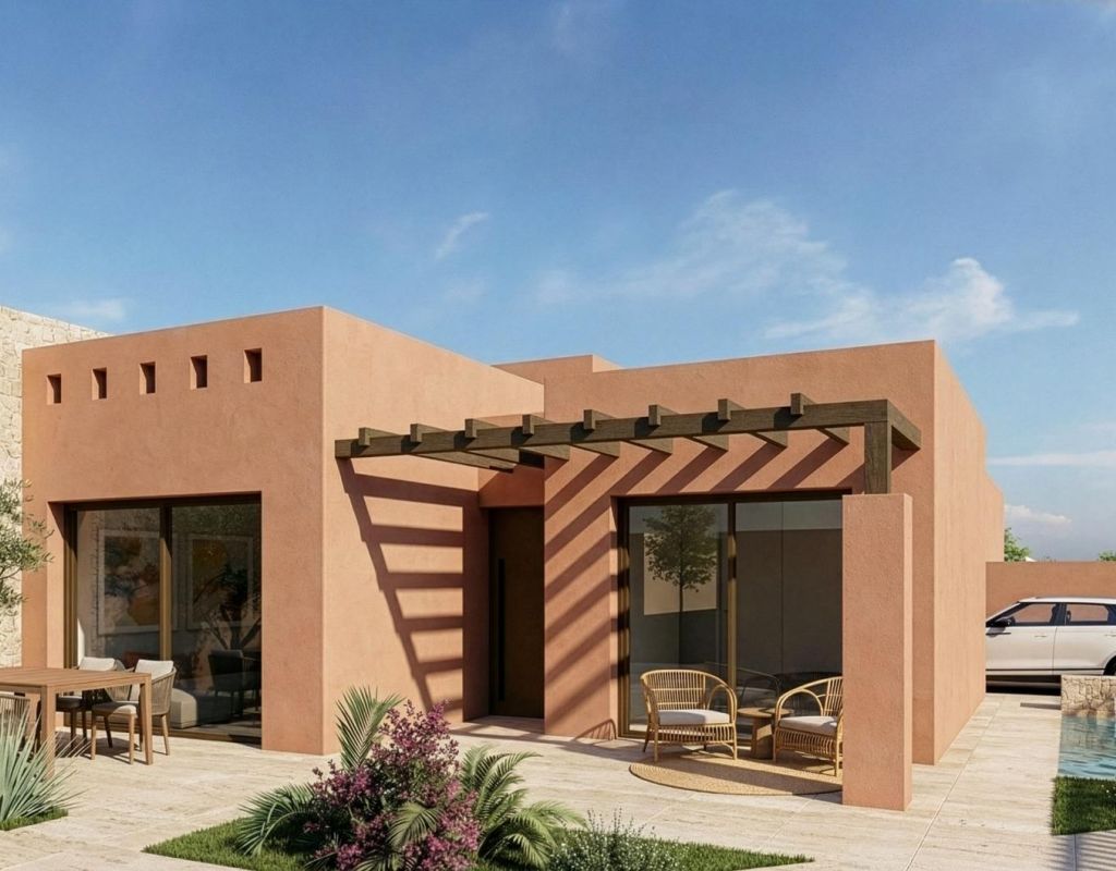Villas de nueva construcción en El Alba Mediterranean Resort, en Torre Pacheco Vida moderna en un entorno turístico en crecimiento Descubra esta exclusiva promoción de nueva construcción de solo 6 villas independientes y semiindependientes situadas en El Alba Mediterranean Resort, en Torre Pacheco, Murcia. Esta zona residencial emergente combina arquitectura moderna, instalaciones de ocio y un relajado estilo de vida mediterráneo. Situada entre el club de golf Terrazas de la Torre y la localidad de Roldán, la ubicación ofrece tranquilidad sin renunciar a la proximidad de todos los servicios esenciales, como supermercados, restaurantes, bares y bancos. Villas contemporáneas con espacio exterior privado Estas modernas villas se distribuyen en una sola plantas y disponen de 2 dormitorios y 2 baños, uno de ellos ensuite. Cada vivienda cuenta con una cocina y una sala de estar diáfanas, diseñadas para maximizar la luz natural y el confort. Las parcelas en esquina disponen de jardín privado con piscina y espacio para aparcar el coche. Los interiores son elegantes y funcionales, lo que hace que estas viviendas sean ideales para vivir de forma permanente, para uso vacacional o como inversión. Los dormitorios están equipados con armarios empotrados con cajones, y los baños se entregan totalmente equipados con muebles con espejo y mamparas de ducha. Especificaciones y acabados de alta calidad Todas las villas están construidas con un alto nivel de calidad, utilizando materiales y acabados de primera. Las cocinas están completamente amuebladas y equipadas con electrodomésticos, mientras que los acabados de Porcelanosa se utilizan en todas las cocinas, baños y azulejos, lo que añade un toque de lujo. Otras características adicionales son la carpintería exterior con rotura de puente térmico y doble acristalamiento, persianas motorizadas en los dormitorios y preinstalación de aire acondicionado por conductos. Instalaciones del complejo y servicios locales El Alba Mediterranean Resort ofrece una excelente gama de instalaciones comunes diseñadas para todas las edades. Los residentes pueden disfrutar de una casa club con restaurante y zona chill out, piscina comunitaria, bolera, pistas de pádel y zona de juegos para niños. Actualmente se está construyendo un pequeño centro comercial dentro del complejo, lo que añadirá más comodidad con tiendas y servicios cerca de casa. Excelente ubicación cerca de campos de golf, playas y aeropuertos El complejo está rodeado de varios campos de golf galardonados, lo que lo convierte en una opción atractiva para los amantes del golf. Las playas del Mar Menor están a unos 15 km y ofrecen aguas tranquilas y una amplia gama de deportes acuáticos. El aeropuerto internacional de Murcia está a solo 20 km, mientras que Cartagena está a unos 30 km y la ciudad de Murcia a unos 40 km. El aeropuerto de Alicante se encuentra a unos 90 km. El fácil acceso a la red de autopistas permite desplazarse de forma rápida y cómoda por toda la región. Su nuevo hogar en la Costa Cálida Estas villas de nueva construcción en El Alba Mediterranean Resort ofrecen una excelente relación calidad-precio, un diseño moderno y una ubicación estratégica cerca de campos de golf, playas y servicios. Póngase en contacto con nosotros hoy mismo para recibir más información o concertar una visita y asegurarse su lugar en esta nueva y emocionante promoción en Torre Pacheco.