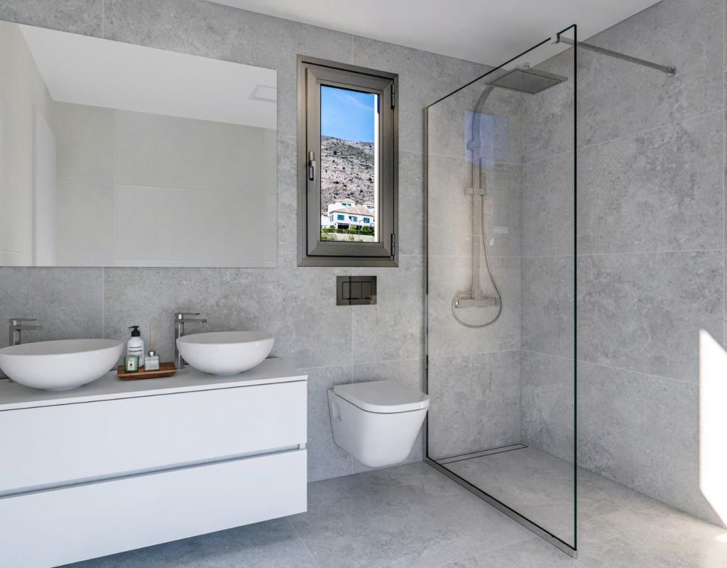 NIEUWBOUW VILLA'S IN FINESTRAT MET UITZICHT OP ZEE Nieuwbouw luxe villa's in Sierra Cortina, Finestrat. Villa's met 3 slaapkamers en 3 badkamers, open keuken met zithoek, terras met prachtig uitzicht over Benidorm, privétuin met zwembad en parkeerplaats. Villa's gebouwd met materialen van topkwaliteit. Finestrat ligt in de regio Marina Baixa aan de Costa Blanca, vlakbij het naburige Benidorm en op ongeveer 40 kilometer van de stad Alicante en de internationale luchthaven. Het dorp ligt op de berghelling van Puig Campana en biedt prachtig uitzicht op de bergen, de kust en de Middellandse Zee. Benidorm ligt op slechts vijf minuten rijden van de woningen en biedt alle voorzieningen die je nodig hebt, zoals winkels, bars, restaurants, supermarkten, banken, apotheken en verschillende internationale privéscholen.