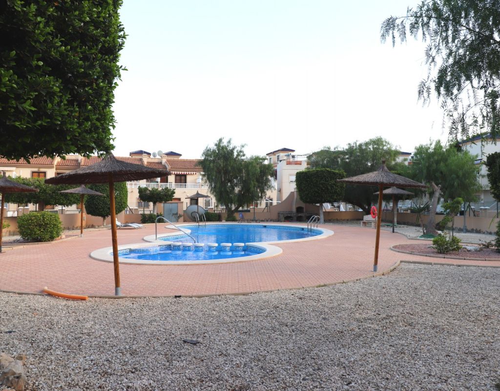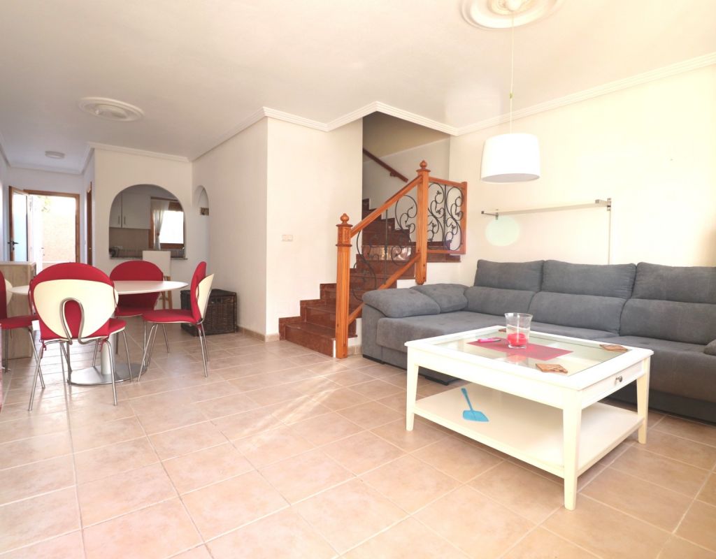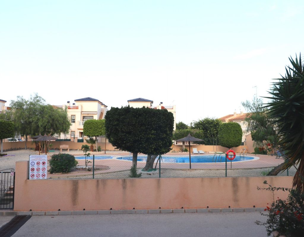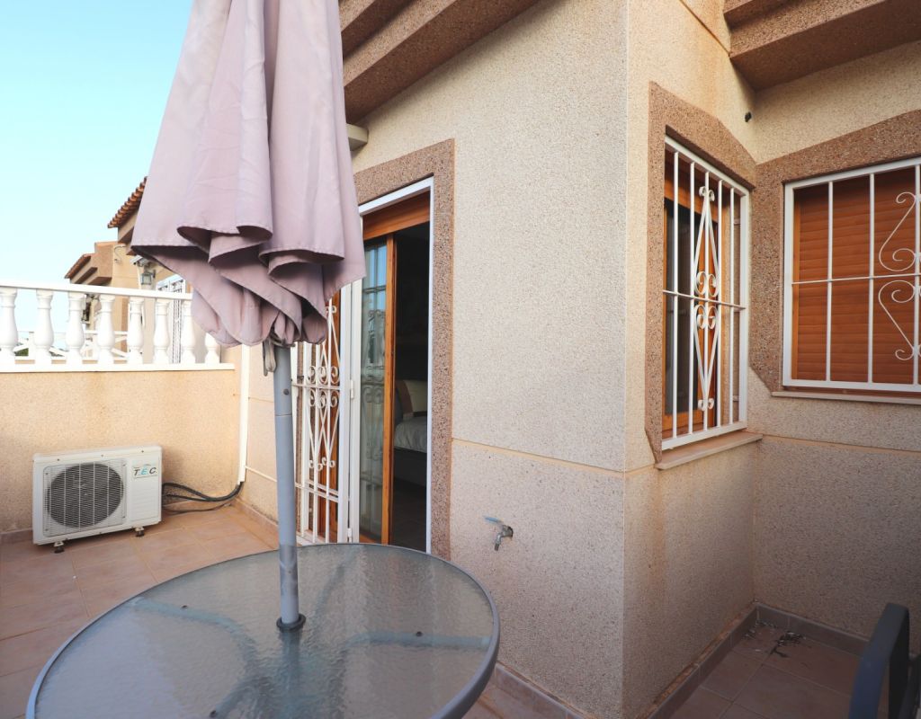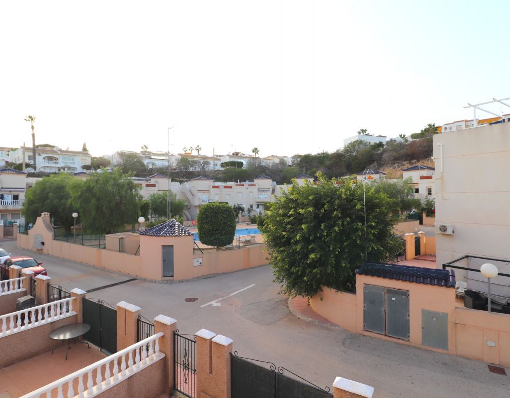 Dit op het westen gelegen, twee slaapkamer, herenhuis in La Marquesa, ligt op slechts 5 minuten lopen van een algemene winkel en een paar café's en restaurants. Een paar minuten met de auto brengt u naar de golfbaan van La Marquesa, terwijl de bruisende hoofdstraat Quesada op slechts 5 minuten afstand ligt. De prachtige stranden van de Costa Blanca Zuid liggen op slechts 15 minuten rijden, waardoor dit een perfect gelegen woning is. Met een bebouwing van 87 m2 profiteert het herenhuis van toegang aan de voor- en achterkant. De begane grond beschikt over een ruime woonkamer met een trap naar de eerste verdieping, een aparte ingerichte keuken, een garderobe en een bijkeuken. Boven zijn twee tweepersoonsslaapkamers, waaronder een hoofdslaapkamer met een terras met uitzicht op het gemeenschappelijke zwembad, plus een familiebadkamer. De onderhoudsarme betegelde tuinen aan de voor- en achterkant bieden voldoende buitenruimte, met parkeergelegenheid buiten de weg inbegrepen. Extra voorzieningen zijn onder meer airconditioning, waardoor deze woning een comfortabele en praktische keuze is. Op een goede locatie en met een goede grootte, is dit herenhuis ideaal voor een vakantiehuis of permanente bewoning.