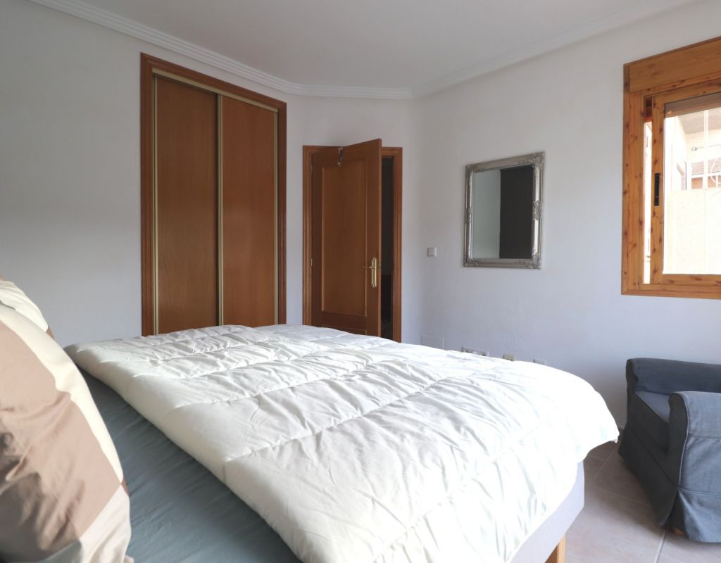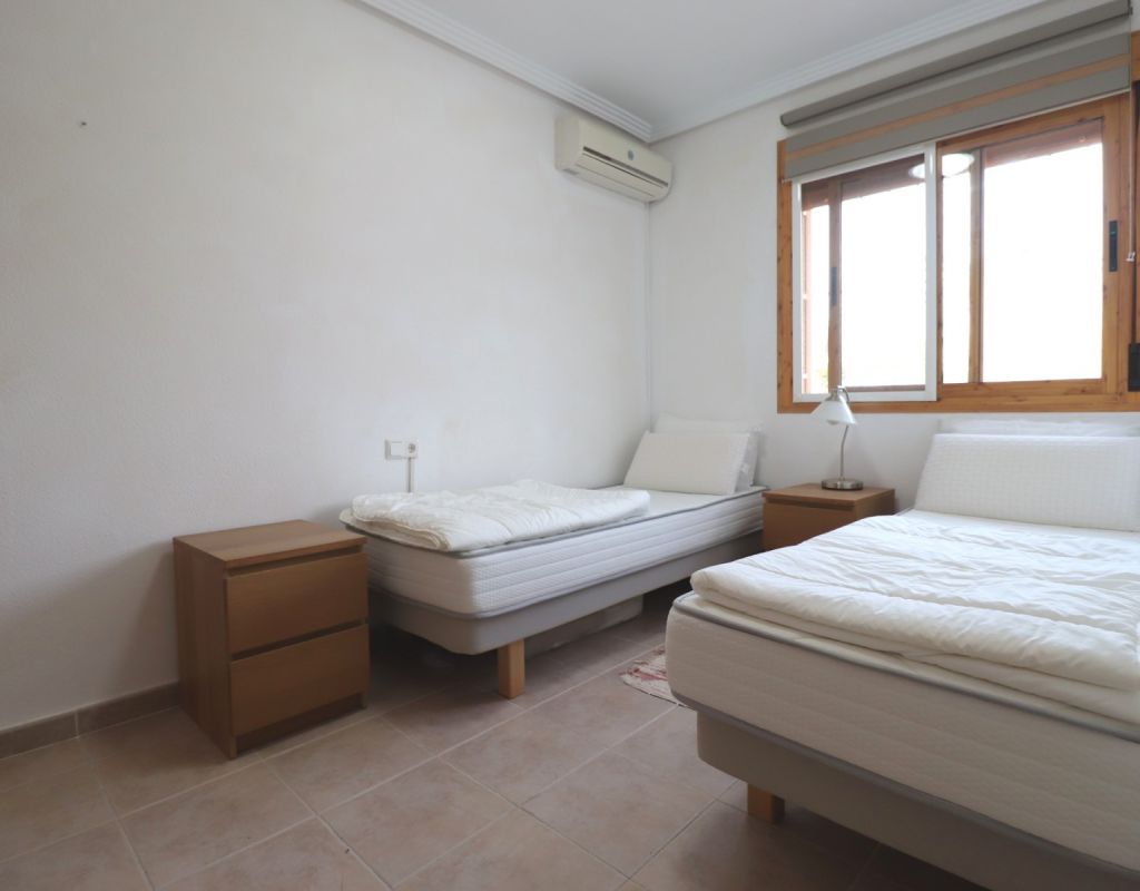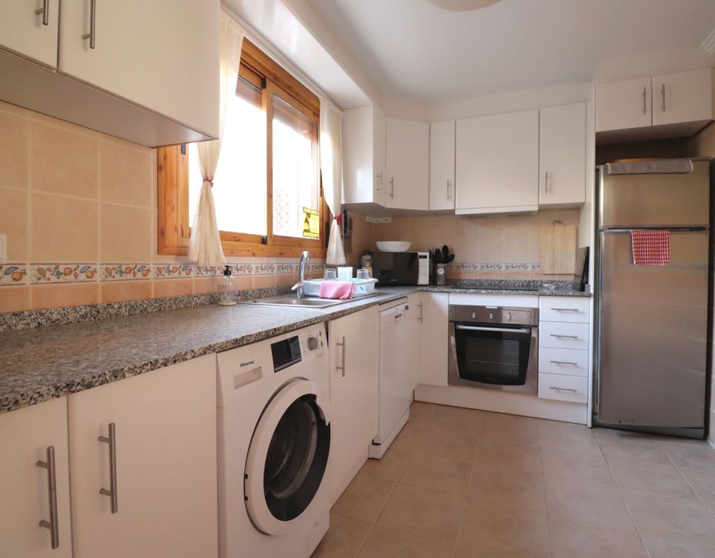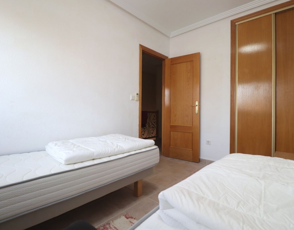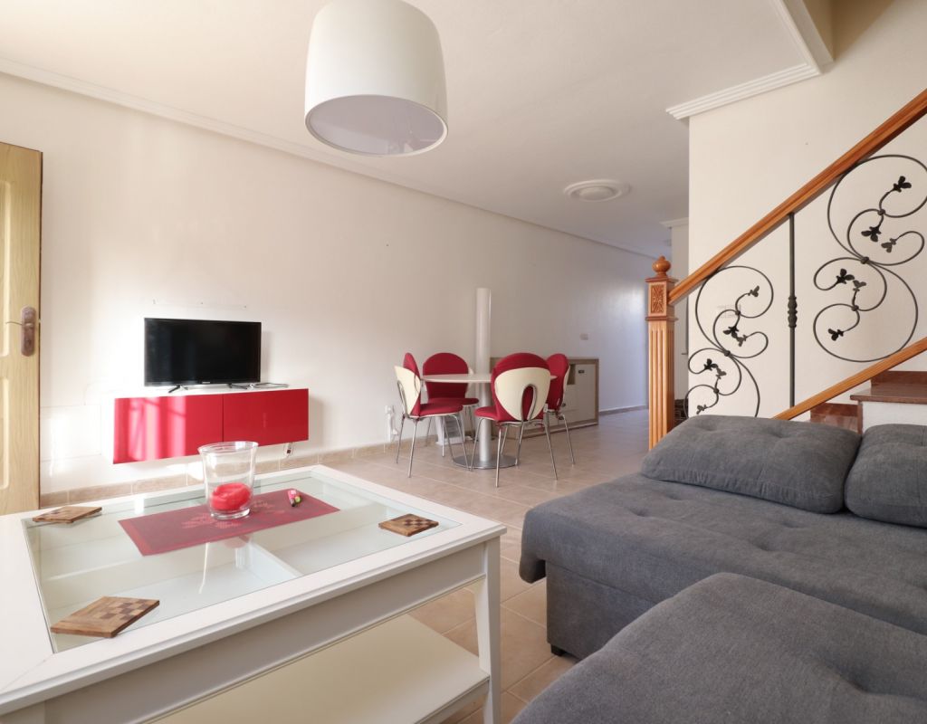 Dit op het westen gelegen, twee slaapkamer, herenhuis in La Marquesa, ligt op slechts 5 minuten lopen van een algemene winkel en een paar café's en restaurants. Een paar minuten met de auto brengt u naar de golfbaan van La Marquesa, terwijl de bruisende hoofdstraat Quesada op slechts 5 minuten afstand ligt. De prachtige stranden van de Costa Blanca Zuid liggen op slechts 15 minuten rijden, waardoor dit een perfect gelegen woning is. Met een bebouwing van 87 m2 profiteert het herenhuis van toegang aan de voor- en achterkant. De begane grond beschikt over een ruime woonkamer met een trap naar de eerste verdieping, een aparte ingerichte keuken, een garderobe en een bijkeuken. Boven zijn twee tweepersoonsslaapkamers, waaronder een hoofdslaapkamer met een terras met uitzicht op het gemeenschappelijke zwembad, plus een familiebadkamer. De onderhoudsarme betegelde tuinen aan de voor- en achterkant bieden voldoende buitenruimte, met parkeergelegenheid buiten de weg inbegrepen. Extra voorzieningen zijn onder meer airconditioning, waardoor deze woning een comfortabele en praktische keuze is. Op een goede locatie en met een goede grootte, is dit herenhuis ideaal voor een vakantiehuis of permanente bewoning.