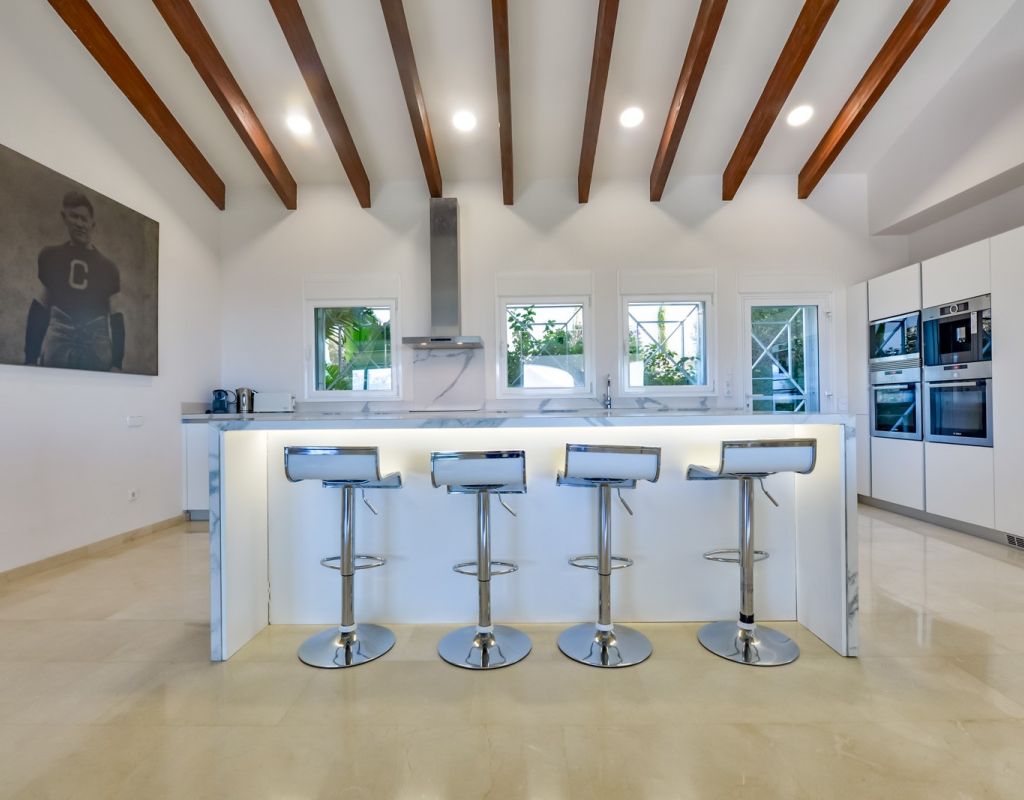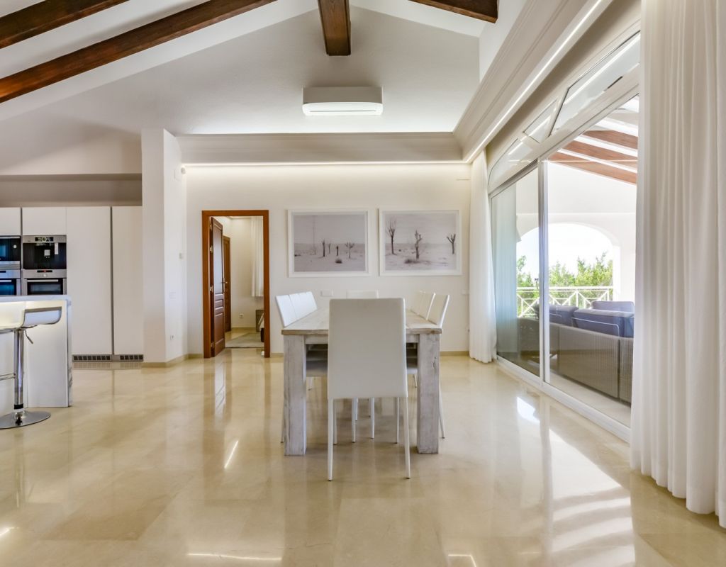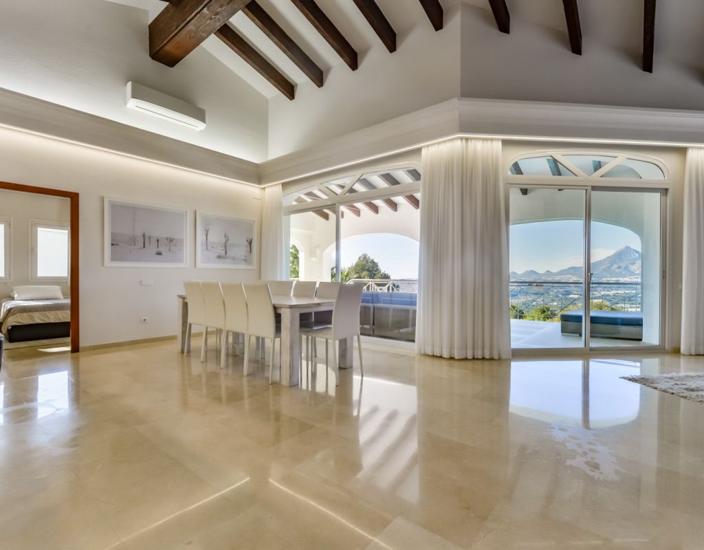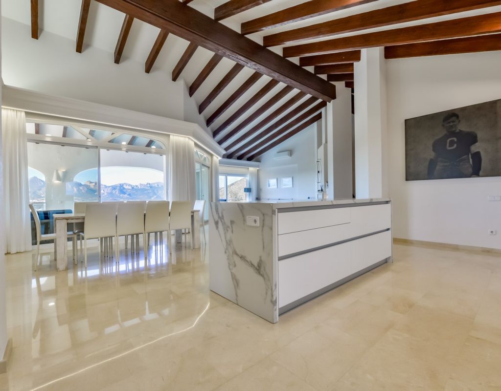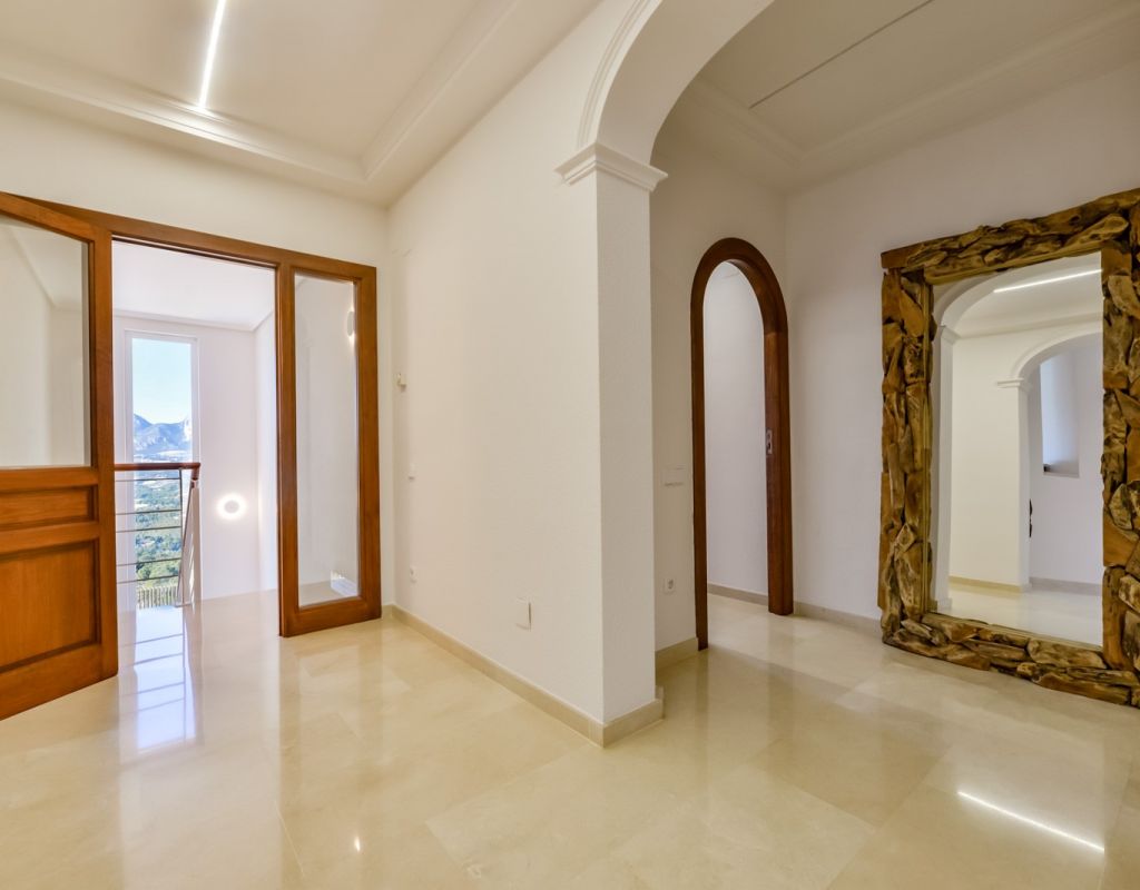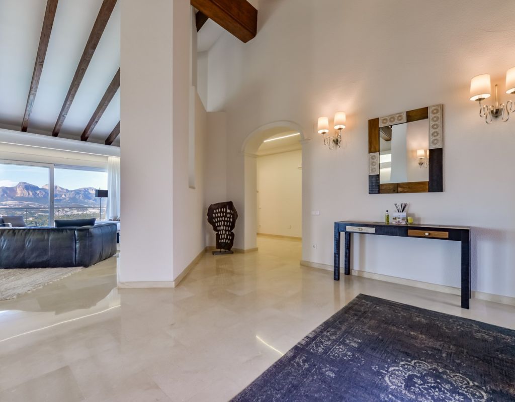 Genesteld in het prestigieuze Sierra de Altea, herdefinieert deze luxe villa exclusiviteit en comfort. Vanaf het eerste moment omhult haar majesteit en ontwerp je, waarbij de mediterrane charme perfect wordt gecombineerd met een verfijnde, eigentijdse stijl. Privélocatie, absolute privacySlechts 6 minuten van de stranden en de golfbaan, en dichtbij het centrum van Altea, biedt dit 920 m² grote huis op een perceel van 2.440 m² de perfecte combinatie van rust en toegang tot de beste voorzieningen van de Costa Blanca. Een woning ontworpen om van te genietenBij binnenkomst in de elegante hal verwelkomt een massief houten deur je in een lichte, open ruimte. De indrukwekkende woonkamer met open haard, de eetkamer en de designkeuken met eiland vormen de ideale setting voor entertainment en gezelligheid. Vanuit elke hoek omlijsten de grote ramen het uitzonderlijke uitzicht op zee over de Baai van Altea en de majestueuze Sierra Helada, waardoor het landschap verandert in een natuurlijk kunstwerk. De hoge plafonds met houten balken, de fijne materialen en de harmonie van elk detail weerspiegelen luxe op zijn best. Exclusiviteit op elk niveauDe hoofdslaapkamer biedt zeezicht, ingebouwde kasten en een en-suite badkamer met douche, bad en dubbele wastafel. Twee en-suite slaapkamers, elk met een eigen badkamer. Op de benedenverdieping vindt u een tweede woonkamer, eetkamer en open keuken, perfect voor gasten. Een fitnessruimte, berging en een afgesloten garage voor drie voertuigen. Een villa ontworpen voor privacy en comfortDankzij de geoptimaliseerde indeling is deze villa ideaal voor grote gezinnen of voor wie van entertainment houdt, met ruimtes die zijn ontworpen voor intimiteit en comfort. Buiten omringt een perfect aangelegde en verzorgde tuin het pand, met een grote verscheidenheid aan bloemen en volwassen bomen die frisheid en exclusiviteit bieden. Direct tegenover een serene vijver met exotische vissen ligt het extra juweel van deze woning: Gastenverblijf met een Marokkaanse essentieEen zelfstandige oase met een evocatief ontwerp, een privétuin en onovertroffen zeezicht. Volledig uitgerust met airconditioning, kabel-tv, glasvezelinternet en een verbonden beveiligingssysteem. Wilt u een andere luxe villa bouwen?Het gastenverblijf bevindt zich op een apart perceel, wat de mogelijkheid biedt om in de toekomst een andere luxe villa op dezelfde locatie te bouwen. Meer dan een woning, een levensstijlWoon op een plek waar privacy, comfort en natuurlijke schoonheid perfect samensmelten.