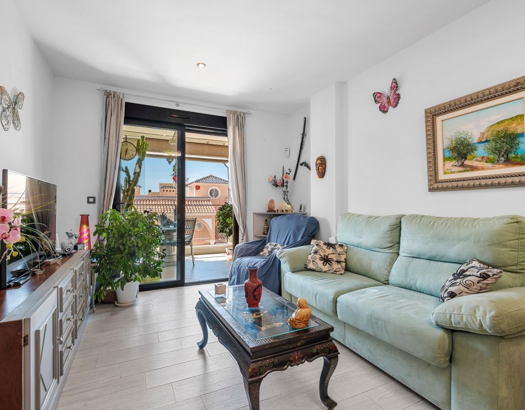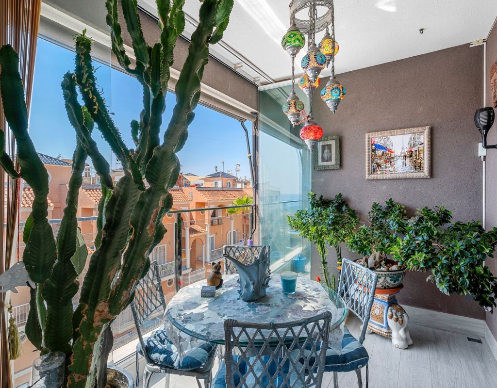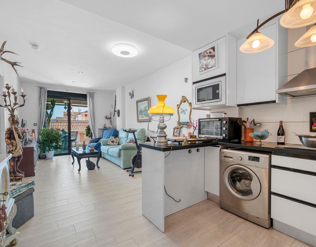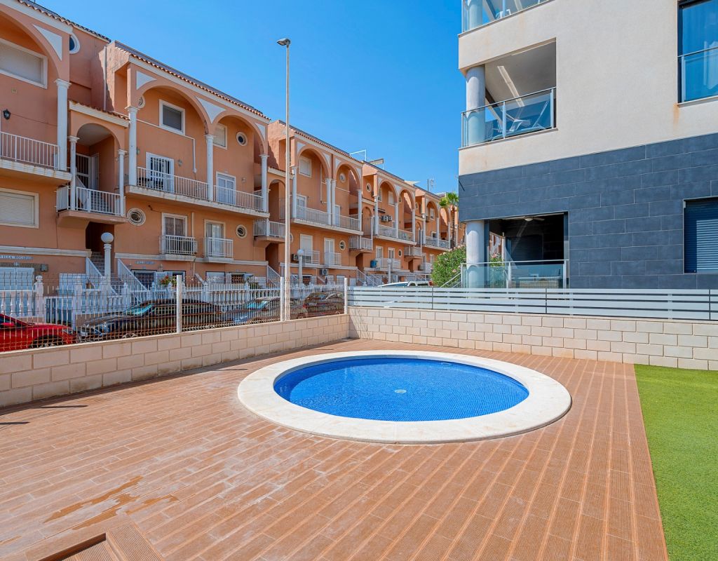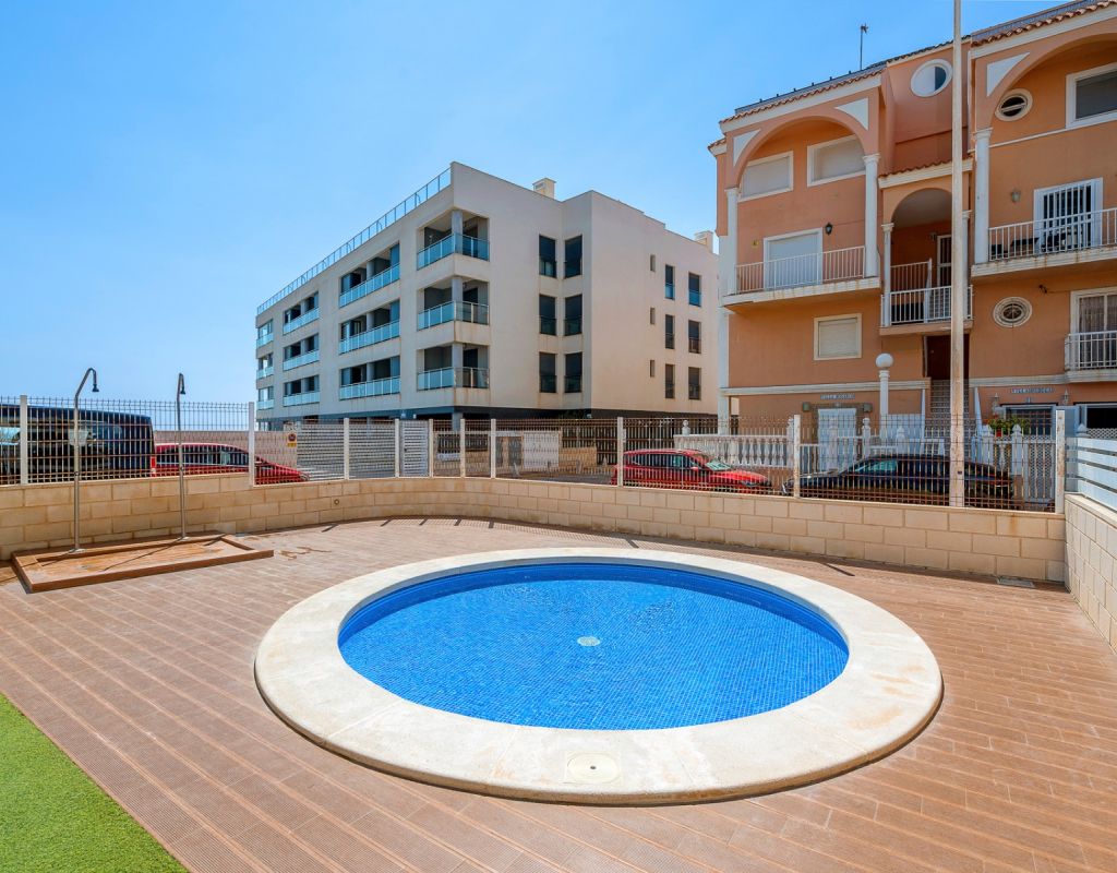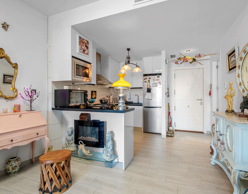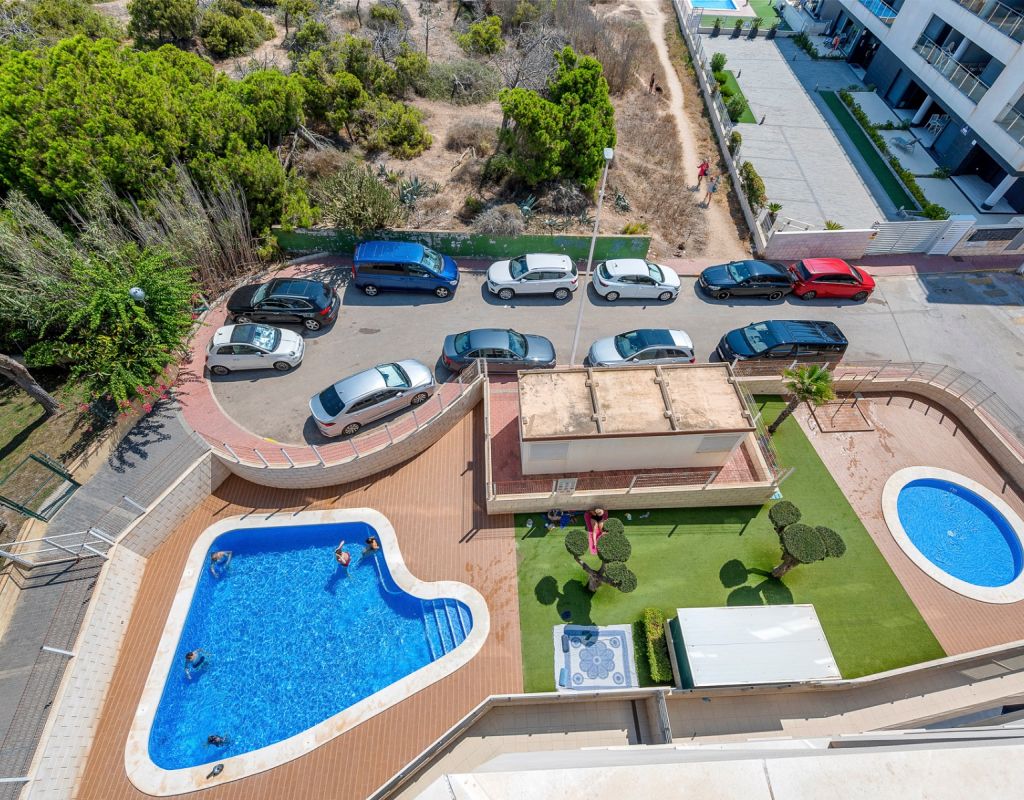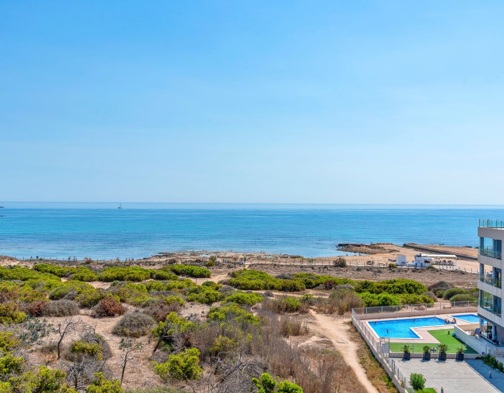 Dit penthouse met één slaapkamer en twee badkamers heeft een comfortabele en functionele indeling, ideaal als permanente woning, vakantieverblijf of investering. De lichte woonkamer heeft toegang tot een doorlopend balkon. De hoofdslaapkamer beschikt eveneens over een eigen balkon, gescheiden door een schuifbare glazen wand die indien gewenst één groot buitenterras kan vormen. De open keuken sluit aan op de eetruimte en entree. De hoofdslaapkamer heeft een en-suite badkamer en er is ook een apart gastenbadkamer. Het complex biedt twee gemeenschappelijke zwembaden en de woning beschikt over een privé garage. Gelegen in La Mata, Torrevieja, dichtbij alle voorzieningen, openbaar vervoer en de stranden van de Costa Blanca.
