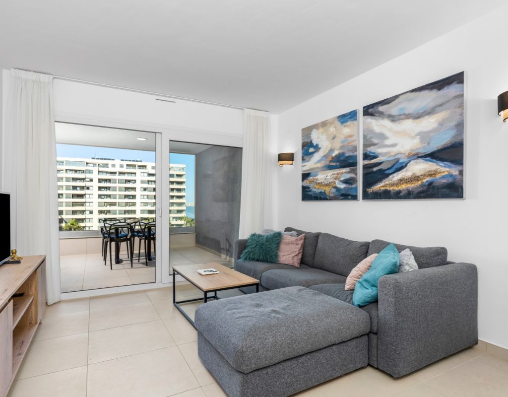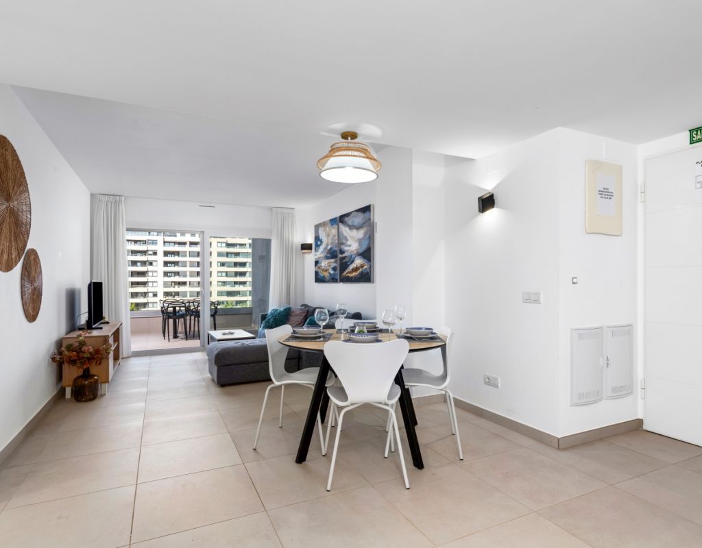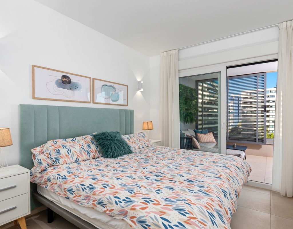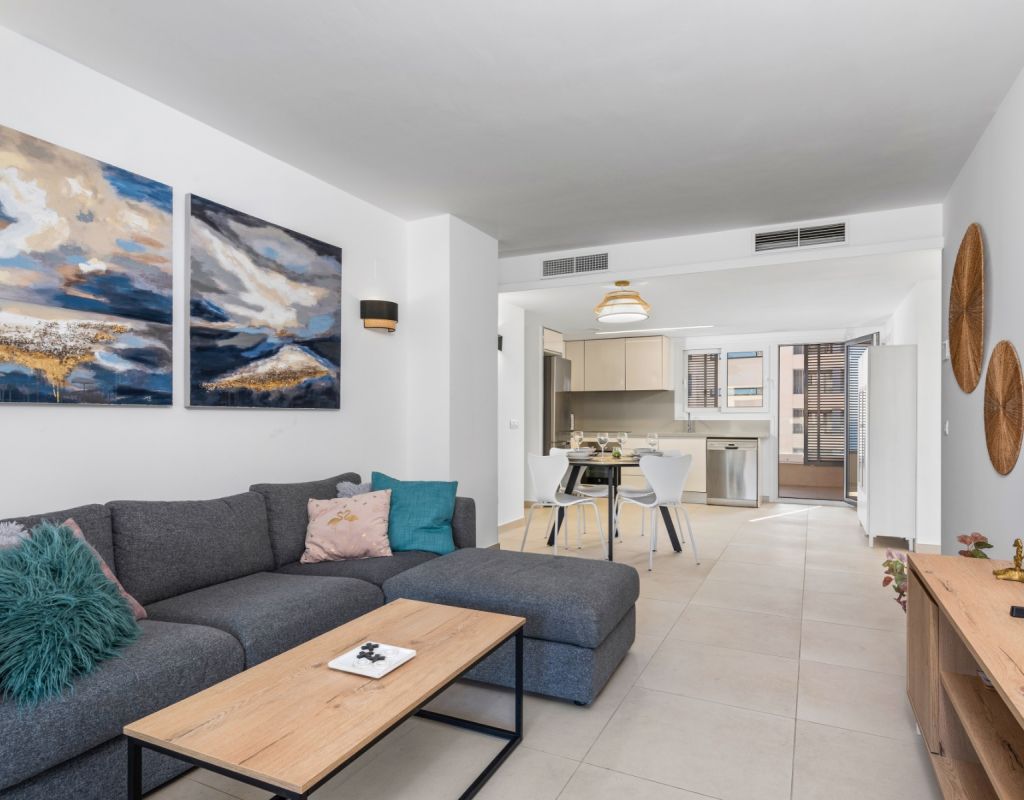 Welkom in dit ruime en goed ontworpen appartement met twee slaapkamers en twee badkamers, gelegen in het gewilde Residential Panorama Park, gebouwd in 2020. Dit huis biedt de perfecte mix van comfort, stijl en gemak, ideaal voor wie op zoek is naar een modern toevluchtsoord aan de kust. Bij binnenkomst valt de open leef- en eetruimte op, ideaal om te ontspannen of gasten te ontvangen. Grote schuifdeuren leiden naar een royaal balkon op het noorden, dat veel natuurlijk licht binnenlaat en een adembenemend uitzicht op zee biedt. De keuken is efficiënt ontworpen met moderne apparatuur, voldoende werkbladruimte en een handige verbinding met de eetkamer, wat koken en entertainen gemakkelijk maakt. Daarnaast is er een tweede balkon op het zuiden, toegankelijk vanuit de keuken, wat zorgt voor een lichte en luchtige sfeer in het hele appartement. De hoofdslaapkamer is een privé toevluchtsoord met een en-suite badkamer en directe toegang tot het grote balkon, perfect om te genieten van een kop koffie in de ochtend of een zonsondergang in de avond. Een tweede goed bemeten slaapkamer bevindt zich aan de andere kant van de woning, wat privacy en flexibiliteit biedt voor gasten, familieleden of een thuiskantoor. Daarnaast is er nog een volledige badkamer voor extra gemak en comfort. Bij de woning hoort ook een ondergrondse parkeerplaats en een privé berging, wat extra praktisch is. Het Panorama Park-complex beschikt over drie zwembaden, waarvan één verwarmd is, wat het hele jaar door plezier biedt.