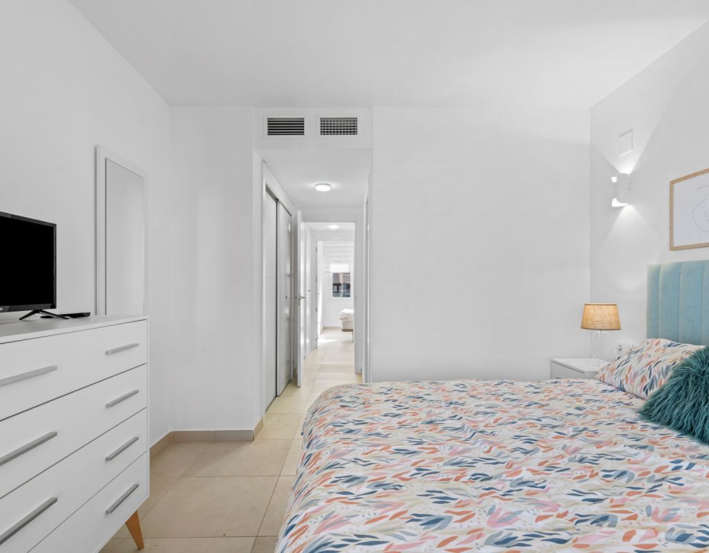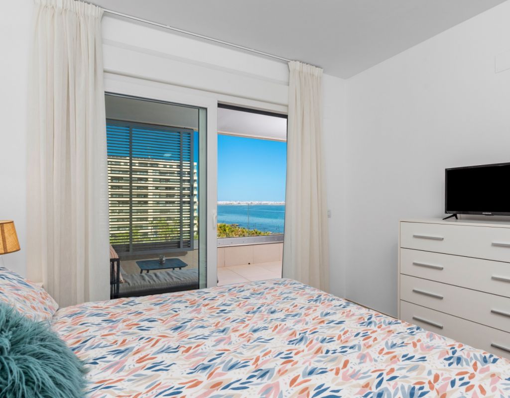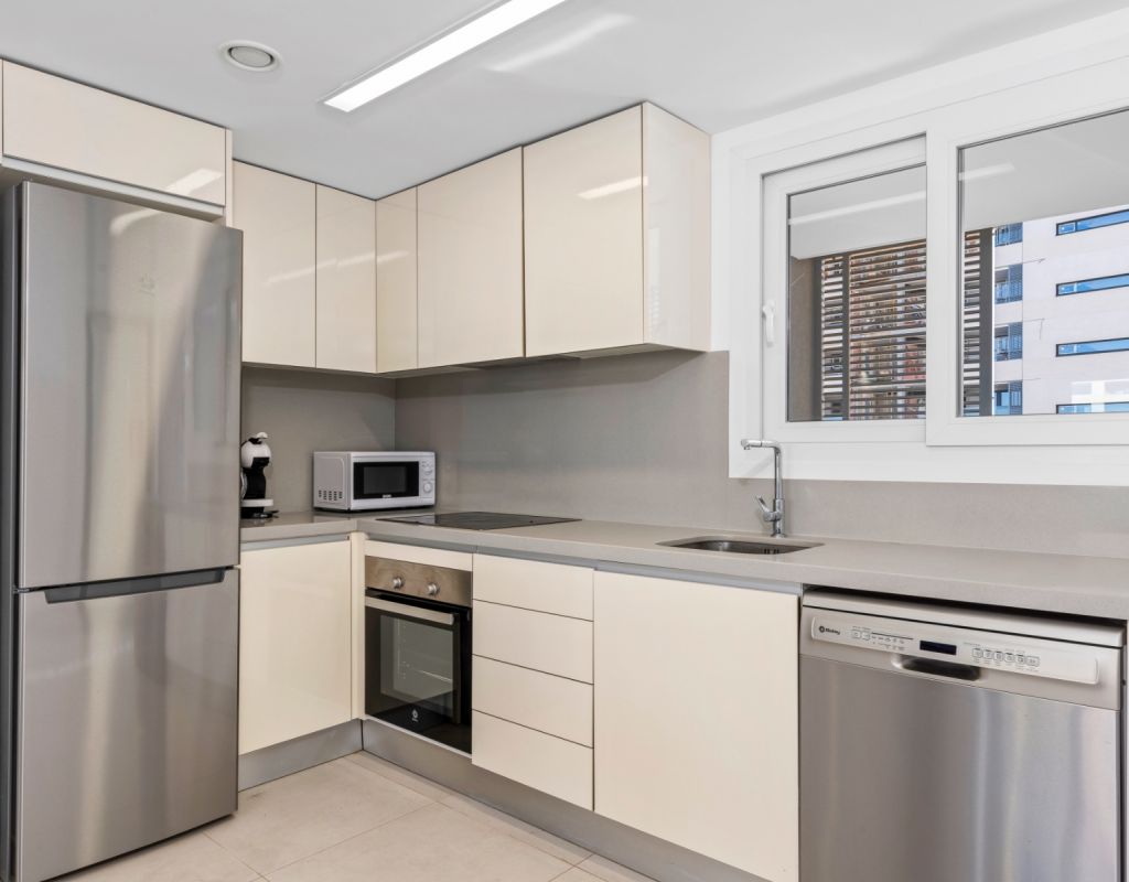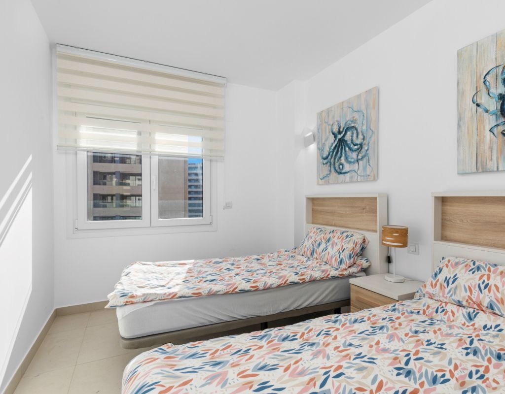 Welkom in dit ruime en goed ontworpen appartement met twee slaapkamers en twee badkamers, gelegen in het gewilde Residential Panorama Park, gebouwd in 2020. Dit huis biedt de perfecte mix van comfort, stijl en gemak, ideaal voor wie op zoek is naar een modern toevluchtsoord aan de kust. Bij binnenkomst valt de open leef- en eetruimte op, ideaal om te ontspannen of gasten te ontvangen. Grote schuifdeuren leiden naar een royaal balkon op het noorden, dat veel natuurlijk licht binnenlaat en een adembenemend uitzicht op zee biedt. De keuken is efficiënt ontworpen met moderne apparatuur, voldoende werkbladruimte en een handige verbinding met de eetkamer, wat koken en entertainen gemakkelijk maakt. Daarnaast is er een tweede balkon op het zuiden, toegankelijk vanuit de keuken, wat zorgt voor een lichte en luchtige sfeer in het hele appartement. De hoofdslaapkamer is een privé toevluchtsoord met een en-suite badkamer en directe toegang tot het grote balkon, perfect om te genieten van een kop koffie in de ochtend of een zonsondergang in de avond. Een tweede goed bemeten slaapkamer bevindt zich aan de andere kant van de woning, wat privacy en flexibiliteit biedt voor gasten, familieleden of een thuiskantoor. Daarnaast is er nog een volledige badkamer voor extra gemak en comfort. Bij de woning hoort ook een ondergrondse parkeerplaats en een privé berging, wat extra praktisch is. Het Panorama Park-complex beschikt over drie zwembaden, waarvan één verwarmd is, wat het hele jaar door plezier biedt.