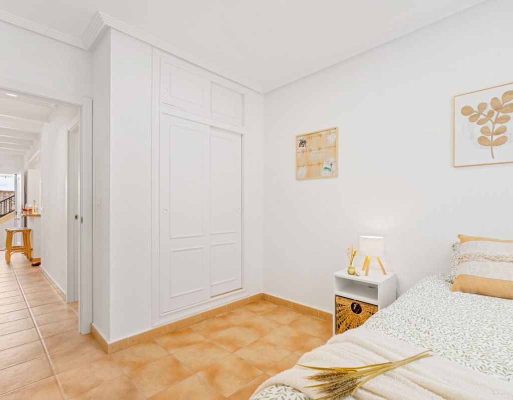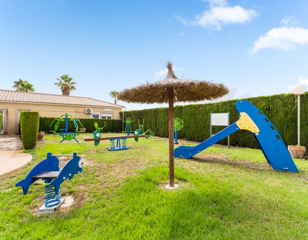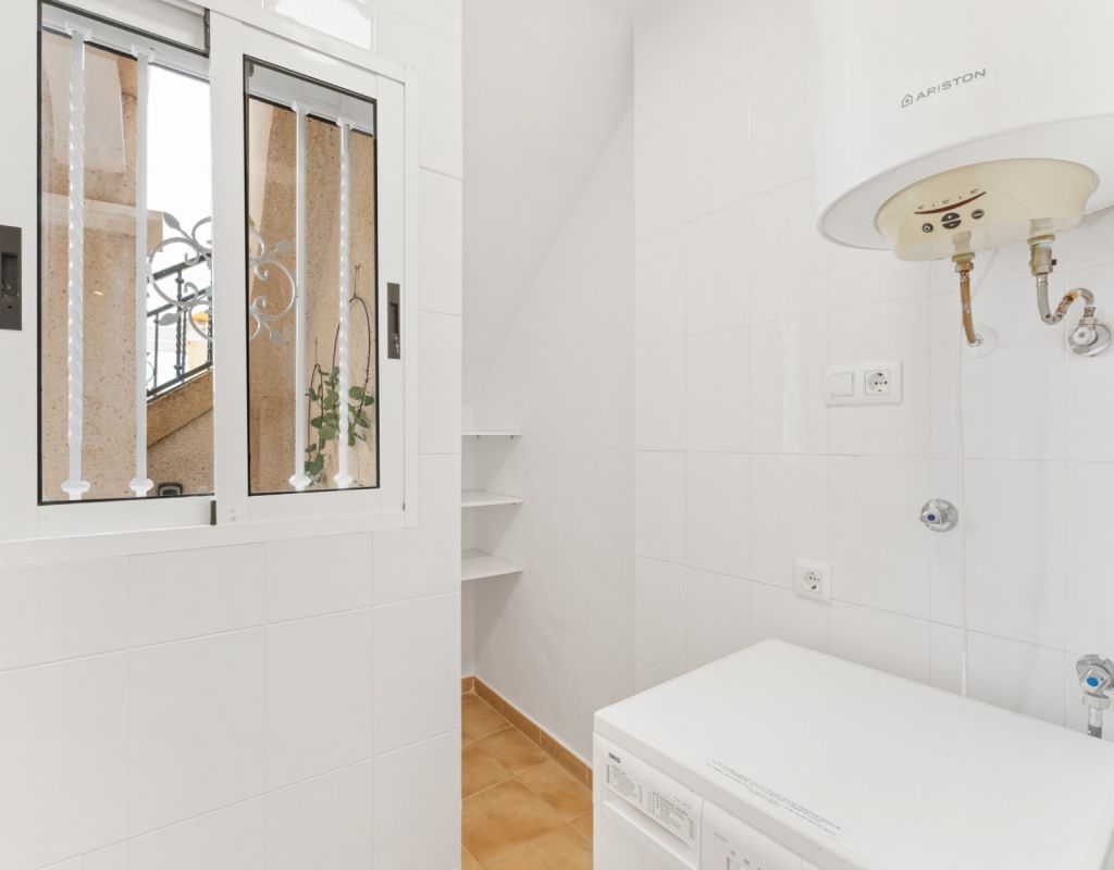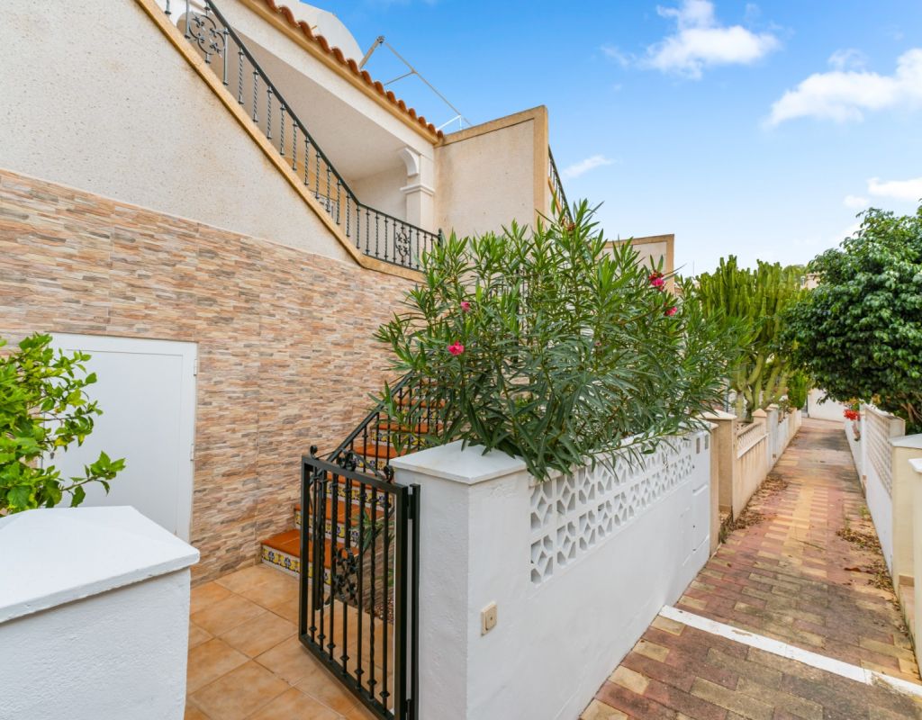Deze gerenoveerde bungalow met twee slaapkamers en een zuidgerichte ligging in Villamartin is gelegen in een zeer gewilde wijk, op korte afstand van alle voorzieningen, waaronder cafés, restaurants en een supermarkt op slechts 2 minuten rijden. De prachtige stranden liggen op slechts 10 minuten rijden, evenals het winkelcentrum La Zenia Boulevard. Daarnaast zijn er drie fantastische golfbanen binnen 5 tot 10 minuten rijden. De woning beschikt over zowel een voor- als achtertuin, ideaal om buiten te eten en te ontspannen in de zon. Binnen vindt u een lichte en gezellige woon-/eetkamer, een open keuken met een ontbijtbar en een aangrenzende bijkeuken voor extra gemak. Beide slaapkamers zijn voorzien van inbouwkasten en er is een goed uitgeruste familiebadkamer. De woning profiteert ook van een prachtig uitzicht over de gemeenschappelijke tuinen. Een privésolarium met kunstgras biedt een heerlijke zithoek om te genieten van de zon en het mediterrane klimaat. De aantrekkelijke gemeenschap beschikt over uitstekende faciliteiten, waaronder een prachtig gemeenschappelijk zwembad met een grasveld, een speeltuin, een gemeenschappelijke bibliotheek en gemeenschappelijke toiletten. Er is ook parkeergelegenheid buiten de weg.Deze bungalow heeft een perfecte ligging aan de Costa Blanca Zuid en combineert comfort, stijl en een heerlijk ontspannen mediterrane levensstijl.