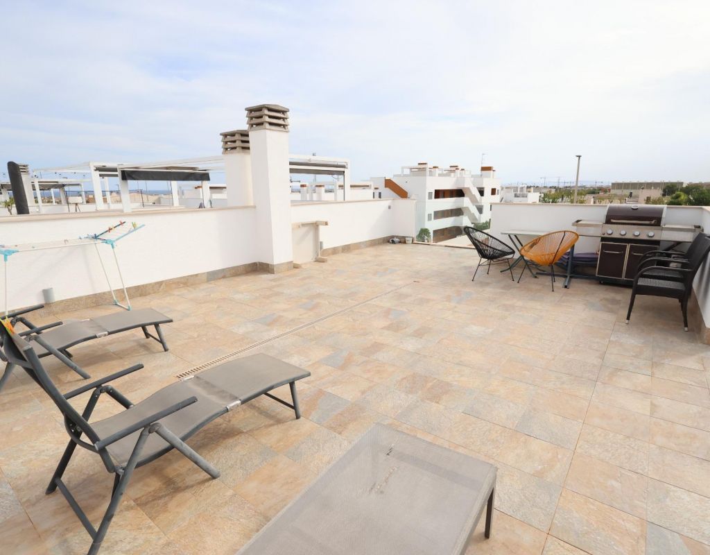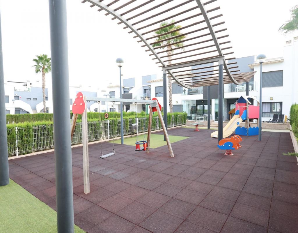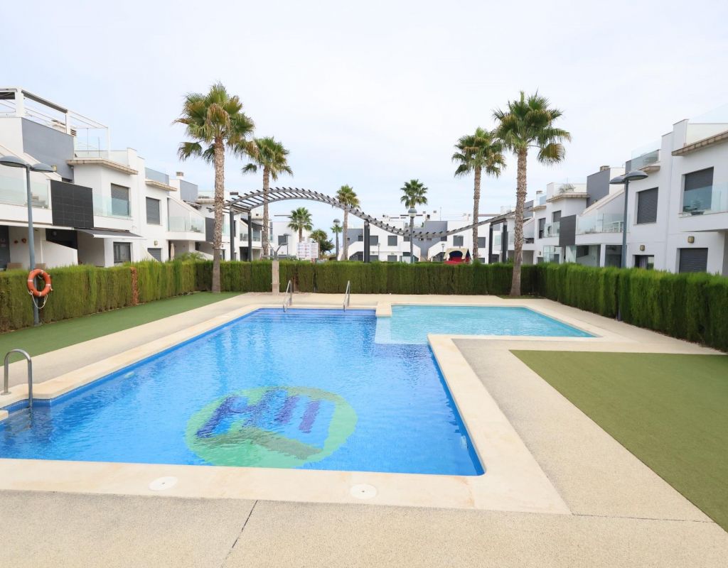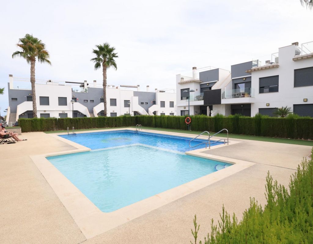 Pilar de la Horadada Bungalow op de bovenste verdieping in Residencial Lamar Resort. . Lichte bungalow van 70 m2 met een zuidelijke ligging, gelegen in een moderne, beveiligde woonwijk. De woning beschikt over 2 slaapkamers, 2 badkamers, een open keuken, een woon-/eetkamer, een terras en een groot privé zonneterras, ideaal om het hele jaar door van de zon te genieten.. . Het complex beschikt over 2 grote gemeenschappelijke zwembaden, een kindergedeelte en een parkeerplaats inbegrepen.. Wordt volledig gemeubileerd en voorzien van airconditioning verkocht.. Perfect als vakantiehuis en om het hele jaar door te wonen.