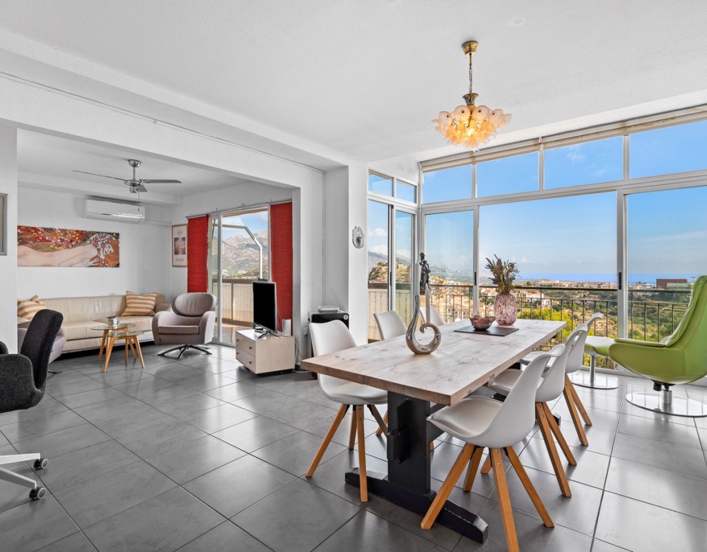Licht, rust en eindeloze mediterrane uitzichten. Dit zonnige appartement op de 5e verdieping biedt een prachtig panoramisch zicht op de zee, de bergen en het charmante dorpje Polop. Geniet van lange ochtenden op het terras en warme avonden met een zachte zeebries. Belangrijkste kenmerken 2 slaapkamers (mogelijkheid voor een 3e) Terras met vrij uitzicht op zee en bergen Vloerverwarming in de badkamer + dubbele beglazing Airconditioning / warmtepomp (geplaatst 2 jaar geleden) Moderne keuken en vernieuwde badkamer Wordt grotendeels gemeubileerd verkocht (auto optioneel) Buitenruimtes & omgeving Groot gedeeld zwembad (ca. 3 m diep) Garage inbegrepen (kan worden omgebouwd tot gastenkamer) Natuur, wandelroutes en authentieke dorpjes in de buurt Loopafstand naar Michelin-restaurant, cafés en supermarkt Praktische info Huidige VvE-kosten: ~840 €/jaar Verwacht vanaf 2026: ~400 €/jaar (dankzij antenne-inkomsten) Extra kosten: elektriciteit, water, belasting, internet Mild klimaat het hele jaar door – ideaal voor wonen of verhuur Contact Neem contact met ons op en ontdek deze unieke woning — het mooiste uitzicht ervaart u in het echt.