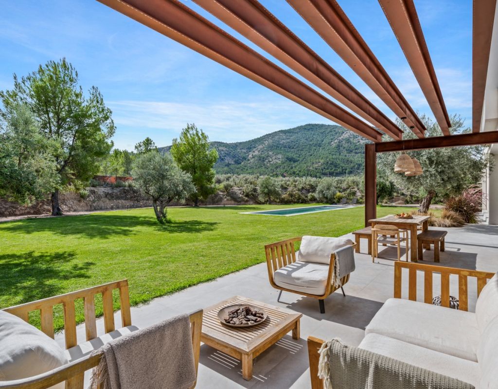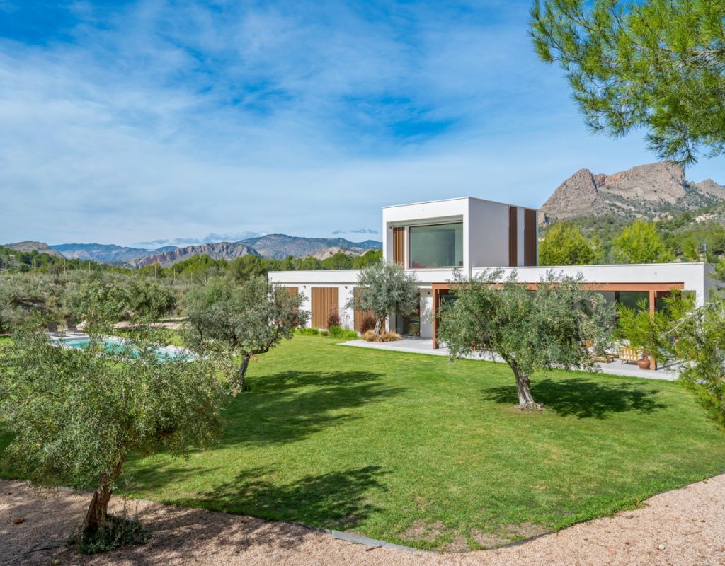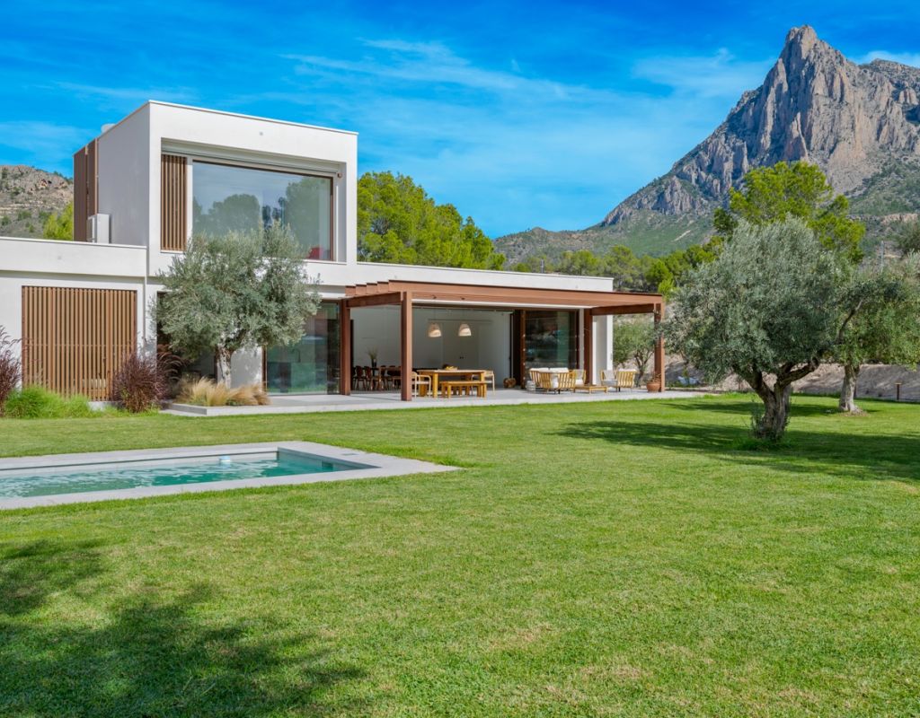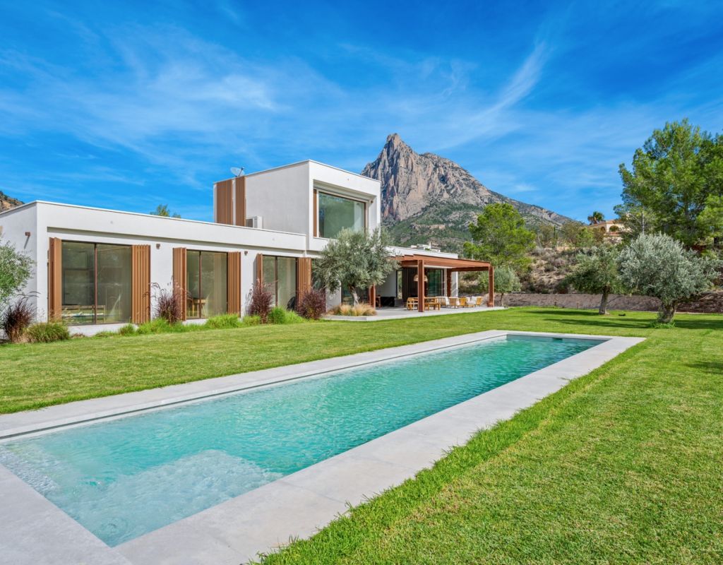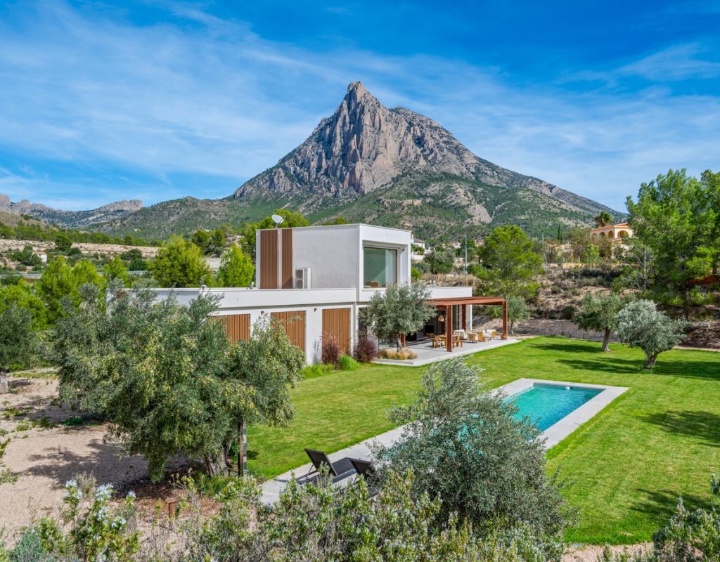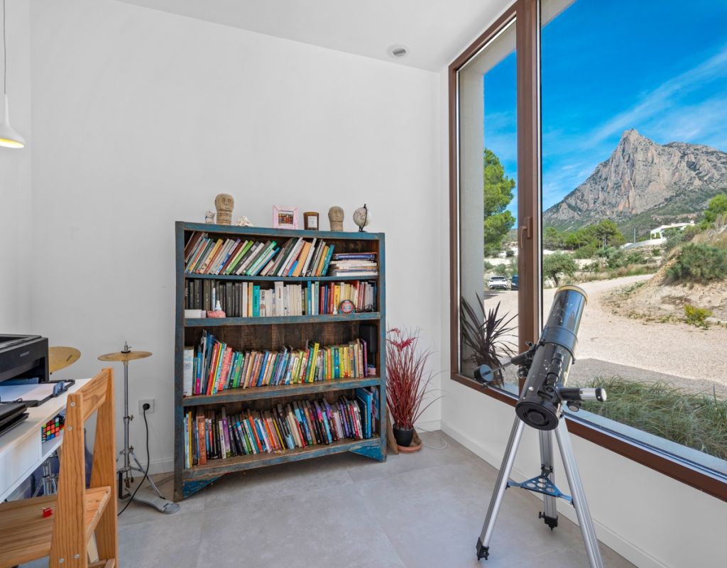 Er zijn plekken die je niet op Funda vindt. Je droomt ze. Je voelt ze. Je ademt ze in nog vóór je er bent. Deze passive-house villa in Finestrat is zo’n plek. Niet alleen moderne architectuur – maar een manier van leven: duurzaam, vooruitstrevend en vol rust.230 m² gebouwd volgens de hoogste biopassieve en energie-efficiënte normen, om elke zonnestraal, elke bries, elke regendruppel te benutten… Alles in harmonie met 10.000 m² natuur, olijfbomen en fruitbomen eromheen. Hier begint buiten niet bij de voordeur – maar veel eerder. Buiten vind je een grote tuin, designzwembad en een mooi terras waar je de frisse lucht voelt terwijl je dineert met wie je lief is. Binnen gaat het leven langzamer. Een ruime woonkamer met eetgedeelte, perfect voor lange avonden met vrienden en familie, of gewoon om van het uitzicht te genieten door de grote ramen. Naast de verborgen tv en open haard liggen schuifdeuren naar een ruimte die jouw bibliotheek, werkplek, relaxruimte of creatieve studio kan worden. Het hart van het huis – de keuken. Hoge kwaliteit, ontworpen om samen te komen, te delen, te vieren en te lachen. Modern, functioneel, uitgerust met Liebherr-apparatuur – een plek waar je graag blijft. Daarachter ligt de hal die toegang geeft tot het meest private deel van de woning: de master suite. Stilte, rust, een groot raam om 's nachts sterren te tellen en de zonsopgang binnen te laten. Inloopkast en ensuite badkamer met designbad… of een lange douche met zicht op de Puig Campana. In de andere vleugel bevinden zich drie extra slaapkamers met inbouwkasten en directe toegang tot tuin en zwembad. Gastbadkamer, hoofdbadkamer en wasruimte. Alles tot in detail uitgedacht. Dit huis schreeuwt geen luxe – het fluistert het. Want hier leef je niet om indruk te maken. Je leeft om te voelen, om de geur van natte aarde tussen de olijfbomen te ruiken terwijl je je eerste koffie drinkt – en je herinnert dat rust niet betekent meer hebben…Rust is weten waar je wilt zijn.