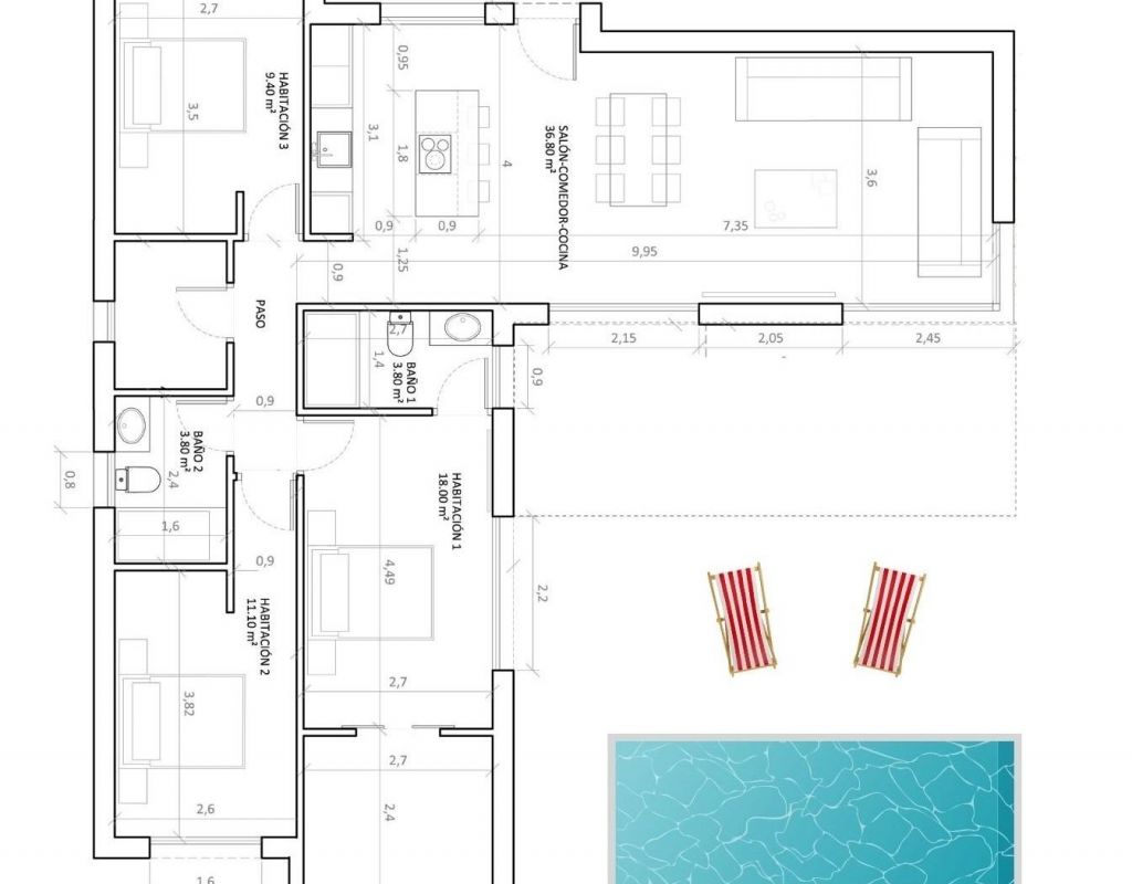 NIEUWBOUWVILLA'S MET ZWEMBAD IN HONDON DE LAS NIEVES Ontdek de elegantie en het comfort van deze prachtige vrijstaande villa's van 108 tot 128 m2, ontworpen om u een uitzonderlijke levensstijl te bieden, allemaal gelijkvloers. Geniet van de privacy die deze villa u biedt, waar u kunt ontspannen in uw eigen tuin, een oase van rust kunt creëren of kunt afkoelen in uw privézwembad om te genieten van de warme zomerdagen. De woning is verdeeld in twee grote zones: Dagzone: Hier vinden we een ruime woon-eetkamer met open keuken (keukenmeubels inbegrepen) die via twee grote ramen in verbinding staat met de grote, moderne veranda, die toegang geeft tot de aangelegde buitenruimte en het zwembad. Als extra ruimte is er een wasruimte, strategisch gelegen in de indeling van de woning, die vanuit elk punt van het huis gemakkelijk toegankelijk is. Rustige zone: In deze zone zijn er 3 slaapkamers. De hoofdslaapkamer heeft een ruime kleedkamer en een en-suite badkamer. Er is ook een tweede badkamer voor de andere slaapkamers en de rest van het huis. Gelegen in een rustige woonwijk, biedt deze villa u de privacy en rust die u wenst, terwijl u toch op korte afstand bent van voorzieningen, winkels, supermarkten en restaurants. Het is de perfecte balans tussen rustige afzondering en het comfort van het moderne leven. In deze urbanisatie van Hondón de las Nieves is elke dag een kans om contact te maken met de wereld. Hondón de las Nieves is een gemeente in de regio Valencia, Spanje. Het ligt in het zuidwesten van de provincie Alicante, in de streek Vinalopó Medio. De stranden en de luchthaven van Alicante liggen vlakbij, op slechts 30 minuten rijden.