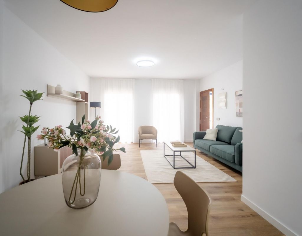 Traditionele woningen met twee slaapkamers in Barrio Herrerias Almeria met solarium en gemeenschappelijk zwembad Modern wonen aan de kust van Almeria Dit nieuwe woonproject ligt in de rustige wijk Barrio Herrerias, op slechts 4 km van de prachtige stranden van Villaricos. De omgeving combineert een rustige woonatmosfeer met het gemak van de nabijheid van essentiële voorzieningen, lokale winkels en de charmante kustplaatsjes van de provincie Almeria. Dankzij de uitstekende wegverbindingen kunnen bewoners genieten van zowel de rust van het leven in het binnenland als de attracties van de mediterrane kustlijn. Een selectie van 13 woningen Het project bestaat uit 13 goed ontworpen woningen met 2 slaapkamers en 2 badkamers, waarvan één ensuite. Kopers kunnen kiezen tussen woningen op de begane grond met een eigen patio of woningen op de bovenverdieping met een terras. Houd er rekening mee dat het gebouw geen lift heeft, waardoor het een meer traditionele laagbouwstijl biedt. Alle woningen hebben een eigen solarium op het dak, ideaal om te zonnebaden, te ontspannen of te genieten van het vrije uitzicht op de omgeving. Comfortabel interieur en hoogwaardige afwerking Elke woning is uitgerust met een volledig ingerichte keuken met apparatuur, voorinstallatie voor airconditioning en moderne badkamermeubels met spiegels. Het buitenschrijnwerk met een houtlook afwerking en dubbele beglazing zorgt voor een uitstekende isolatie en een warme, eigentijdse uitstraling. Voor opslagruimte is gezorgd met een eigen berging en een parkeerplaats in de kelder. Gemeenschappelijk zwembad en ontspannen levensstijl Bewoners kunnen genieten van een gemeenschappelijk zwembad, perfect om af te koelen tijdens de warme maanden en om te socializen met buren. De indeling en het ontwerp van de woonwijk creëren een comfortabele omgeving voor zowel permanent wonen als vakantiegebruik. Strategische afstanden tot belangrijke bezienswaardigheden Strand van Villaricos: 4 km Cuevas del Almanzora: 9 km Golfbanen: 10 tot 15 km Jachthaven van Garrucha: 14 km Luchthaven van Almeria: 90 km Direct beschikbaar Deze woningen zijn klaar om te betrekken en bieden een fantastische kans voor kopers die op zoek zijn naar een nieuwbouwwoning in de buurt van de kust van Almeria. Neem vandaag nog contact met ons op om een bezichtiging te regelen en uw nieuwe woning in Barrio Herrerias veilig te stellen.
