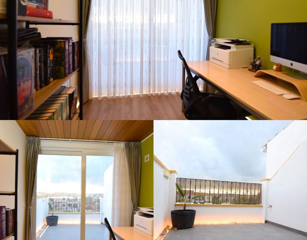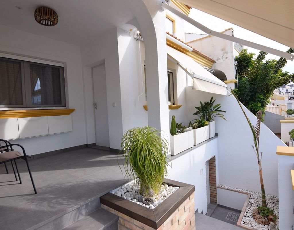 Stijlvol en volledig gerenoveerd duplex herenhuis gelegen in het populaire wooncomplex Laderas del Sol, nabij La Florida, Orihuela Costa. De woning is verdeeld over twee verdiepingen plus een ruime kelder en beschikt over drie slaapkamers, een kantoor, een badkamer, een gastentoilet en een multifunctionele kelder, ideaal als fitnessruimte, speelkamer of opslag. Volledig gemoderniseerd met nieuwe elektrische en sanitaire installaties, aardgasverwarming met radiatoren, elektrische vloerverwarming in badkamers en keuken, en airconditioning via kanalen in de hele woning. Hoogwaardige ramen met horren, elektrische veiligheidsrolluiken en een veiligheidsvoordeur zorgen voor optimaal comfort. Gelegen nabij voorzieningen, restaurants, scholen, Zenia Boulevard en de stranden, met uitstekende verbindingen naar Torrevieja, Alicante en Murcia. Ideaal voor permanente bewoning of als investering.