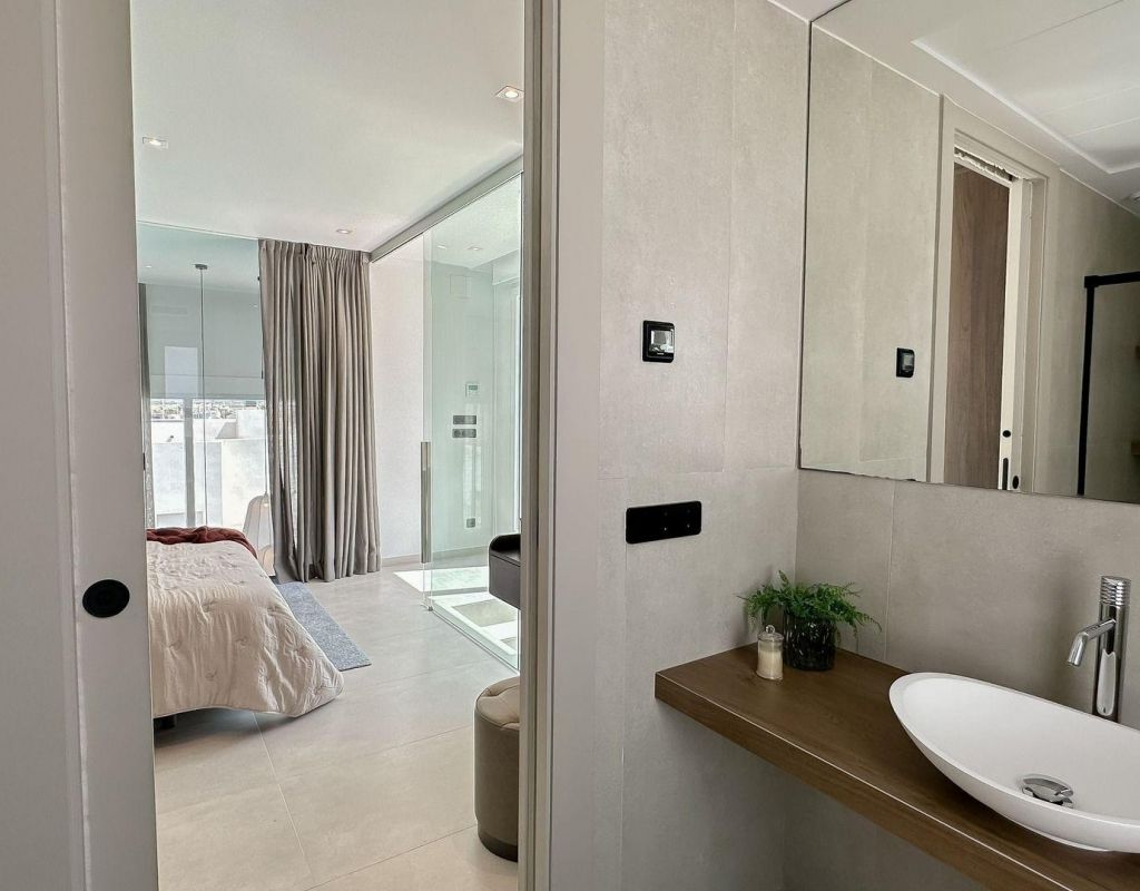 Nieuwbouwwoningen met privézwembad in La Finca Golf Resort, Algorfa Exclusief mediterraan wonen in La Finca Golf Ontdek dit uitzonderlijke nieuwe woonproject in het prestigieuze La Finca Golf Resort in Algorfa, aan de zuidkust van de Costa Blanca. U kunt kiezen tussen appartementen met 2/3 slaapkamers en gemeenschappelijk zwembad of halfvrijstaande of vrijstaande villa's met privézwembad. Omgeven door weelderige fairways en natuurlijke landschappen biedt deze gemeenschap een idyllische levensstijl in een rustige en veilige omgeving. Het charmante stadje Algorfa staat bekend om zijn traditionele Spaanse karakter, uitstekende gastronomie en ontspannen sfeer, waardoor het een ideale bestemming is voor zowel vakantiehuizen als permanente woningen. Moderne halfvrijstaande villa's met privézwembad Deze prachtig ontworpen halfvrijstaande villa's hebben 3 slaapkamers en 2 badkamers en combineren functionaliteit, comfort en moderne stijl. Indeling Begane grond Lichte open woon- en eetkamer verbonden met een ingerichte keuken Grote schuifdeuren die directe toegang bieden tot de tuin en het privézwembad Twee ruime slaapkamers met inbouwkasten Een complete badkamer Privé parkeerplaats op het perceel Bovenverdieping Studioruimte met badkamer, ideaal als kantoor, lounge of gastenverblijf Toegang tot een privé terras van 30 m2, perfect om te zonnebaden en te ontspannen Hoogwaardige voorzieningen en afwerking Deze villa's zijn gebouwd volgens de hoogste normen en bieden modern comfort om het hele jaar door te wonen, waaronder Inbouwkasten in alle slaapkamers Elektrische rolluiken in de woonkamer en slaapkamers Volledig uitgeruste badkamers met spiegels en doucheschermen Volledig geïnstalleerde airconditioning Privé-tuin en zwembad Toplocatie dicht bij stranden, golfbanen en voorzieningen La Finca Golf Resort is een van de meest gerenommeerde golfbestemmingen aan de Costa Blanca en biedt een breed scala aan diensten, zoals een luxe hotel, restaurants, een spa en sportfaciliteiten. Het complex ligt op korte afstand van nabijgelegen steden, stranden en luchthavens, wat zorgt voor gemak en goede verbindingen. Afstanden tot belangrijke punten La Finca Golf Club: op loopafstand Stranden van Guardamar del Segura: 15 km Torrevieja en Orihuela Costa: 15 km Almoradí, Benijófar en Ciudad Quesada: korte rit Luchthaven Alicante: 35 km Geniet van het beste van het leven aan de Costa Blanca Met hun moderne ontwerp, privé buitenruimtes en bevoorrechte ligging zijn deze villa's een uitstekende keuze voor gezinnen, investeerders en golfliefhebbers die op zoek zijn naar een hoogwaardige levensstijl in het zuiden van Spanje. Neem vandaag nog contact met ons op om een bezichtiging te regelen of meer informatie te ontvangen over dit exclusieve nieuwbouwproject in La Finca Golf Resort, Algorfa.