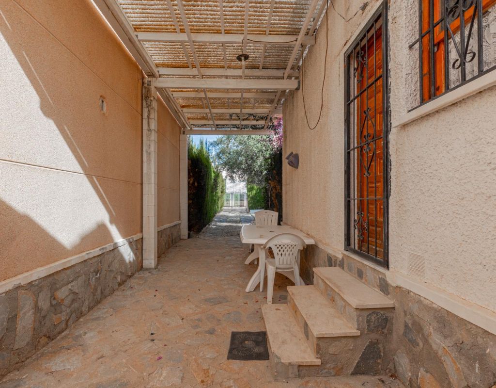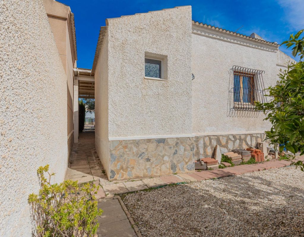 Kans: Chalet met groot perceel van 317 m2 in El Chaparral – La Siesta~~Als u op zoek bent naar een charmant chalet met een groot perceel en veel licht, dan is deze woning in El Chaparral, La Siesta uw kans. Gelegen op een perceel van 317 m2, met 3 slaapkamers en alles op één verdieping, biedt het comfort, functionaliteit en veel potentieel voor verbetering.~~Geniet van een grote voortuin en achterpatio, perfect om te profiteren van de zon en het warme weer. Er is ook voldoende ruimte voor een zwembad, ideaal voor de zomermaanden. Het huis is in goede staat, instapklaar, met mogelijkheden voor renovatie of uitbreiding naar wens.~~Gelegen op slechts 5 km van het strand, in een rustige en gevestigde buurt, met gezondheidscentrum en park recht ervoor, biedt het comfort en levenskwaliteit in een zeer gewilde omgeving.~~Dit is een echte kans op de huidige markt, een woning met groot perceel en uitstekende ligging tegen een zeer concurrerende prijs. Perfect voor wie een gezellige woning met buitenruimte zoekt en hun ideale project wil realiseren.