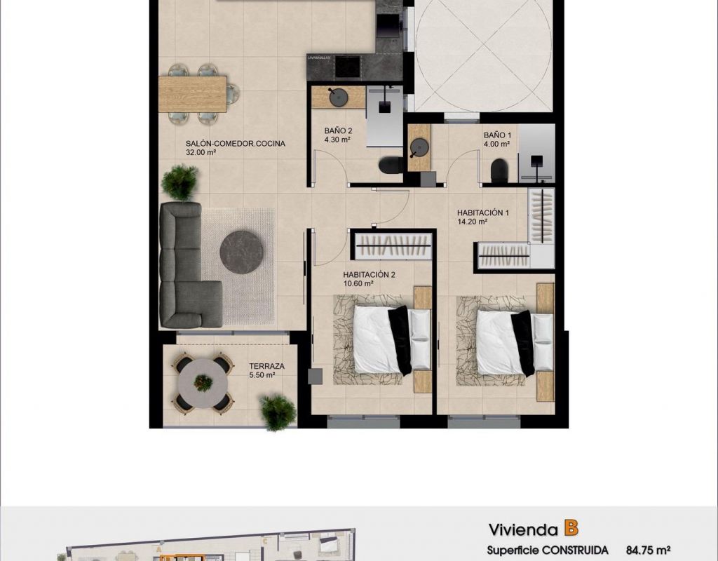 Nieuwbouwappartementen te koop in Catral Alicante met zwembad op het dak Modern wonen in het centrum van Catral Ontdek dit nieuwbouwresidentieel gebouw in het hart van Catral, een charmant stadje in de regio Vega Baja aan de Costa Blanca. Het project bestaat uit 9 moderne appartementen met 1, 2 of 3 slaapkamers, verdeeld over de begane grond en twee verdiepingen, en biedt een uitstekende kans voor zowel permanent wonen als investeren. Het gebouw is perfect gelegen in het centrum van de stad, waardoor bewoners kunnen genieten van het dagelijks leven met supermarkten, cafés, restaurants, scholen en essentiële voorzieningen op loopafstand. Catral staat bekend om zijn ontspannen mediterrane sfeer, traditionele Spaanse karakter en gunstige verbindingen met nabijgelegen kustplaatsen. Appartementen met een eigentijds ontwerp en functionele indelingen Elk appartement is ontworpen om comfortabele leefruimtes te bieden met een moderne afwerking en praktische indelingen. De woningen zijn licht en goed ingedeeld, waardoor ze ideaal zijn voor gezinnen, stellen of kopers die op zoek zijn naar een tweede huis aan de Costa Blanca. Bewoners hebben toegang tot een gemeenschappelijk dakterras met een zwembad en een solarium. Deze verhoogde ruimte biedt een ontspannen omgeving om te zonnebaden en te genieten van het weidse uitzicht, terwijl u profiteert van het uitstekende mediterrane klimaat. Het gebouw beschikt ook over een lift, waardoor alle verdiepingen gemakkelijk bereikbaar zijn en bewoners van alle leeftijden er comfortabel kunnen wonen. Hoogwaardige afwerking en moderne voorzieningen Deze nieuwbouwwoningen zijn gebouwd met hoogwaardige materialen en energiezuinige installaties om comfort en duurzaamheid te garanderen. Gepantserde voordeur Volledig ingerichte keuken met BOSCH-apparatuur Badkamers met wastafels, spiegels, doucheschermen en vloerverwarming LED-verlichtingspakket met inbouwspots Elektrische rolluiken Voorbereiding voor airconditioning met luchtkanalen Energie-efficiëntieklasse A De meeste appartementen hebben een toegewezen parkeerplaats en sommige appartementen hebben ook een eigen berging. Uitstekende locatie in de regio Vega Baja Catral ligt op een strategische locatie in het zuiden van de provincie Alicante en biedt gemakkelijke toegang tot stranden, golfbanen en belangrijke vervoersverbindingen. Stranden van Guardamar del Segura 15 km La Finca Golf 14 km Vistabella Golf 14 km Elche 20 km Luchthaven Alicante Elche 25 km Dankzij deze gunstige ligging kunnen bewoners genieten van het rustige dorpsleven en tegelijkertijd dicht bij de kust en de grote stedelijke centra blijven. Reserveer uw nieuwe appartement in Catral Deze moderne nieuwbouwwoningen bieden een hoogwaardige bouwkwaliteit, energie-efficiëntie en een centrale ligging tegen een zeer concurrerende prijs. Neem vandaag nog contact met ons op om een bezichtiging te regelen en uw nieuwe woning in Catral te reserveren voordat de resterende woningen zijn verkocht.