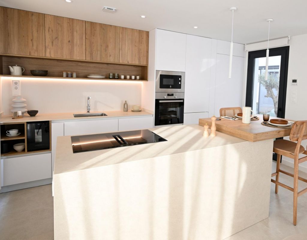 Nieuwbouwwilla€s in Altaona Golf Resort Murcia met privézwembad en uitzicht op de bergen Moderne villa€s in Altaona Golf Resort Murcia Ontdek een exclusief nieuwbouwproject met moderne villa€s in Altaona Golf Resort, een van de meest aantrekkelijke woonwijken in Murcia. Dit beveiligde golfresort, omgeven door natuurschoon en bergen, biedt een rustige omgeving en ligt toch op slechts een klein eindje rijden van de stad Murcia en de Middellandse Zeekust. Deze nieuwbouwwilla's zijn ontworpen om comfort, privacy en een ontspannen mediterrane levensstijl te bieden. Het project biedt een selectie van gelijkvloerse villa's met een optioneel solarium of villa's met twee verdiepingen, allemaal voorzien van drie slaapkamers en twee badkamers, inclusief een hoofdslaapkamer met en-suite badkamer. Ruim ontwerp met privétuinen en zwembad Elke villa is gebouwd op een privéterrein vanaf 300 m², met voldoende buitenruimte om het hele jaar door van de zon te genieten. De woningen beschikken over een privézwembad, aangelegde tuinen en parkeergelegenheid op het terrein. De indeling is ontworpen om het natuurlijke licht te maximaliseren en een naadloze verbinding te creëren tussen binnen- en buitenleven. De open woon- en eetruimtes sluiten direct aan op het terras en het zwembad, waardoor de perfecte omgeving ontstaat om te ontspannen of familie en vrienden te ontvangen. Hoogwaardige afwerking en moderne voorzieningen Deze villa's zijn gebouwd met hoogwaardige materialen en moderne bouwtechnieken om comfort en energie-efficiëntie te garanderen. Tot de voorzieningen behoren een versterkte veiligheidsdeur, een volledig ingerichte keuken met apparatuur, vloerverwarming in de badkamers en een LED-verlichtingspakket voor het interieur. Bijkomende specificaties zijn onder meer de voorbereiding voor airconditioning via luchtkanalen en warmwatervoorziening via een energiezuinig aerothermisch systeem, wat zowel duurzaamheid als kostenbesparingen oplevert. Toplocatie dicht bij golf, stad en kust Altaona Golf Resort staat bekend om zijn 18-holes golfbaan, rustige omgeving en uitstekende beveiliging, waardoor het ideaal is voor zowel permanente bewoning als vakantiehuizen. Het resort biedt een unieke combinatie van natuur, sport en de nabijheid van belangrijke bestemmingen. Het centrum van Murcia ligt op slechts 15 km afstand en biedt een breed scala aan winkels, restaurants, culturele bezienswaardigheden en voorzieningen. De stranden van de Mar Menor en de Middellandse Zeekust liggen op ongeveer 20 km afstand, perfect om te genieten van zonnige dagen aan zee. Andere belangrijke afstanden zijn onder meer de luchthaven Murcia-Corvera op 15 km, de stad Cartagena op 35 km en verschillende golfbanen op korte rijafstand, waardoor dit een ideale locatie is voor golfliefhebbers en internationale kopers. Ideale investering en kans op een mediterrane levensstijl Deze nieuwbouwwilla's in Altaona Golf Resort bieden een uitstekende kans om te genieten van een hoogwaardige levensstijl in een natuurlijke en veilige omgeving, met gemakkelijke toegang tot zowel de stad als de kust. Neem vandaag nog contact met ons op voor meer informatie of om een bezichtiging te regelen en ontdek uw nieuwe thuis in Murcia.