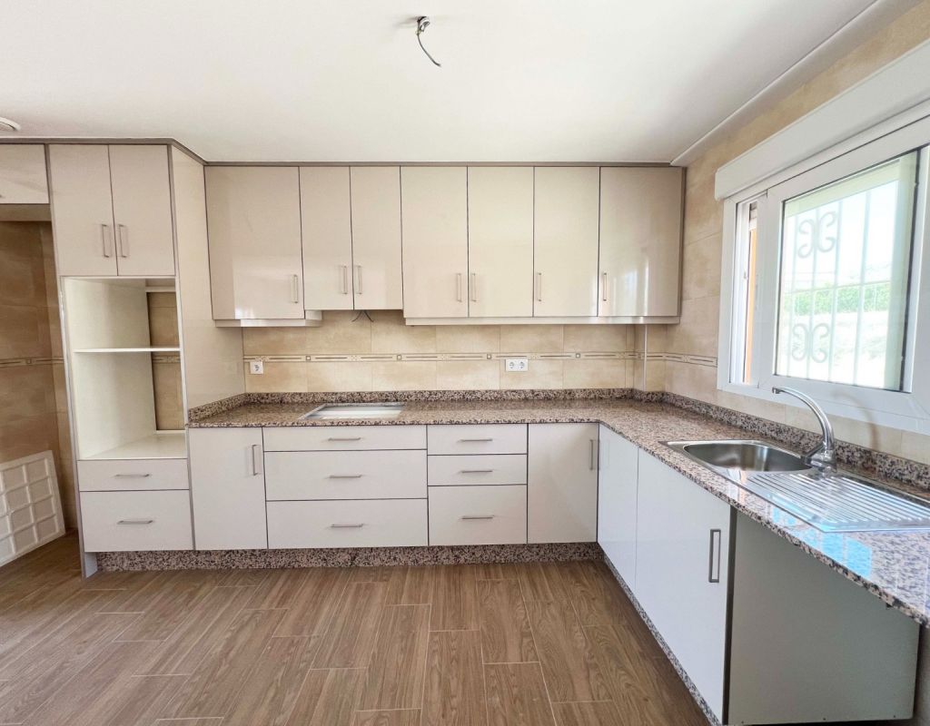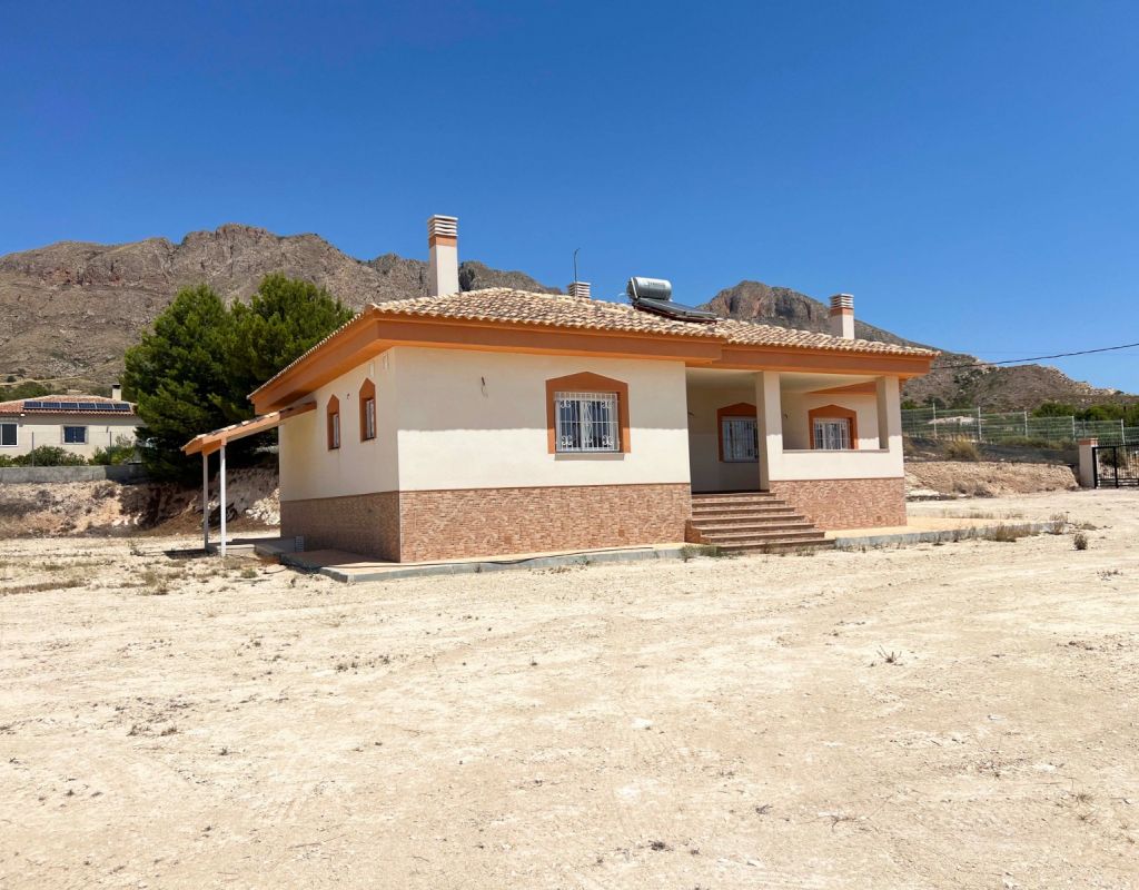 Stel je voor dat je elke ochtend wakker wordt met een ononderbroken uitzicht op de bergen, omringd door rust, frisse lucht en de authentieke charme van het Spaanse platteland. Deze gloednieuwe, moderne villa in Macisvenda biedt de perfecte balans tussen eigentijds design, comfort en een ontspannen mediterrane levensstijl. De woning beschikt over drie ruime slaapkamers en twee badkamers, waaronder een master bedroom met en-suite badkamer. Het hart van de woning is een lichte, open woon- en eetkamer met een volledig uitgeruste keuken, een ideale plek om te genieten van quality time met familie of vrienden. Het keukenmeubilair is volledig nieuw en inbegrepen in de prijs. De villa heeft ook een aparte wasruimte en is voorbereid voor airconditioning, wat het hele jaar door comfort garandeert. Stap naar buiten op de overdekte veranda, perfect om te ontbijten in de ochtendzon, een boek te lezen of te genieten van adembenemende zonsondergangen over de omliggende vallei. Gelegen op een ruim en zonnig perceel, is de buitenruimte een waar blanco canvas, met eindeloze mogelijkheden om uw eigen tuin, zwembad of chill-outruimte te creëren, precies zoals u dat voor ogen hebt. Wonen in Macisvenda – Natuur, Rust en Authenticiteit Gelegen in de regio Murcia, op slechts 5 minuten van Hondón de los Frailes, is Macisvenda ideaal voor wie op zoek is naar rust, natuur en een uitzonderlijke levenskwaliteit. Natuurliefhebbers zullen de nabijheid van het natuurgebied aan de rivier de Chícamo waarderen, een uniek landschap met schilderachtige wandelpaden, natuurlijke vijvers en adembenemende uitzichten. De locatie is bovendien zeer gunstig gelegen, met de kust op slechts 40 minuten afstand, de luchthaven van Alicante op 45 minuten en een aantal charmante dorpjes in de buurt waar u het authentieke mediterrane leven kunt ervaren. Als u op zoek bent naar een huis waar u zich volledig kunt loskoppelen van de dagelijkse sleur, kunt genieten van rust en het hele jaar door van de zon kunt genieten, dan is deze villa een uitzonderlijke keuze.